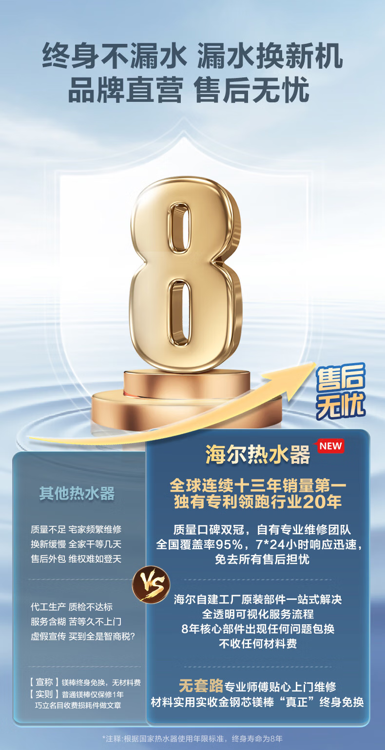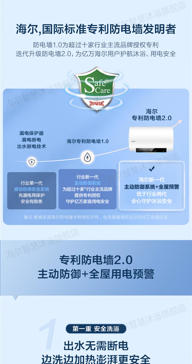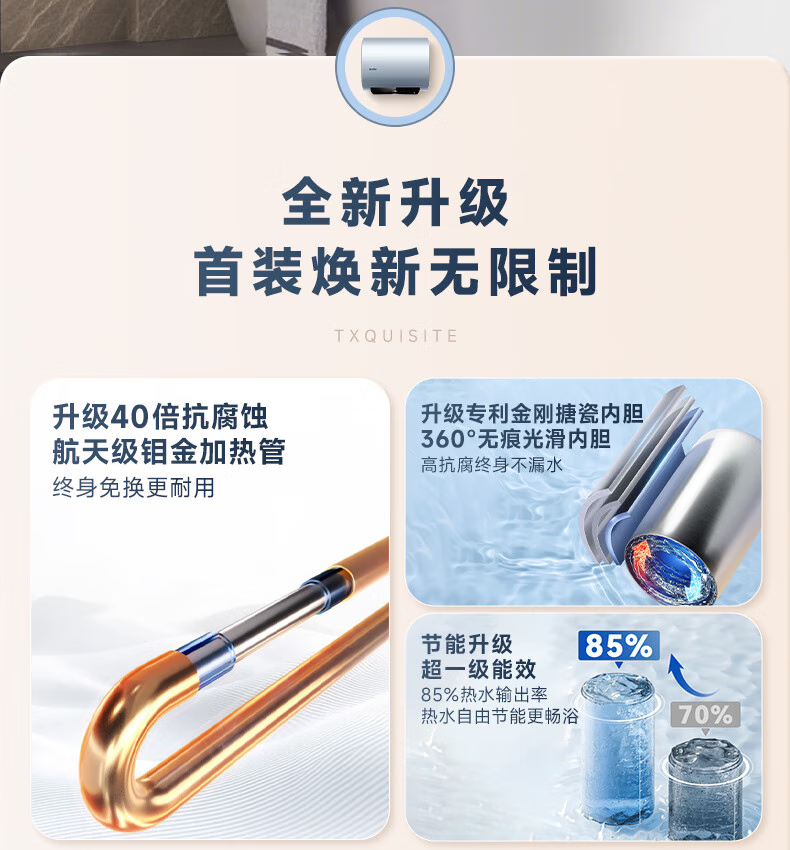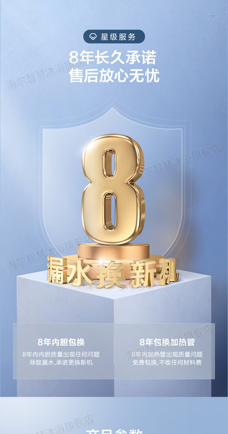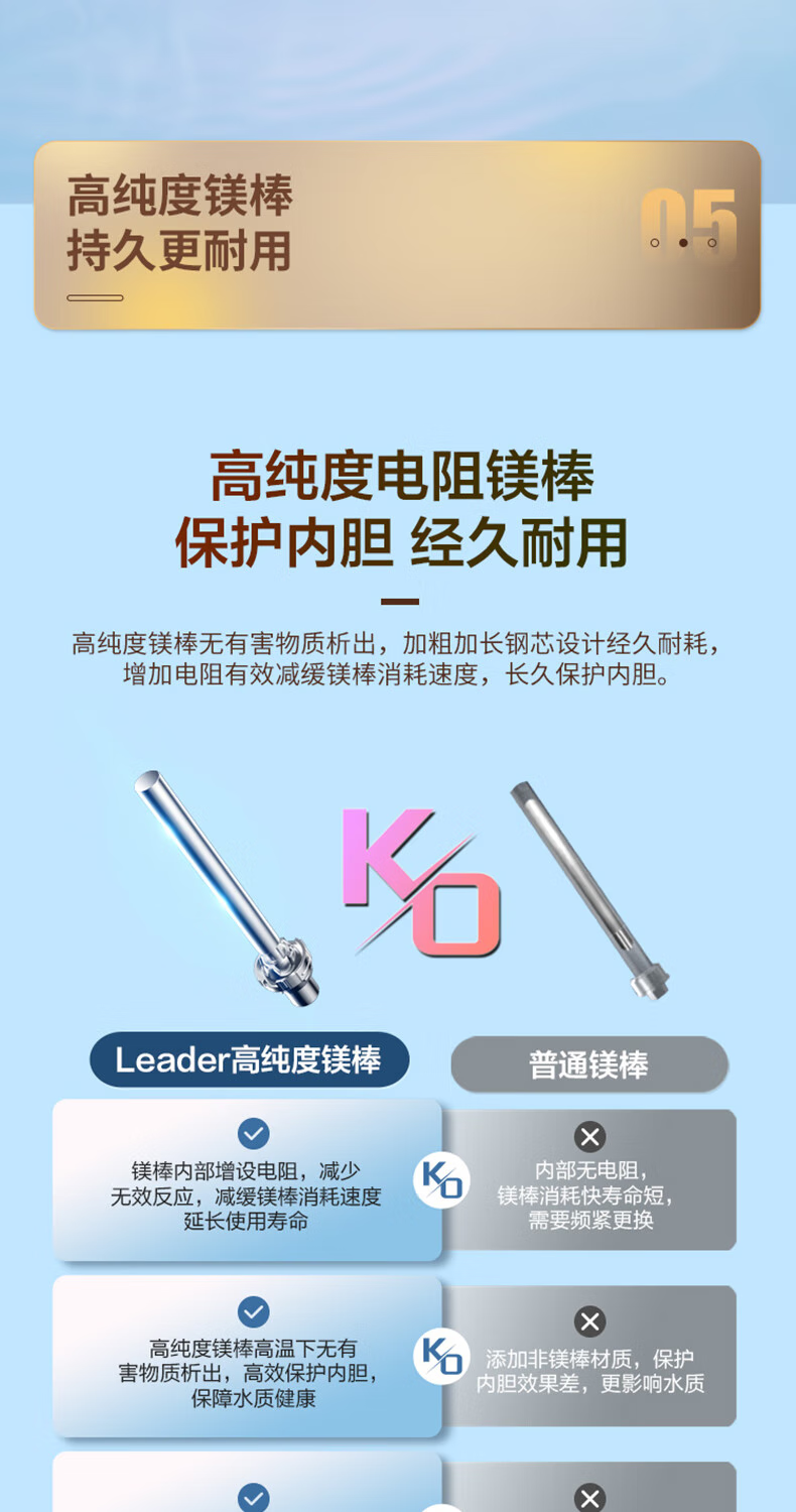 海尔(Haier)储水式电热水器电家用速热一级能效节能家用安全加长防电墙智能家电6重防护上门安装Leader系列 60L 2200W 锆金全瓷/内胆免洗/镁棒免更换