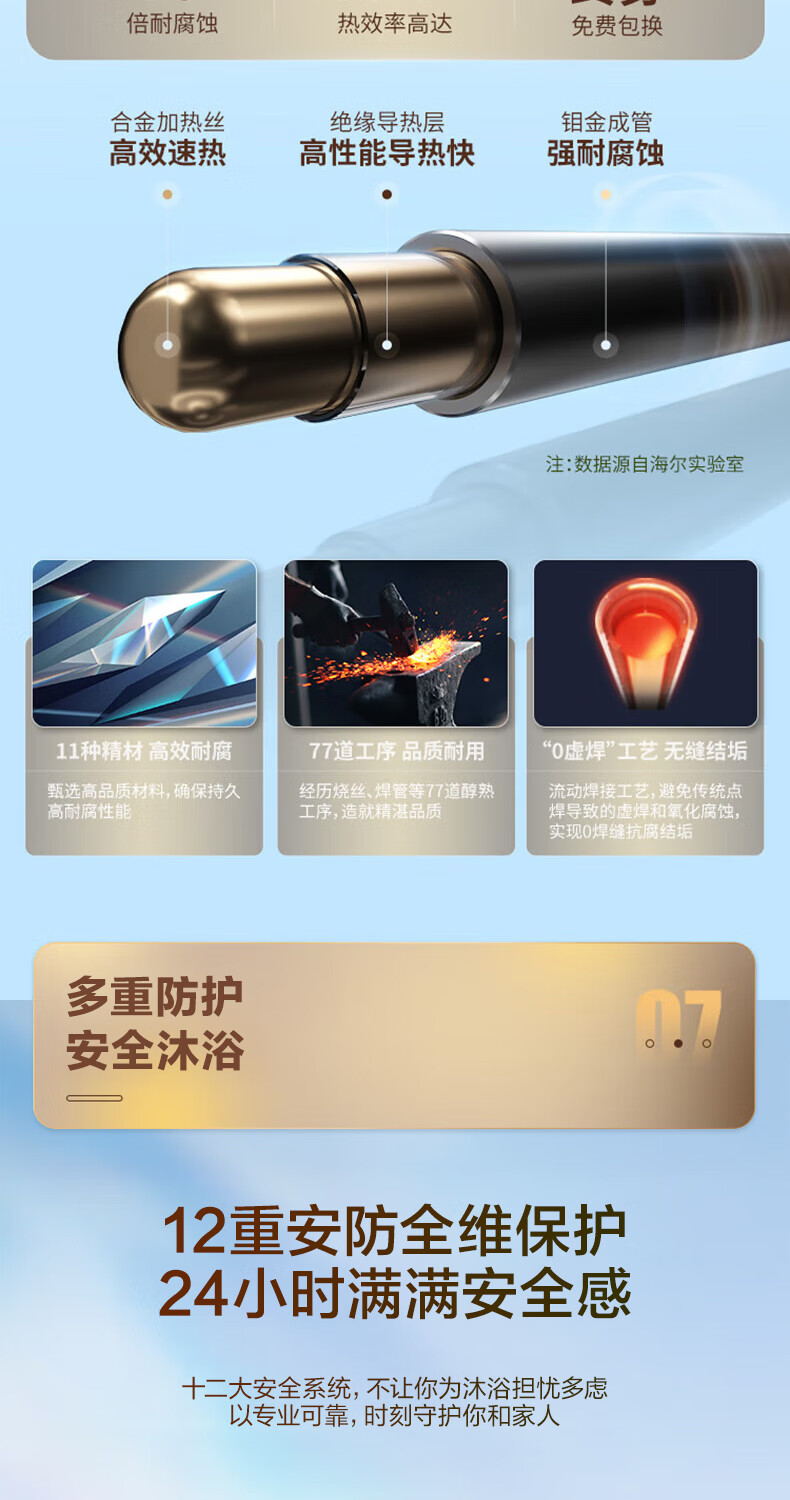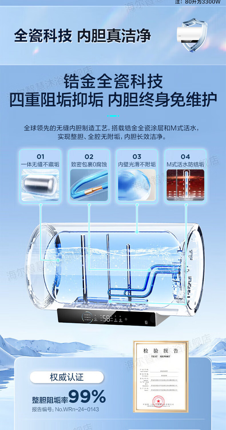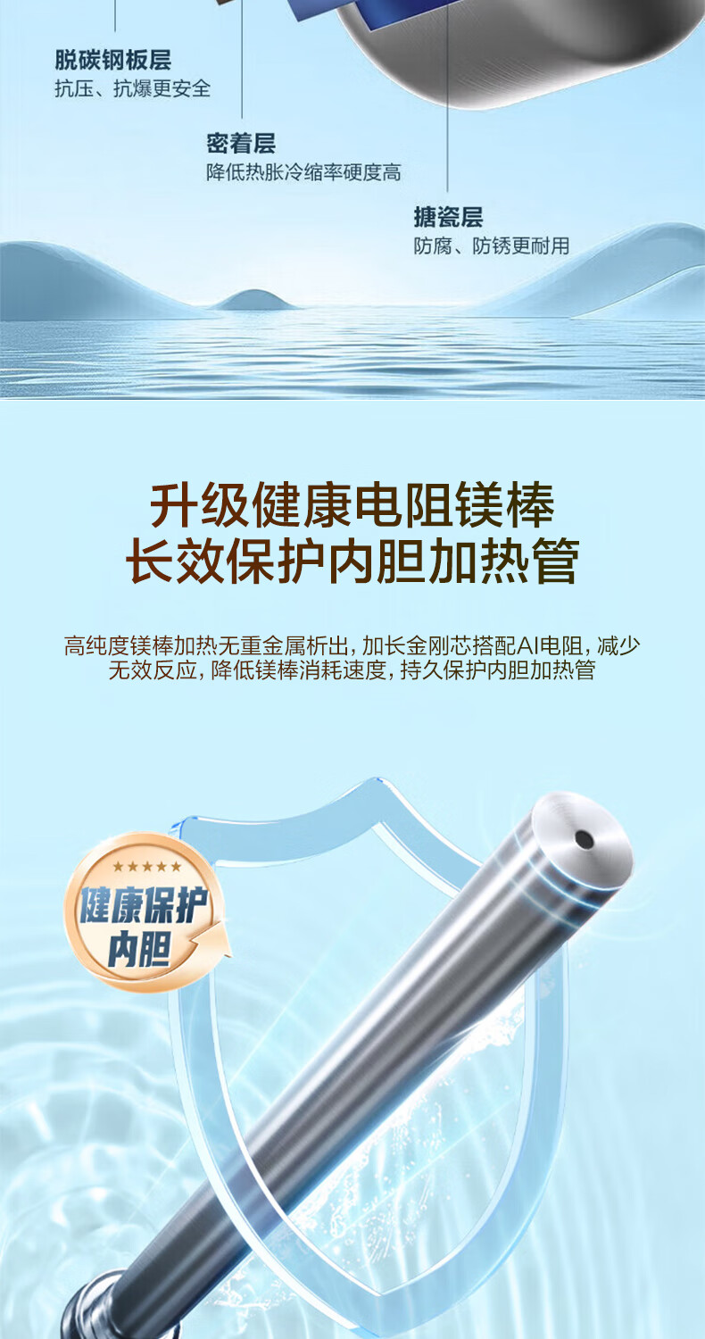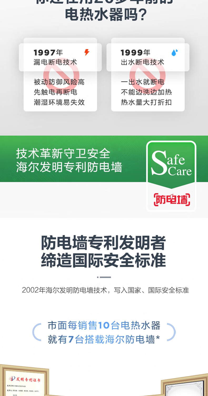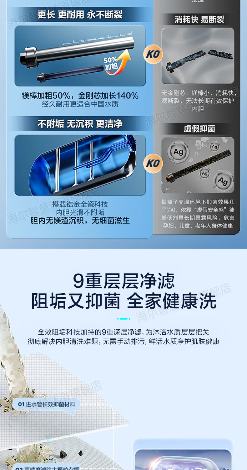 海尔(Haier)储水式电热水器电家用速热一级能效节能家用安全加长防电墙智能家电6重防护上门安装Leader系列 60L 2200W 锆金全瓷/内胆免洗/镁棒免更换
