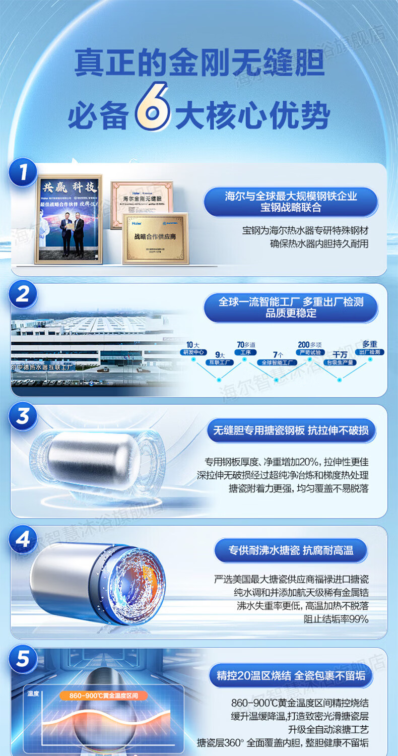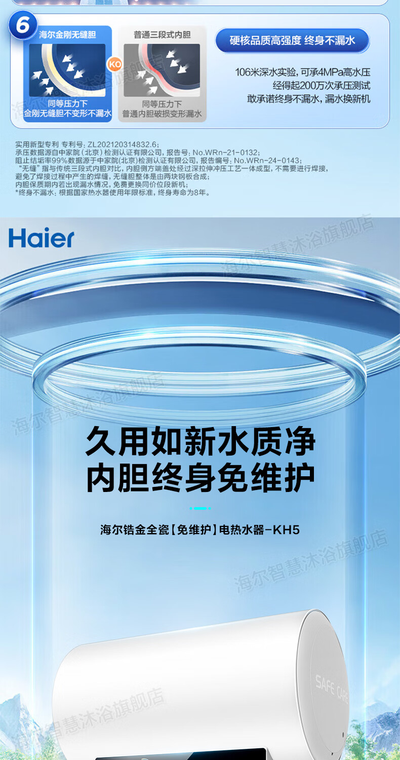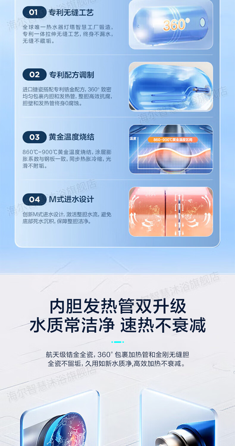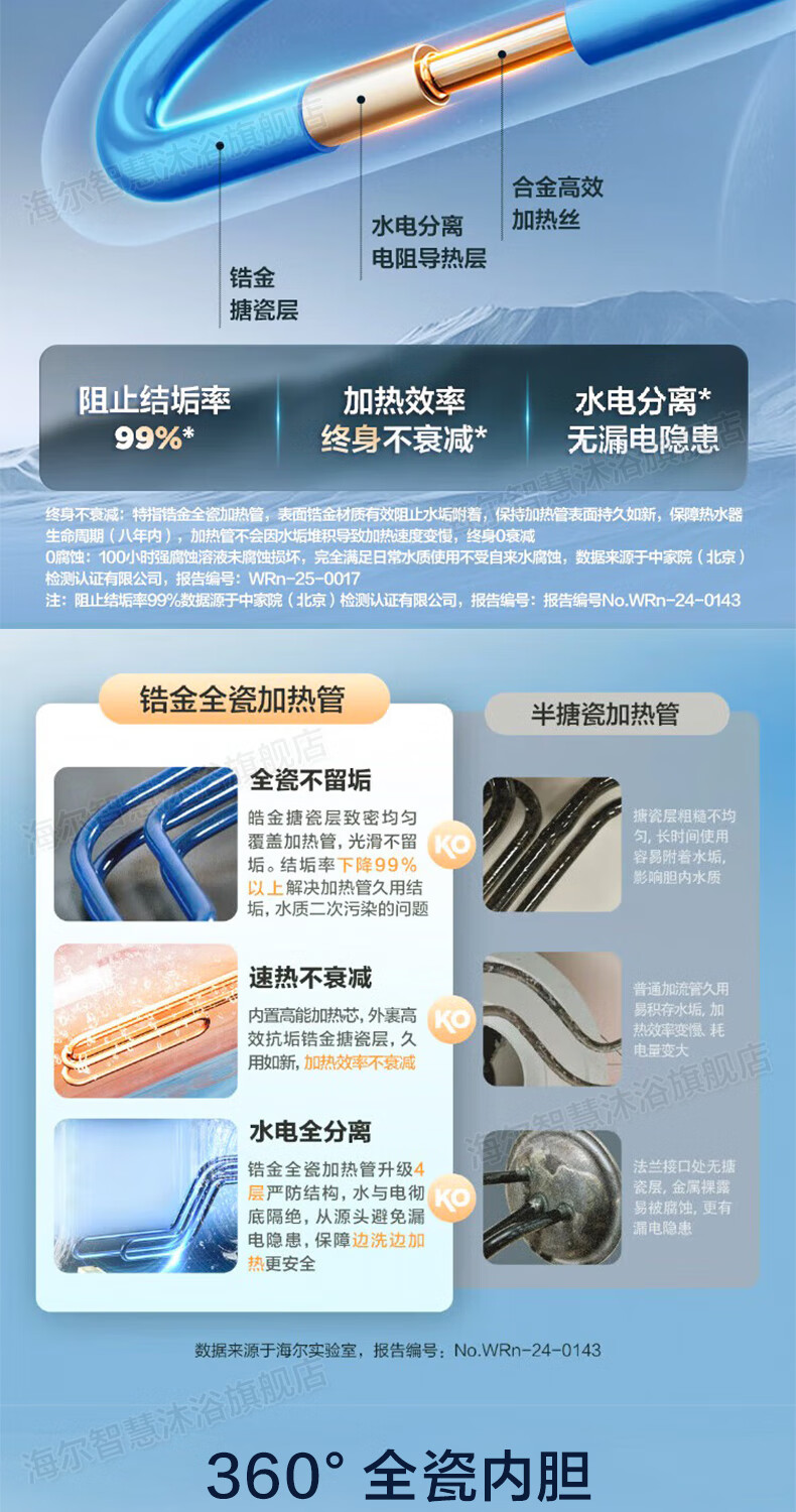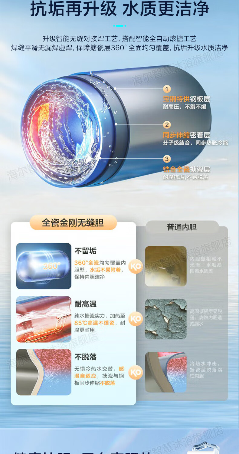 海尔(Haier)储水式电热水器电家用速热一级能效节能家用安全加长防电墙智能家电6重防护上门安装Leader系列 60L 2200W 锆金全瓷/内胆免洗/镁棒免更换
