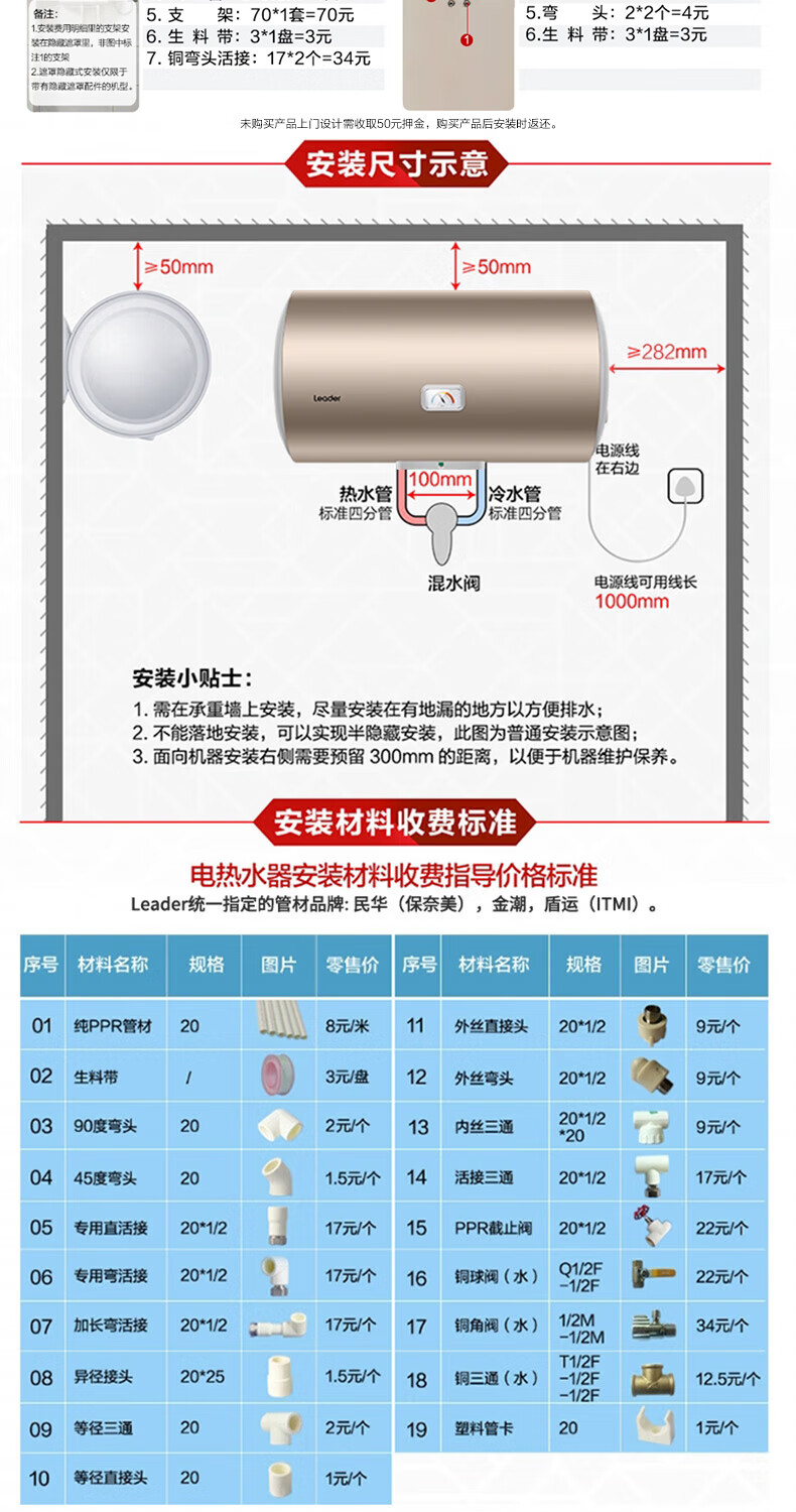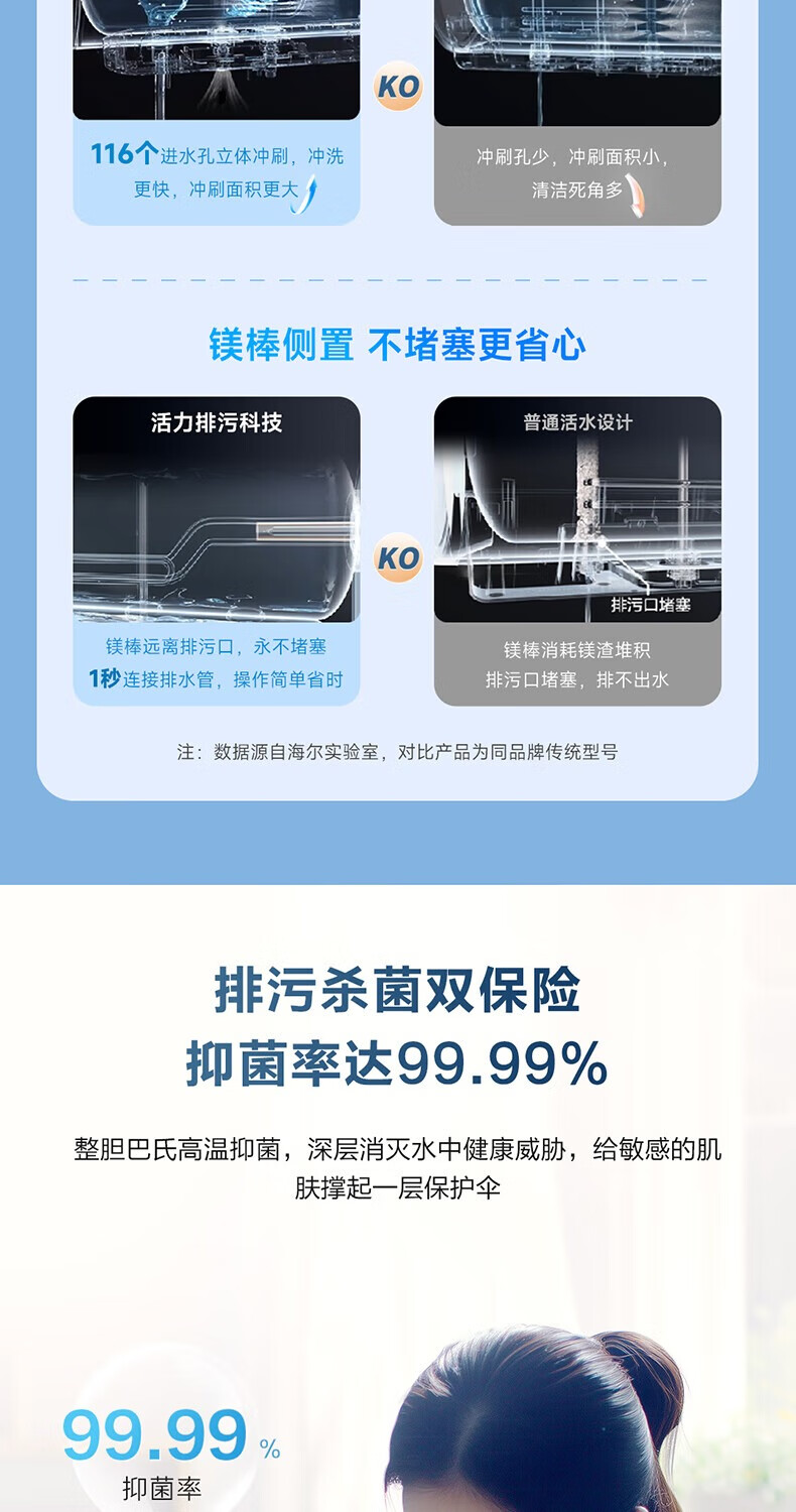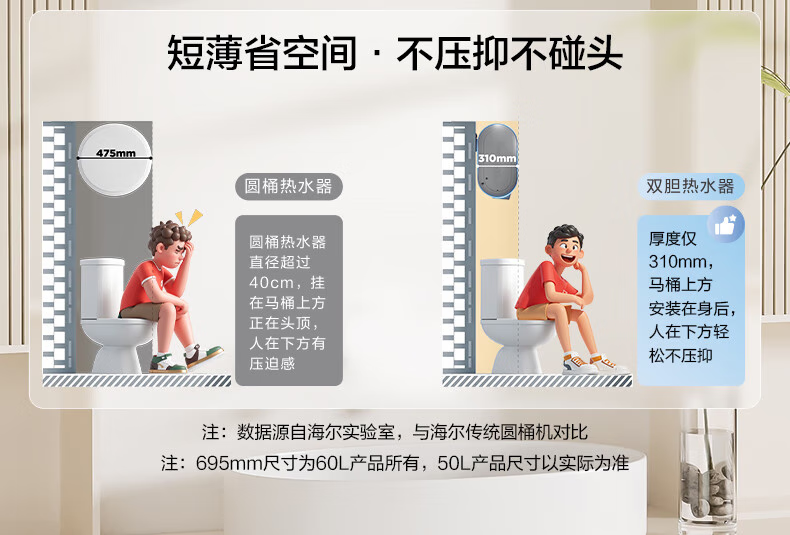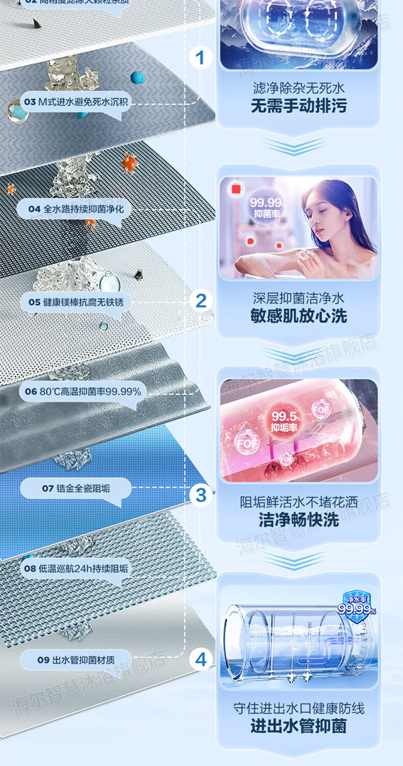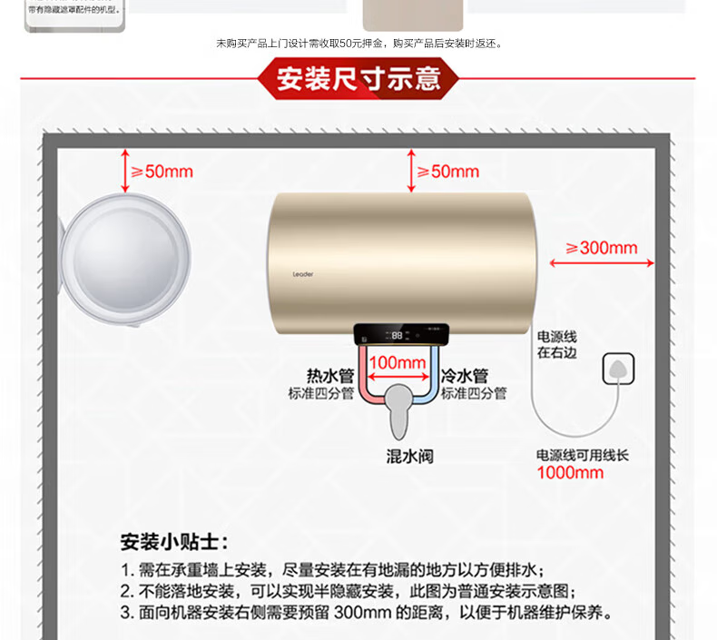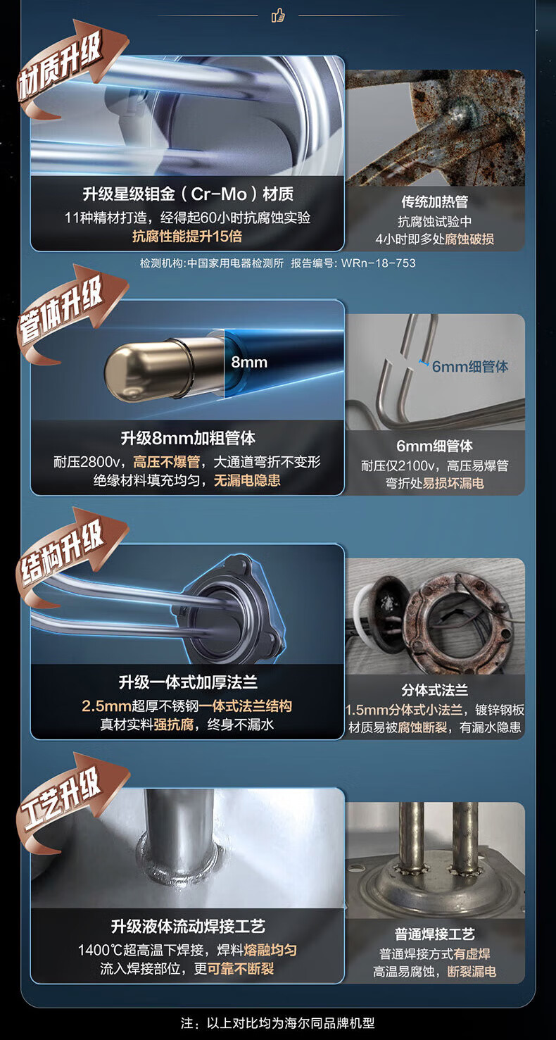 海尔(Haier)储水式电热水器电家用速热一级能效节能家用安全加长防电墙智能家电6重防护上门安装Leader系列 60L 2200W 锆金全瓷/内胆免洗/镁棒免更换