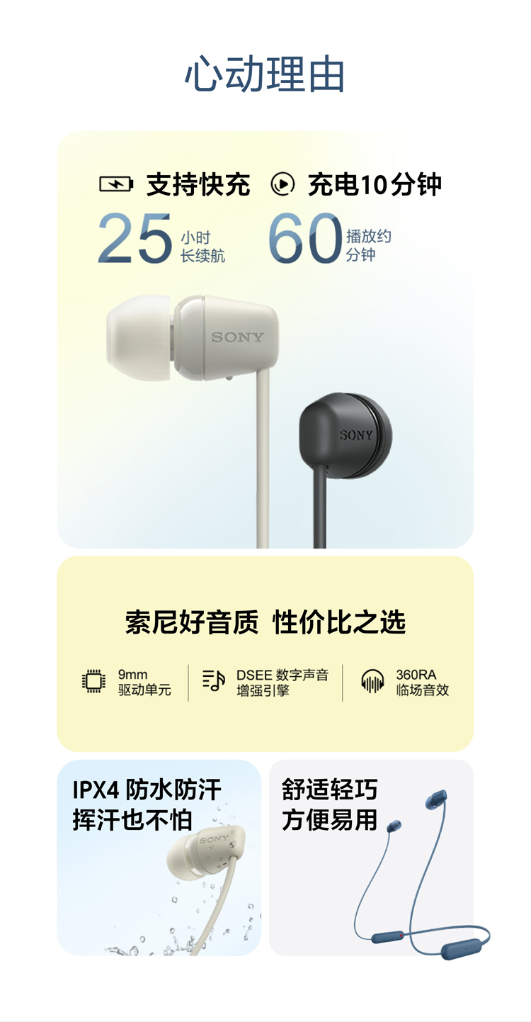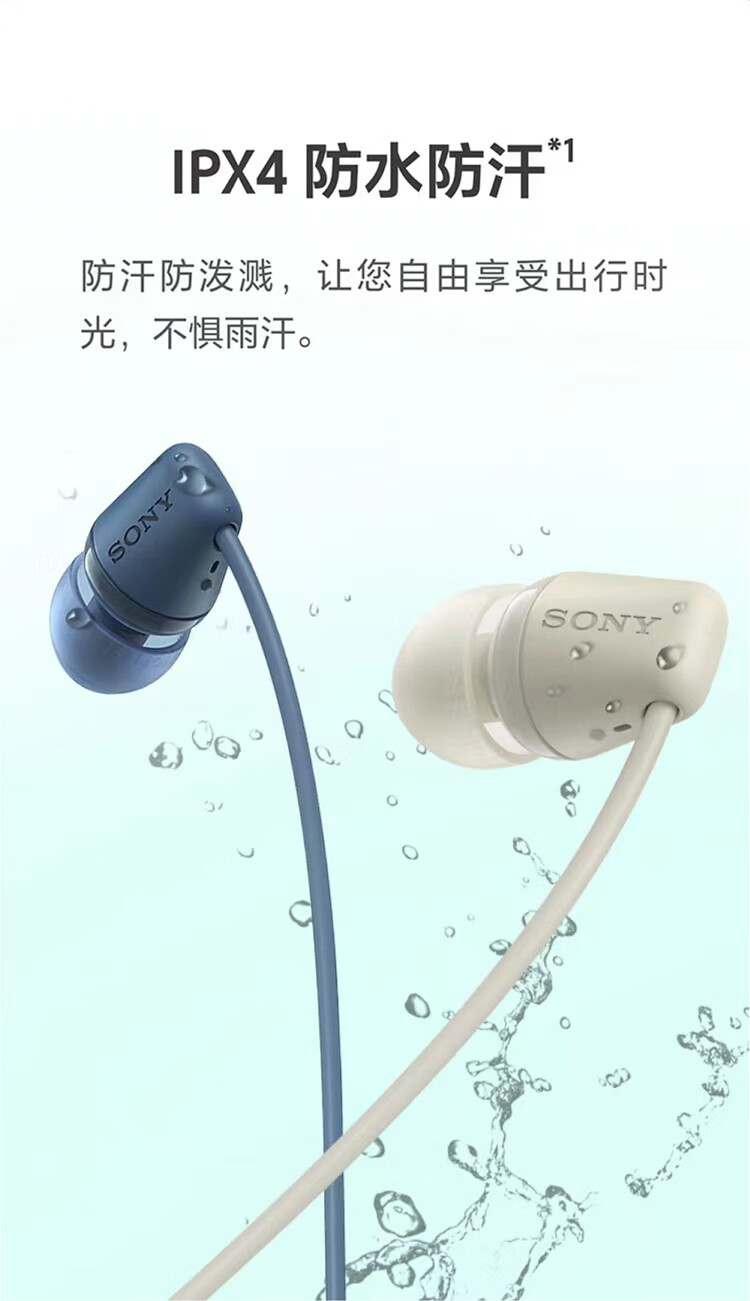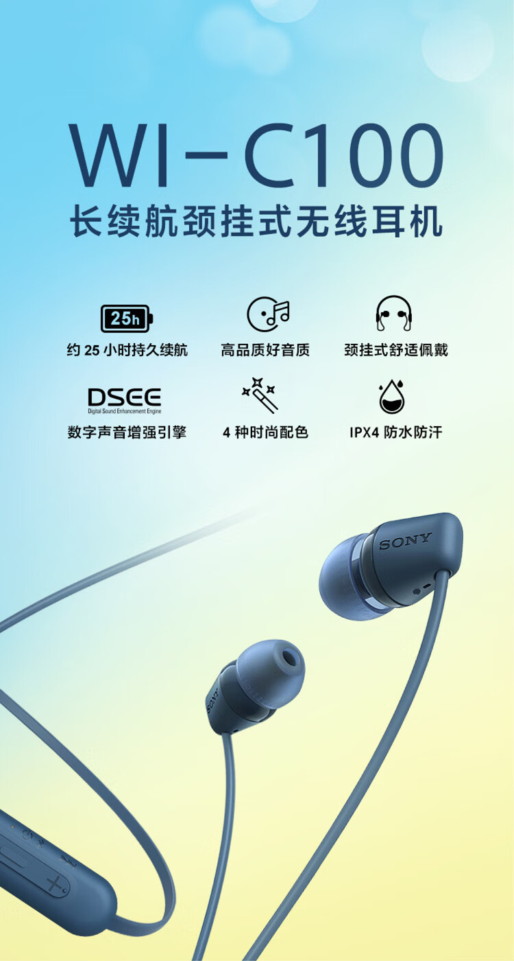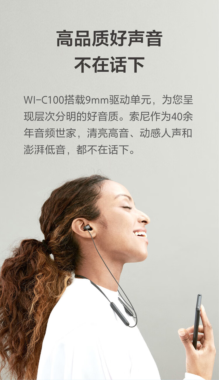 索尼(SONY) WI-C100 颈挂式无线蓝牙耳机 手机通话 IPX4防水防汗 运动耳机挂脖式 约25小时续航 灰褐色