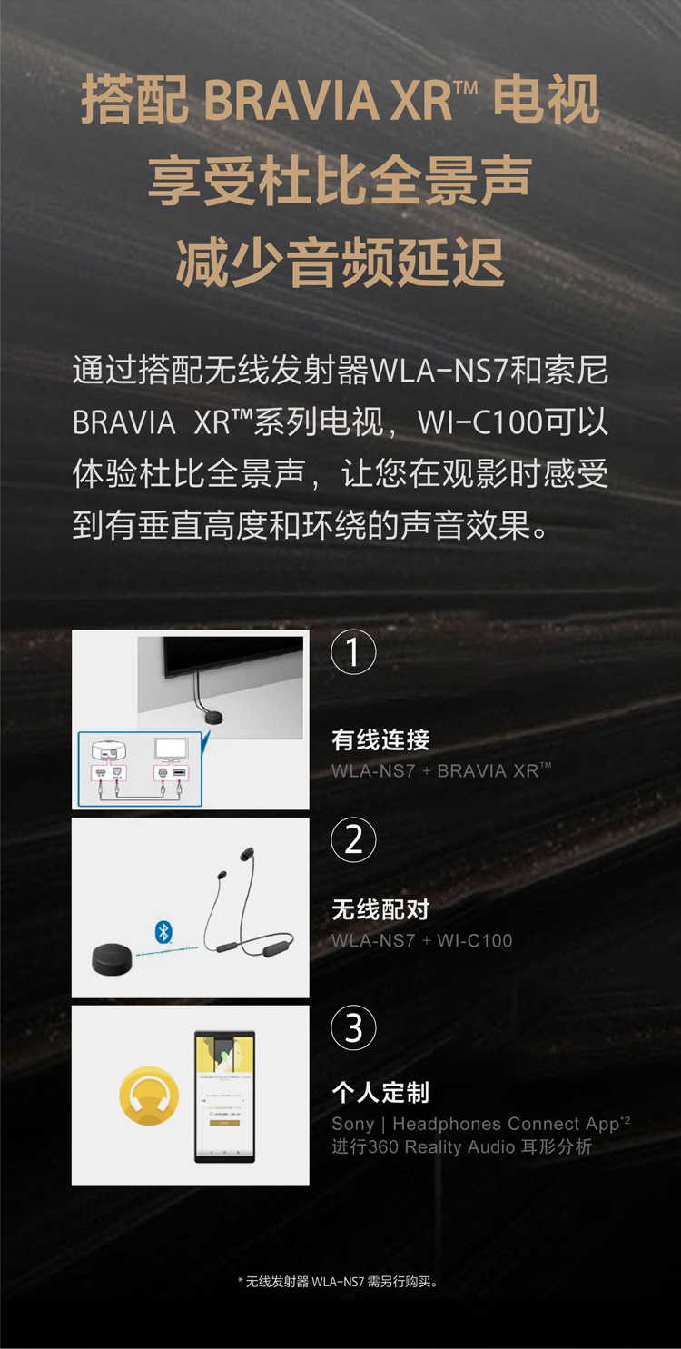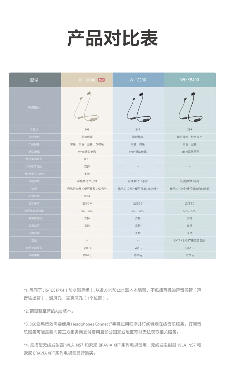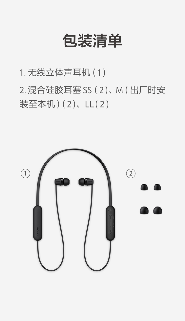 索尼(SONY) WI-C100 颈挂式无线蓝牙耳机 手机通话 IPX4防水防汗 运动耳机挂脖式 约25小时续航 灰褐色