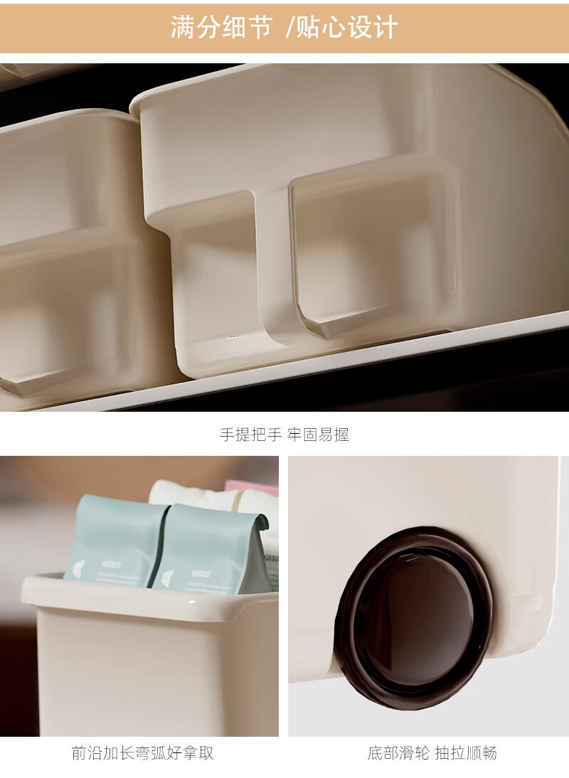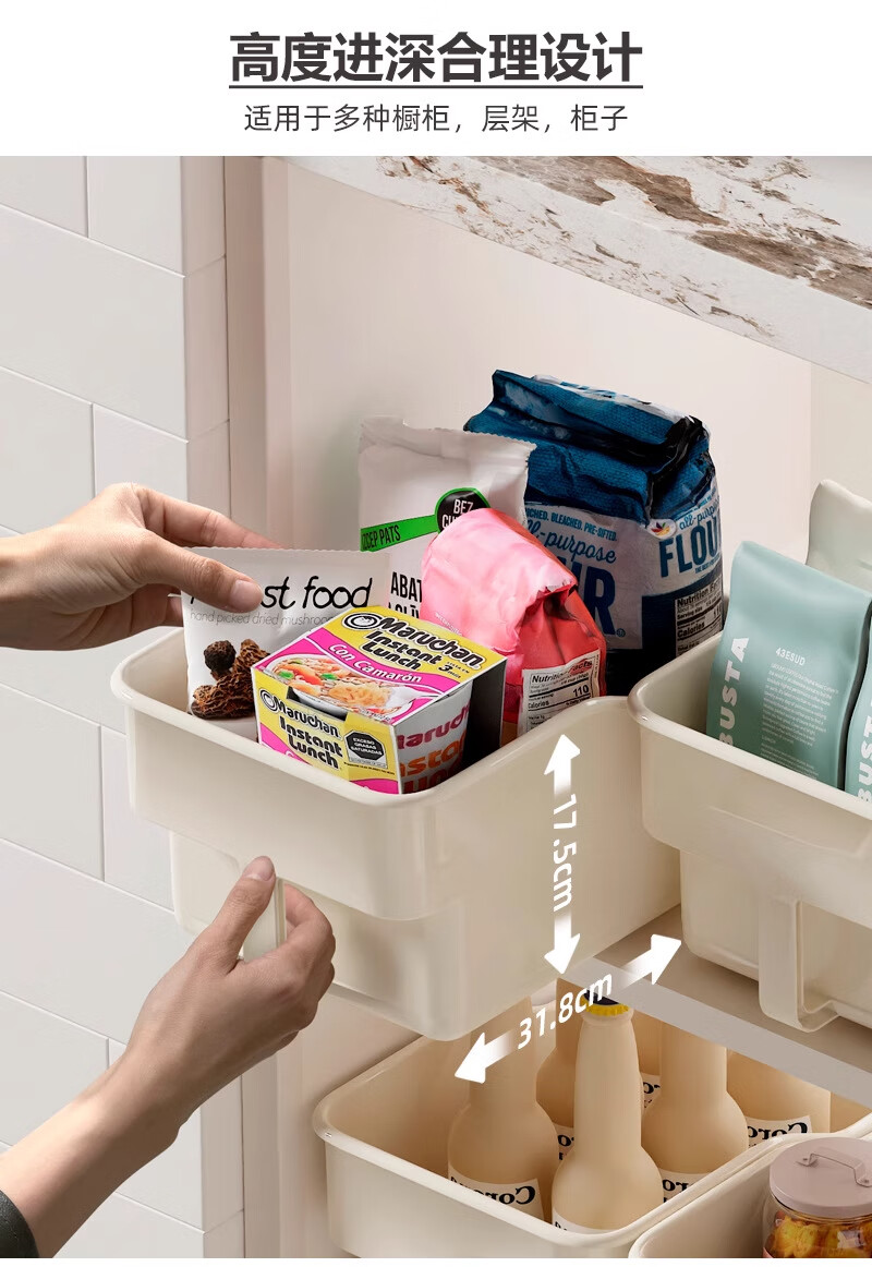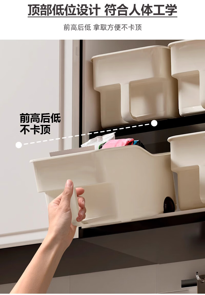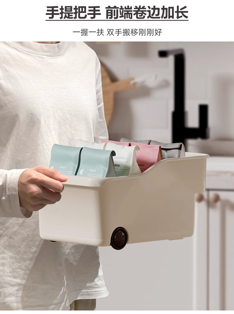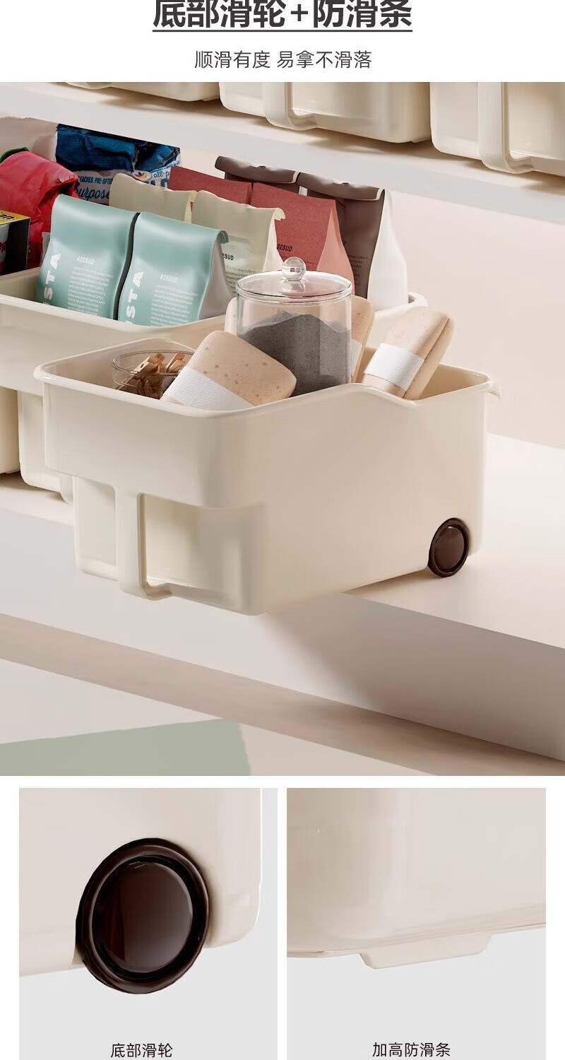 木格格厨房收纳盒调料品置物架锅盖架锅具橱柜收纳盒零食储物收纳架子 加厚/滑轮/把手款【中号1个装】
