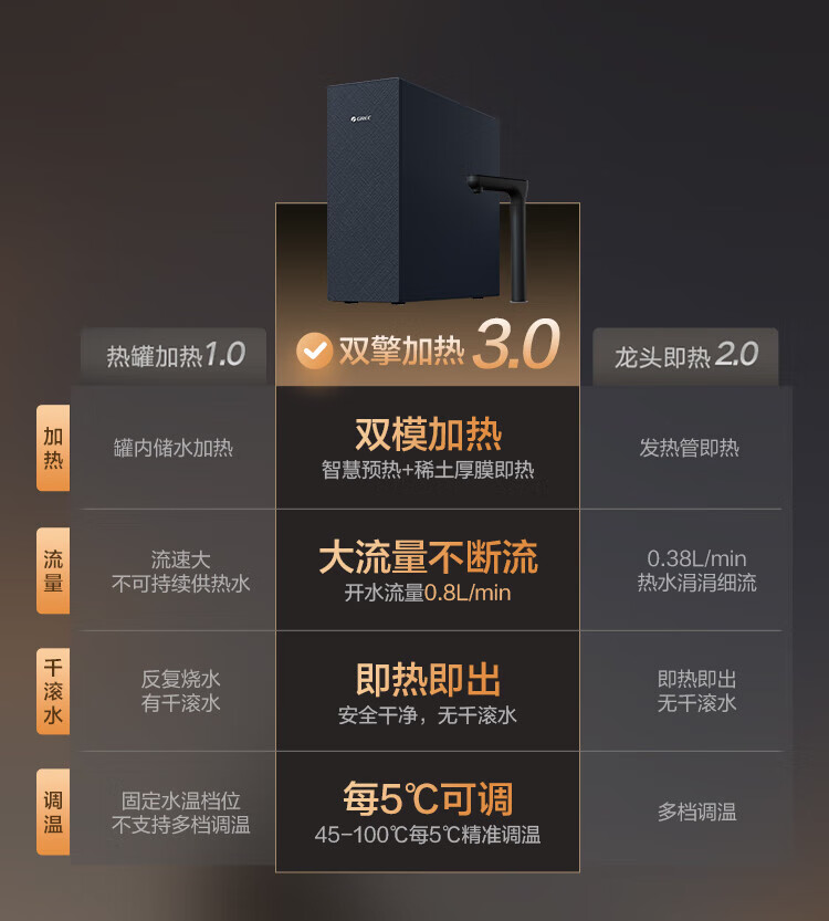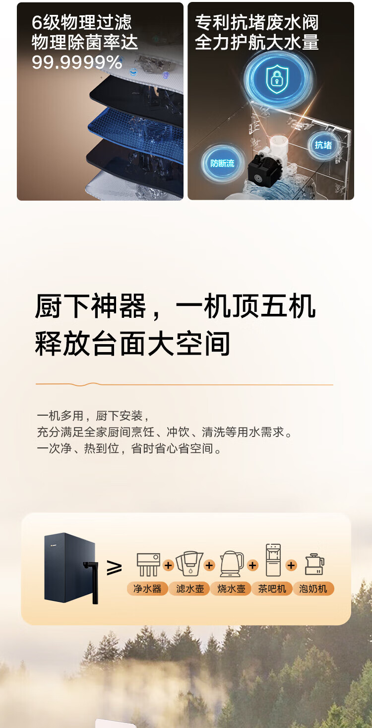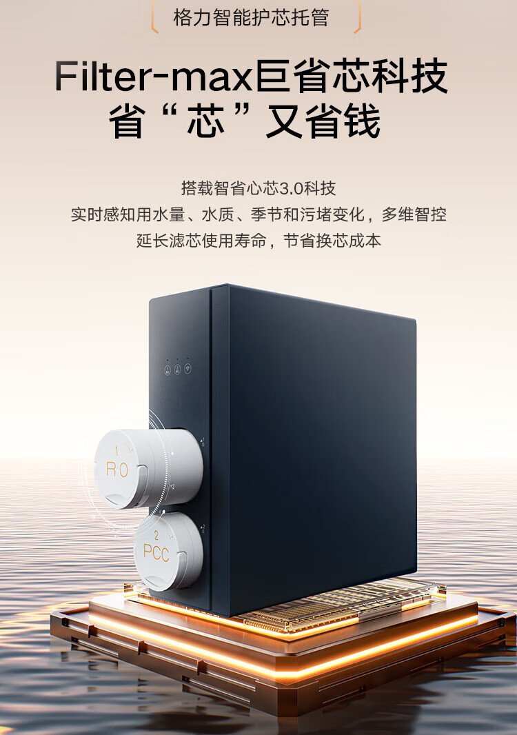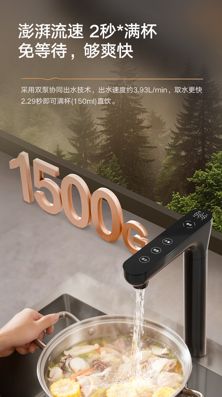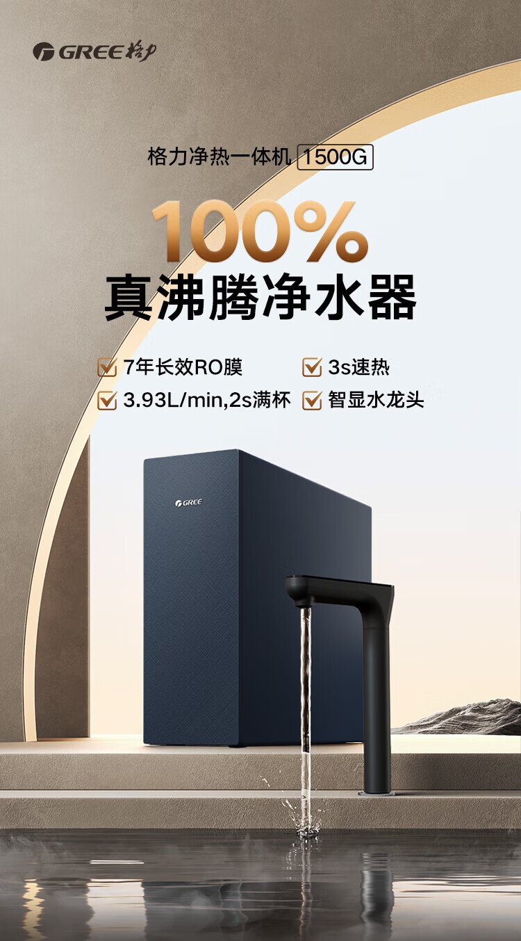 格力(GREE)1000G通量1500G温热水流速厨下式净水器反渗透家用直饮净热一体机一机顶五机WTE-PRC800-2X801A