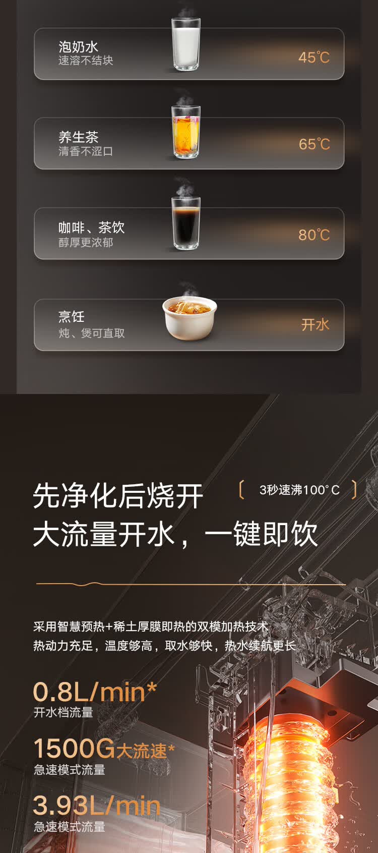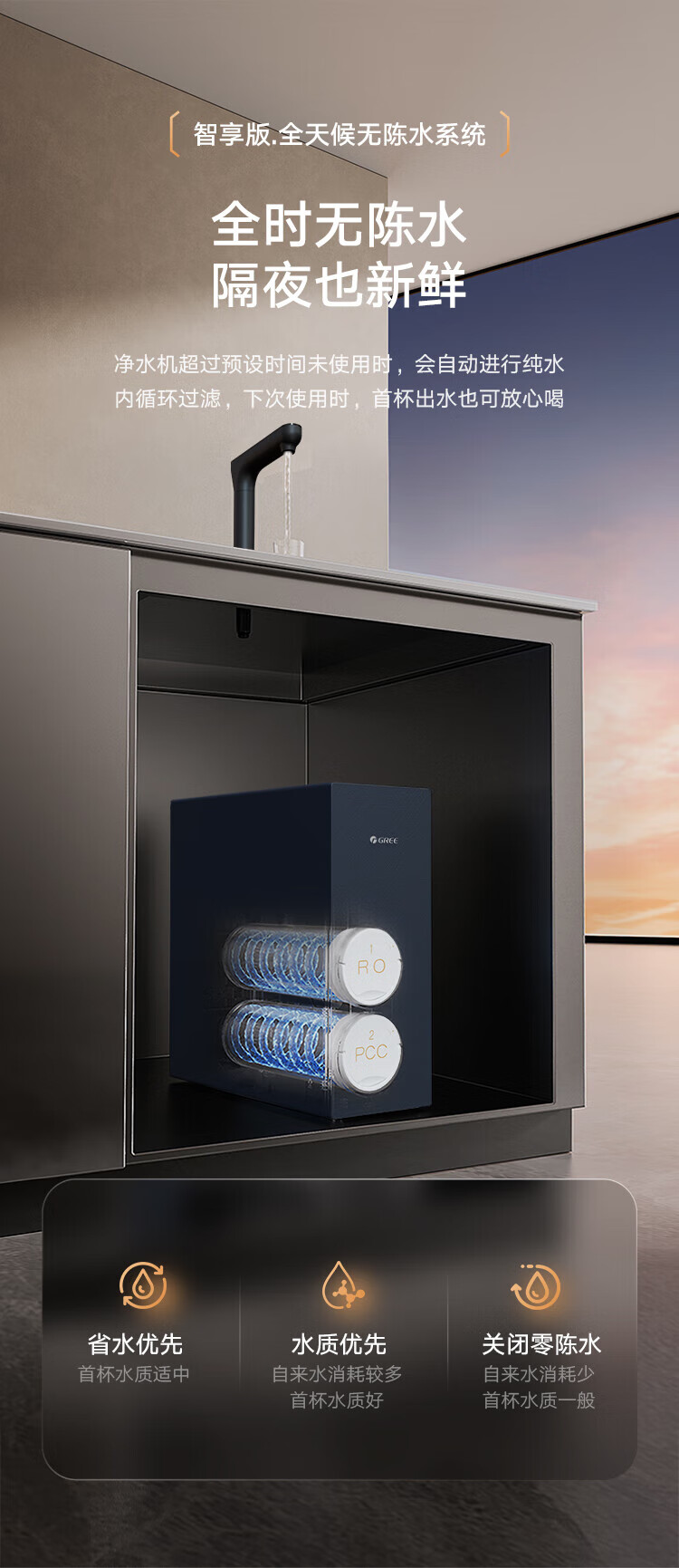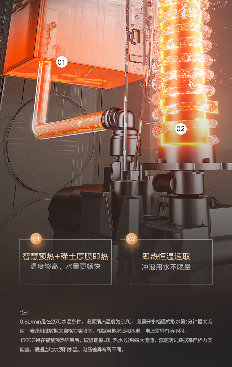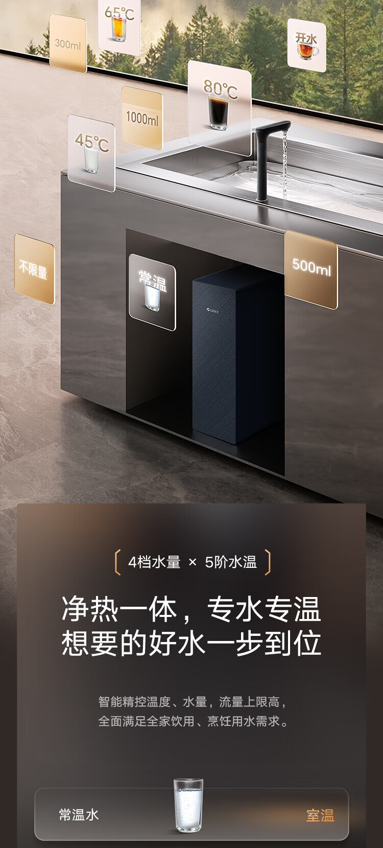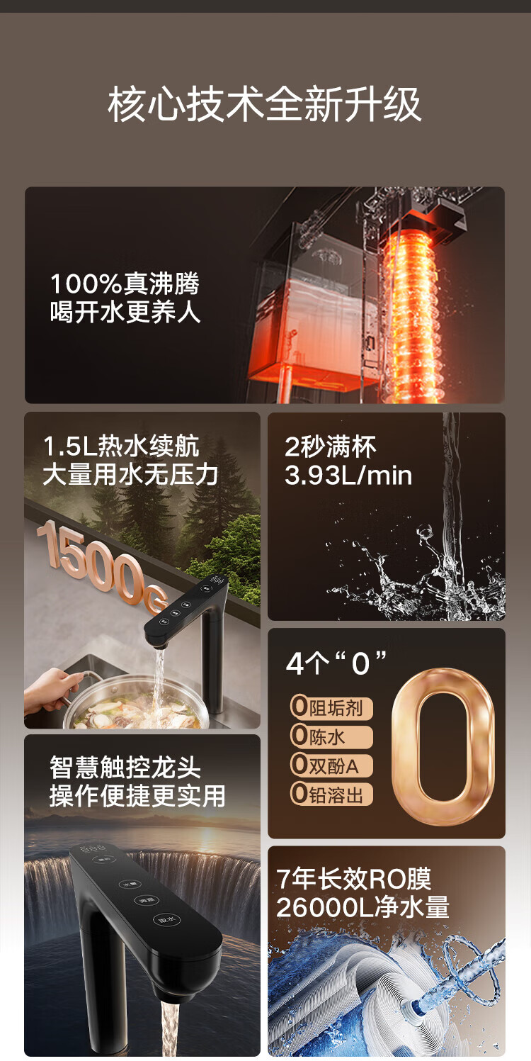 格力(GREE)1000G通量1500G温热水流速厨下式净水器反渗透家用直饮净热一体机一机顶五机WTE-PRC800-2X801A