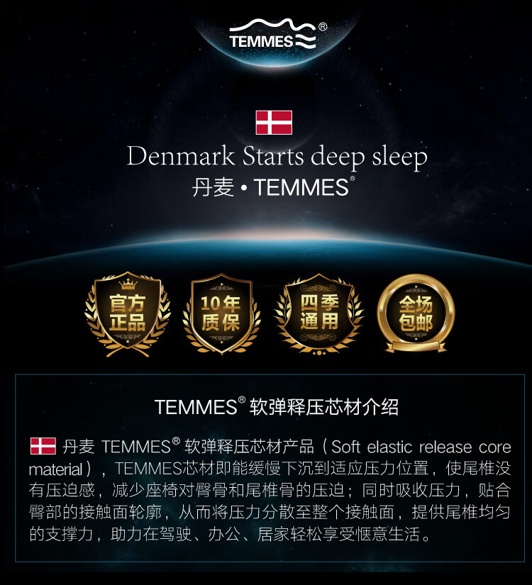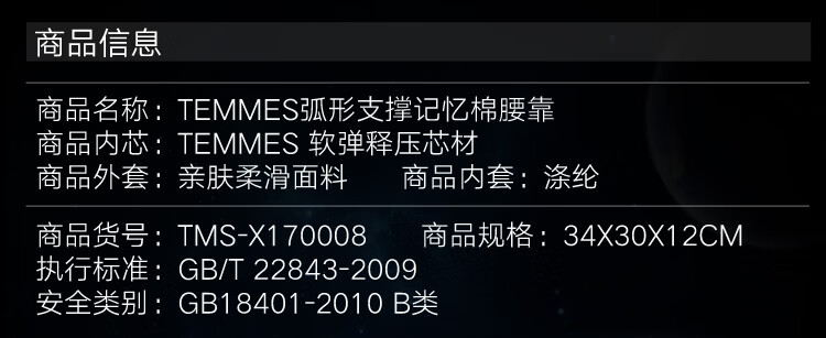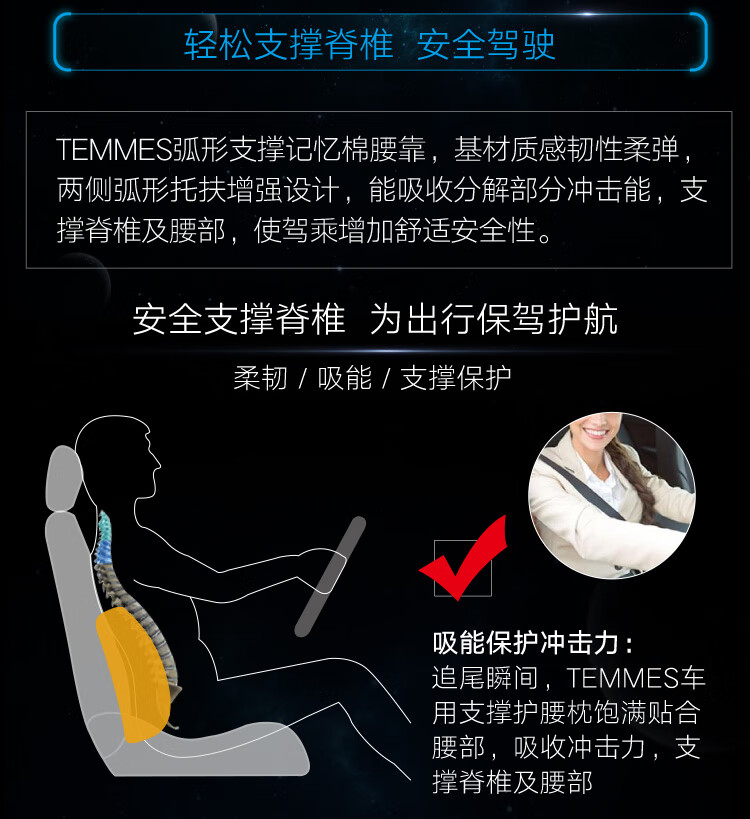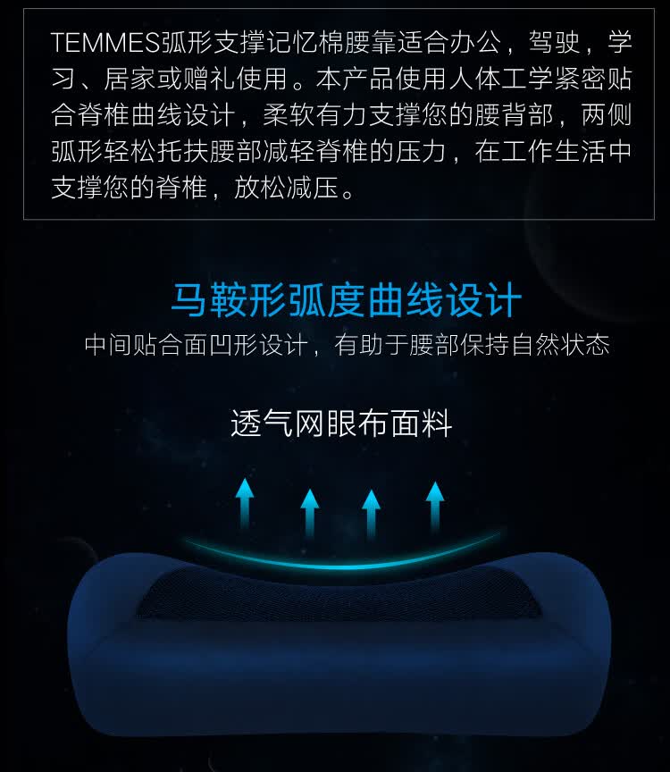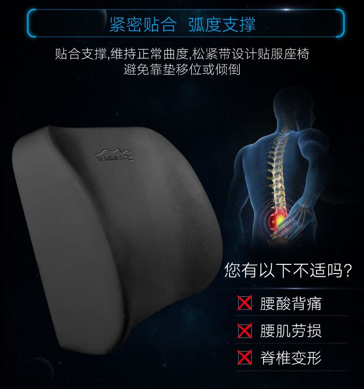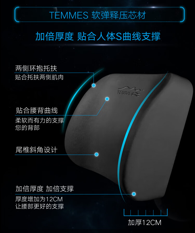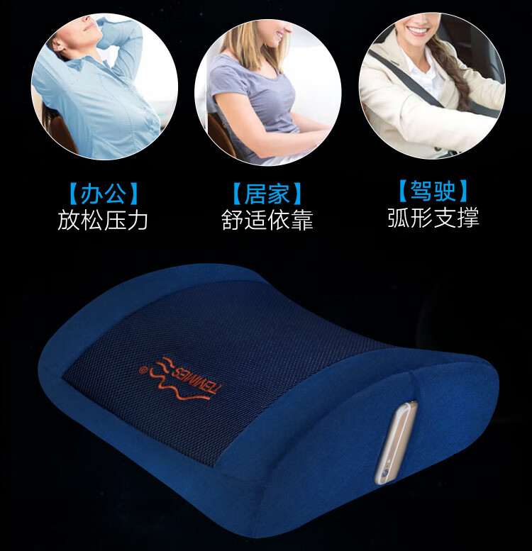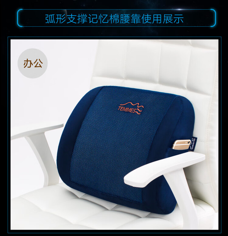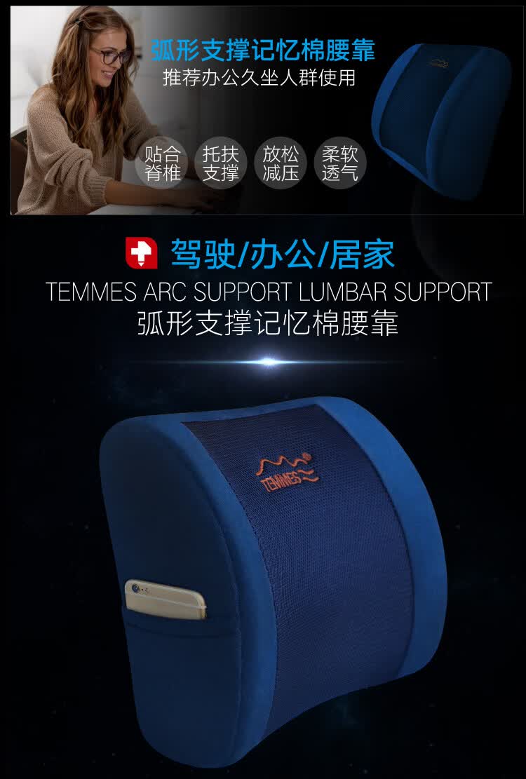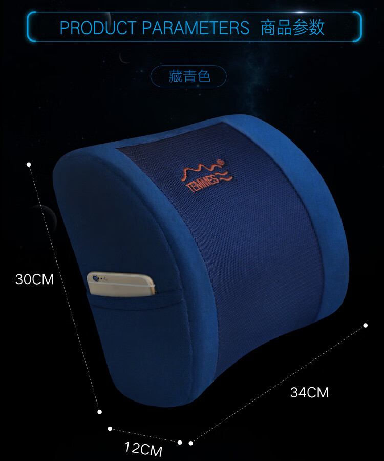 TEMMES 丹麦泰梅斯 办公室腰靠垫汽车座椅腰垫靠背腰托车用靠枕腰枕 藏青色