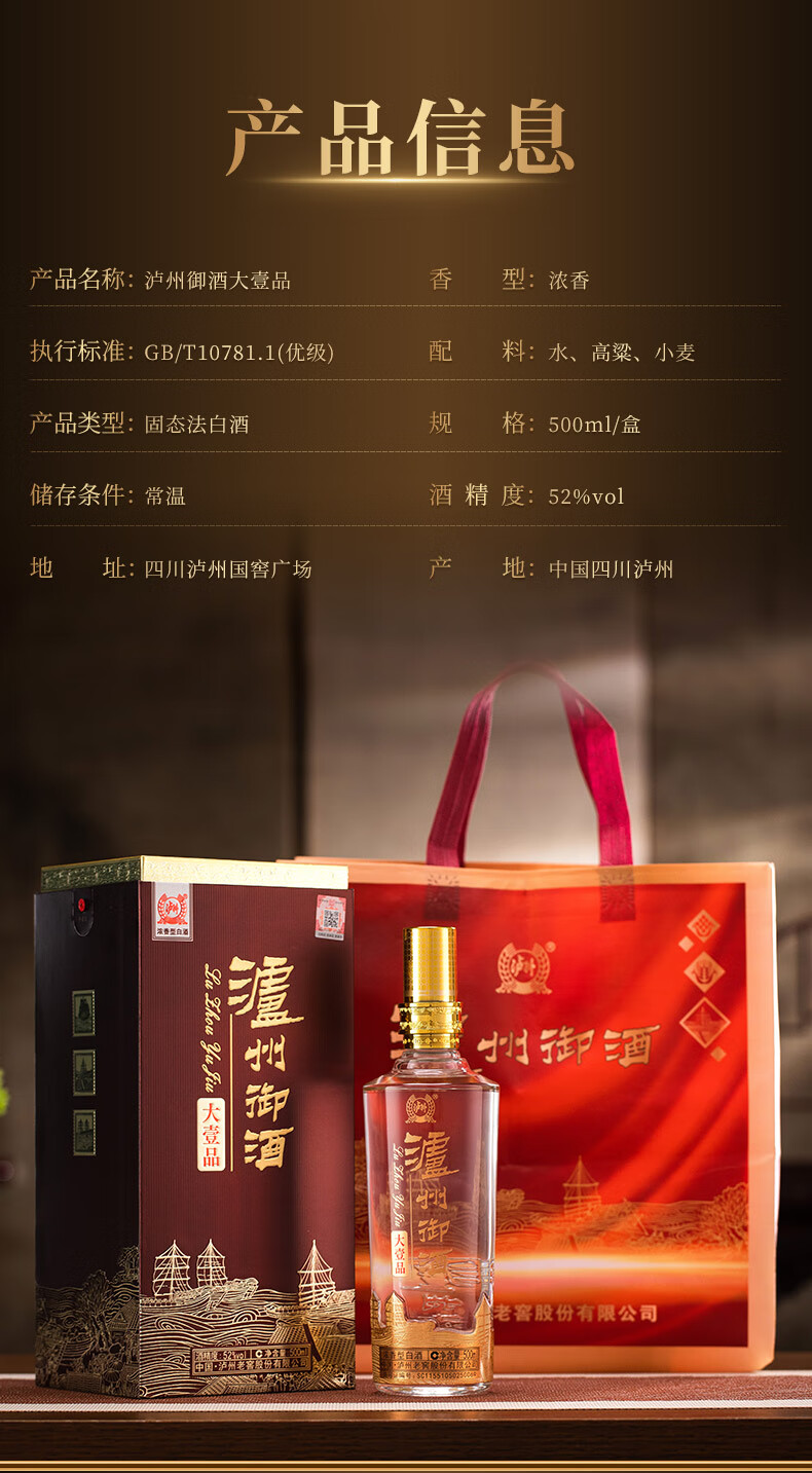 泸州老窖泸州御酒大壹品52度浓香型高度纯粮食白酒整箱送礼宴请婚宴喜酒 52度 500mL 6瓶