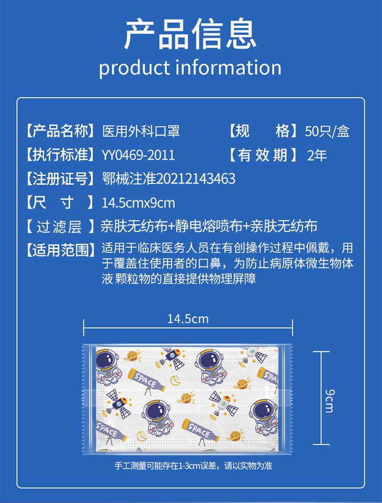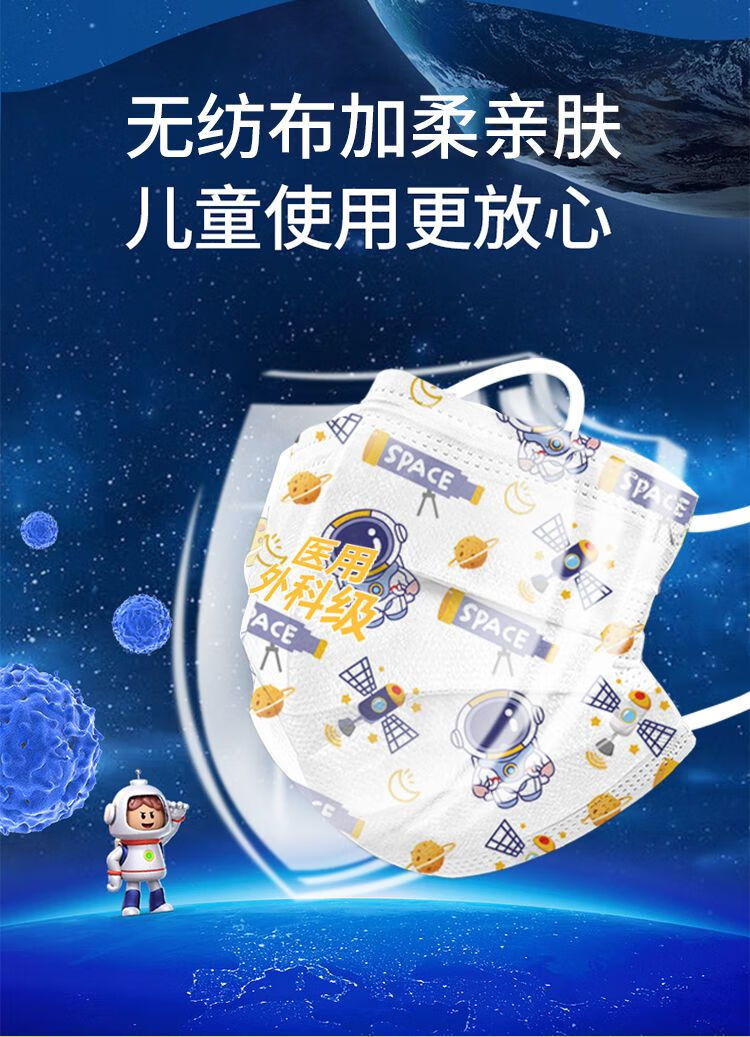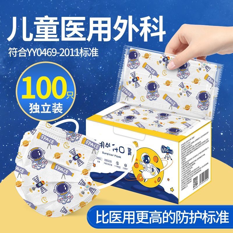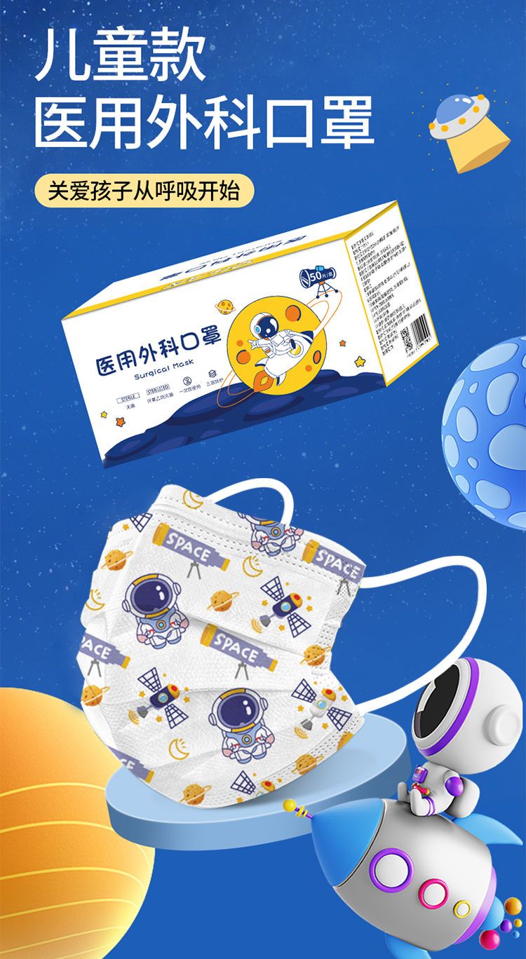 通用儿童医用外科口罩一次性正规三层防病毒4-15岁学生卡通独立装 医用外科级【宇航员】4-15岁适用 50只【三层防病菌】独立包装