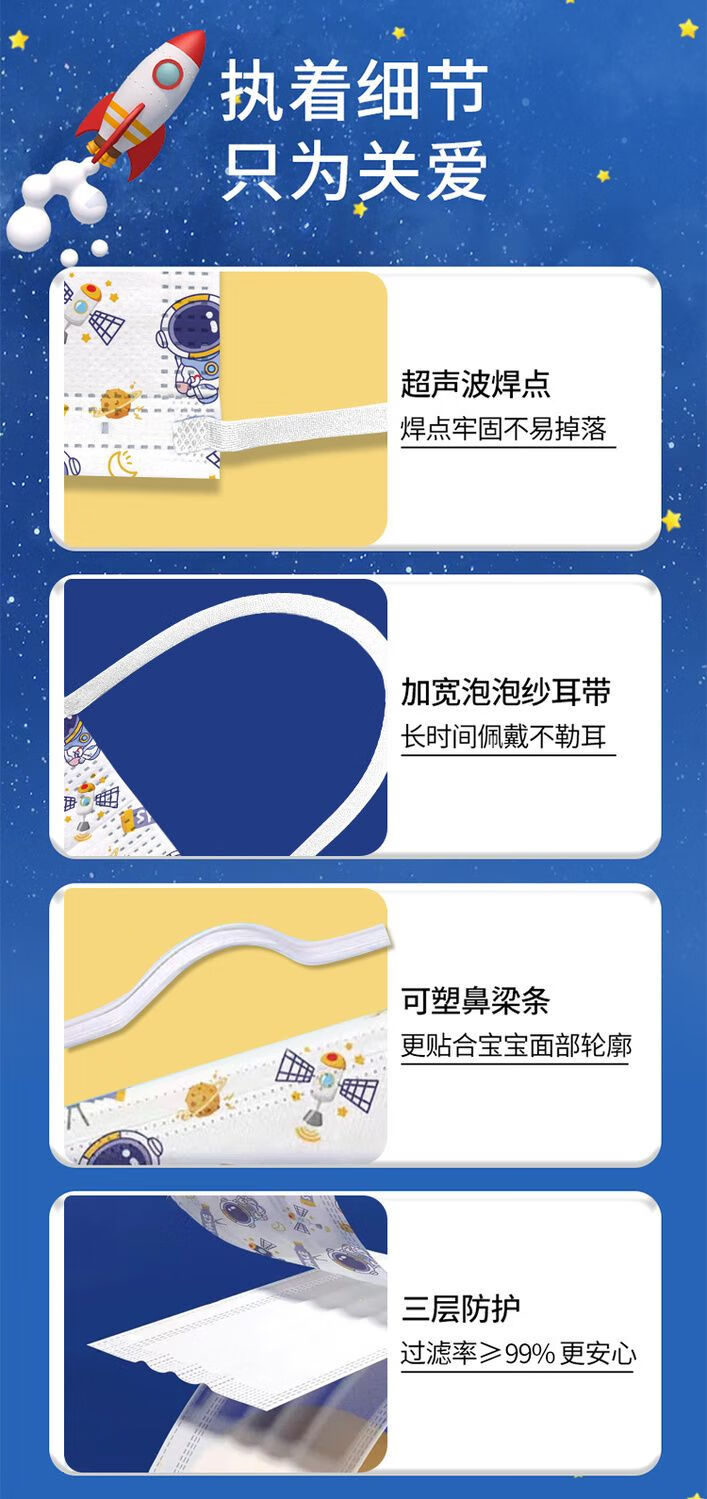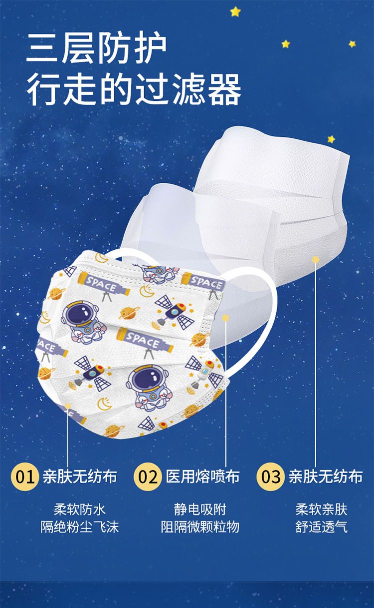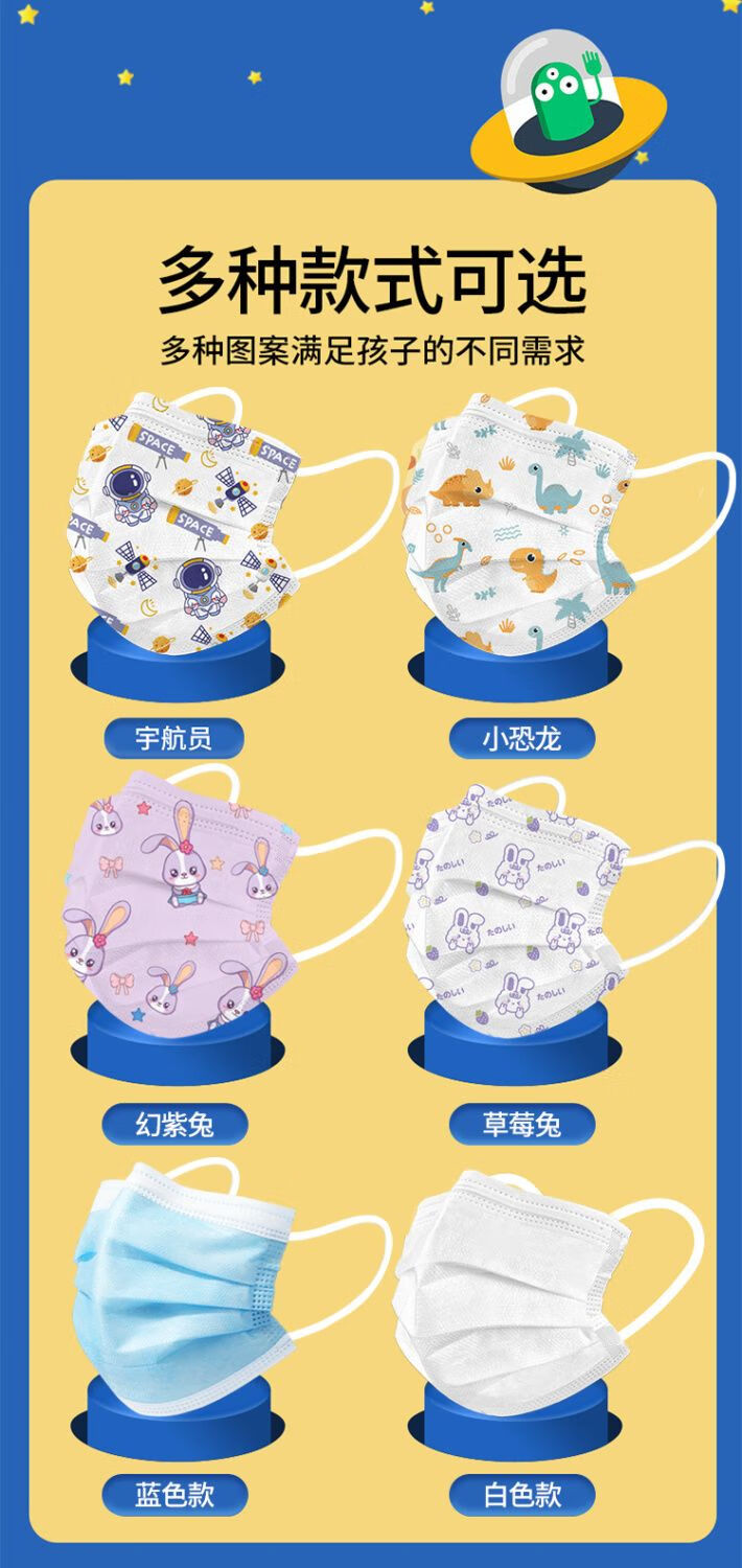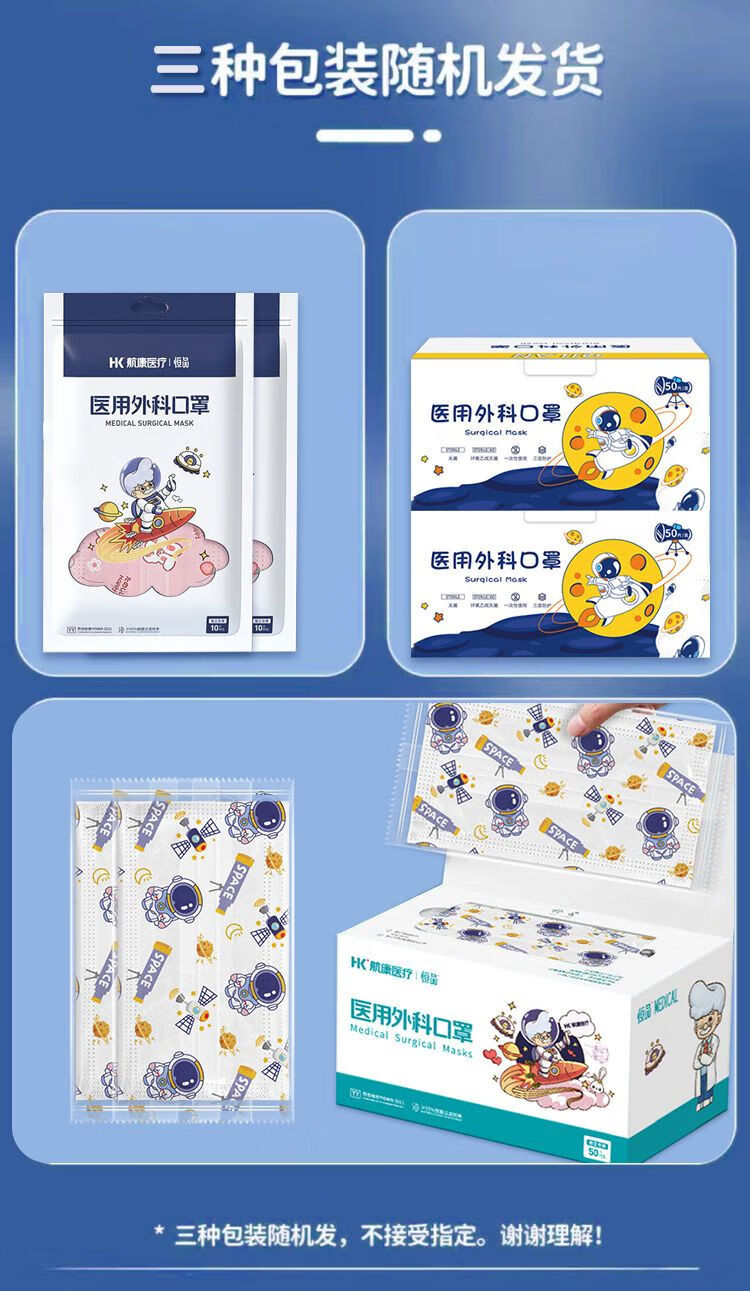 通用儿童医用外科口罩一次性正规三层防病毒4-15岁学生卡通独立装 医用外科级【宇航员】4-15岁适用 50只【三层防病菌】独立包装