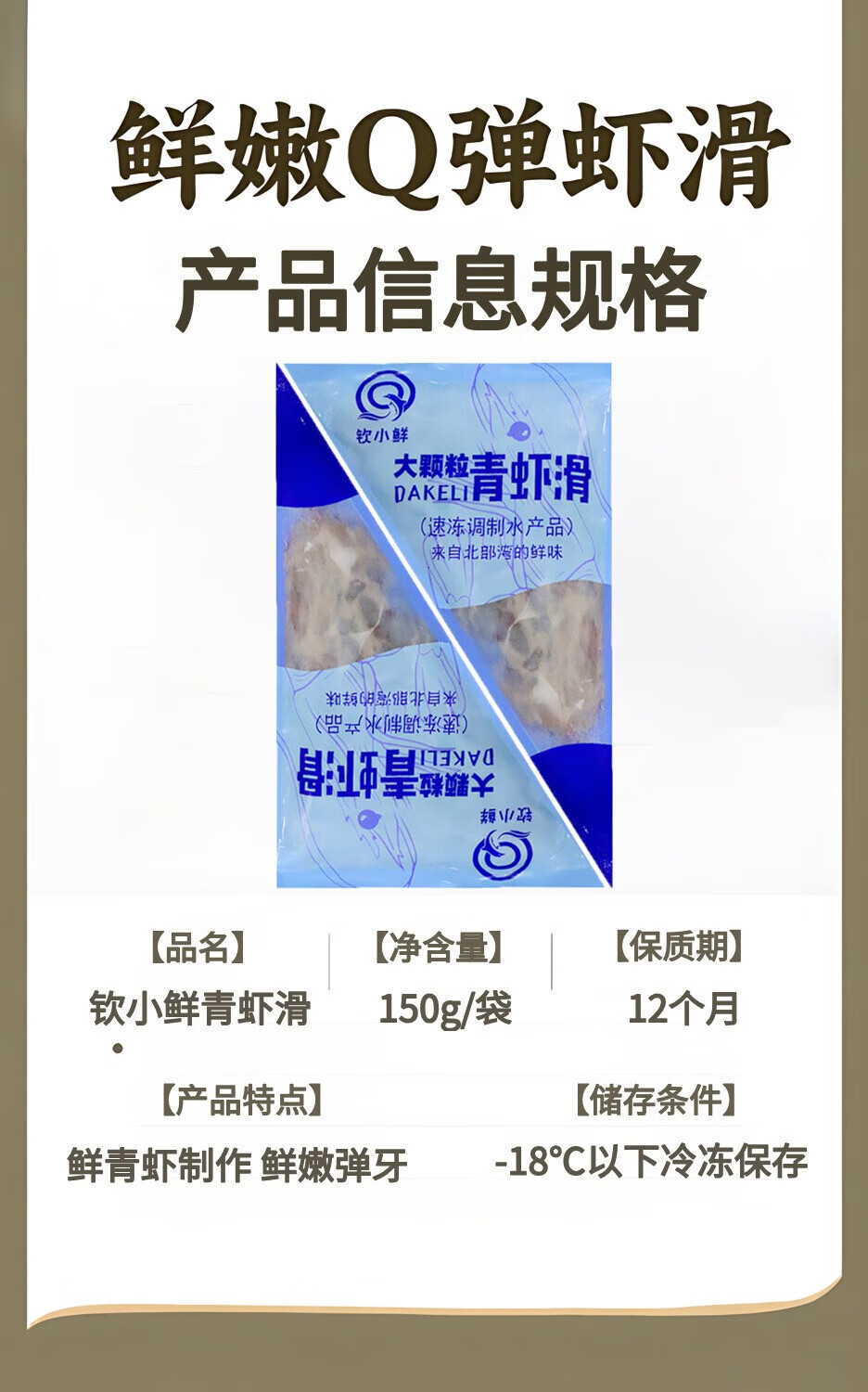 钦小鲜大颗粒虾滑含虾量>95%分装 虾仁含量高 火锅丸料关东煮食材麻辣烫 北部湾青虾滑 150g(净重) *4袋 只拼品质 不拼价格