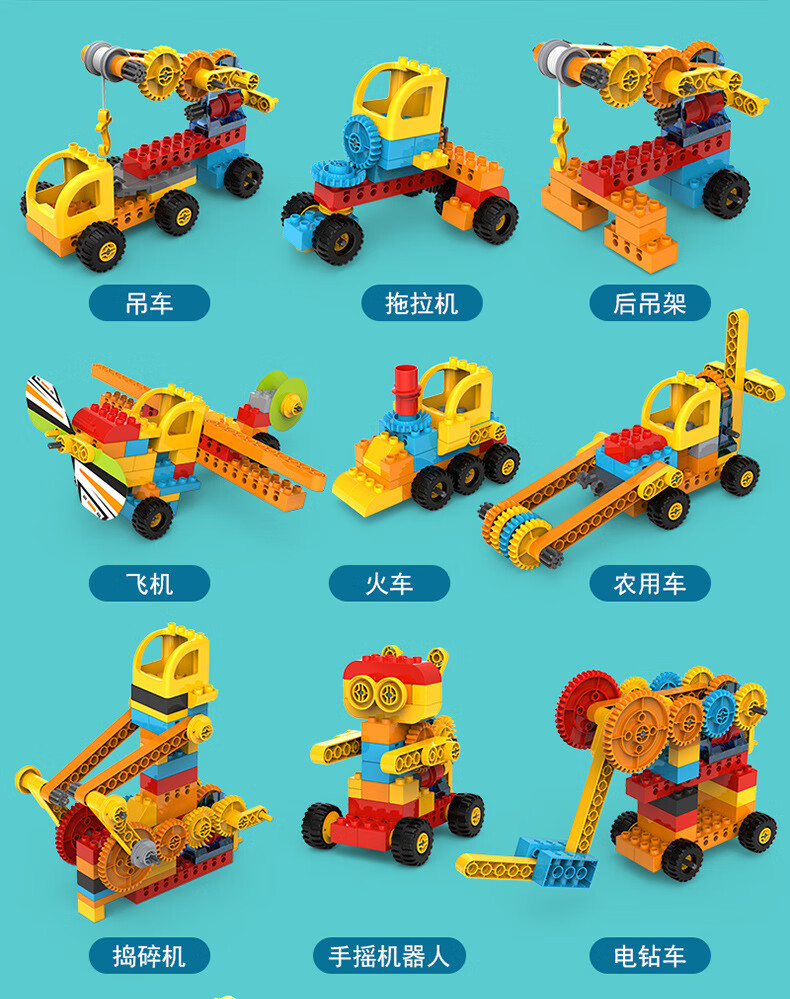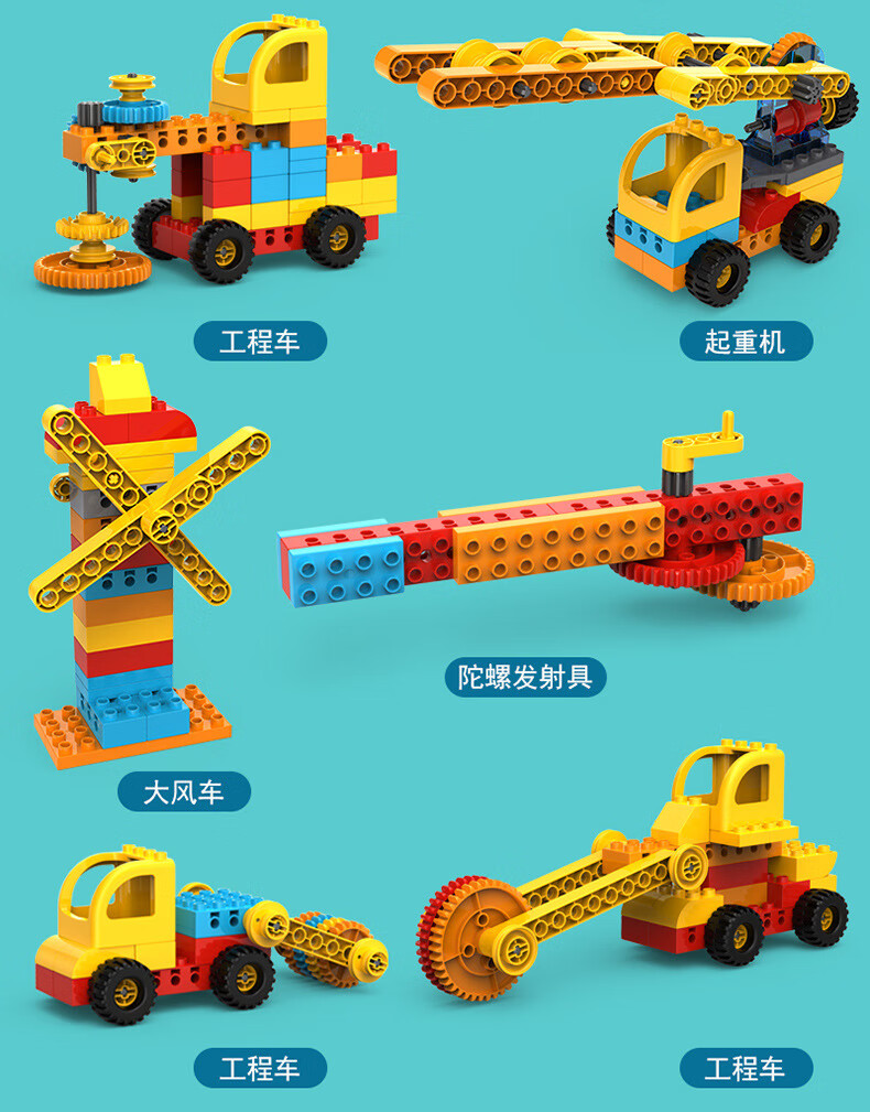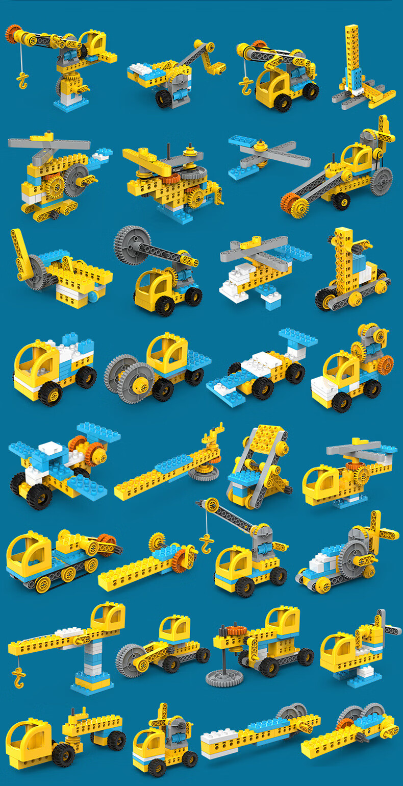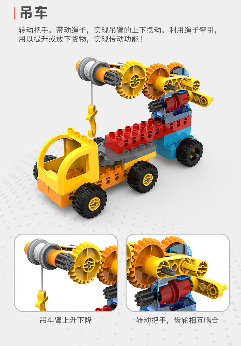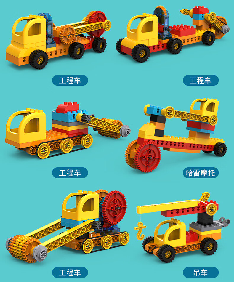 【优选直发】儿童百变积木车手工DIY拼装工程车大颗粒齿轮机械积 【37颗粒/拼5造型】机械工程积木