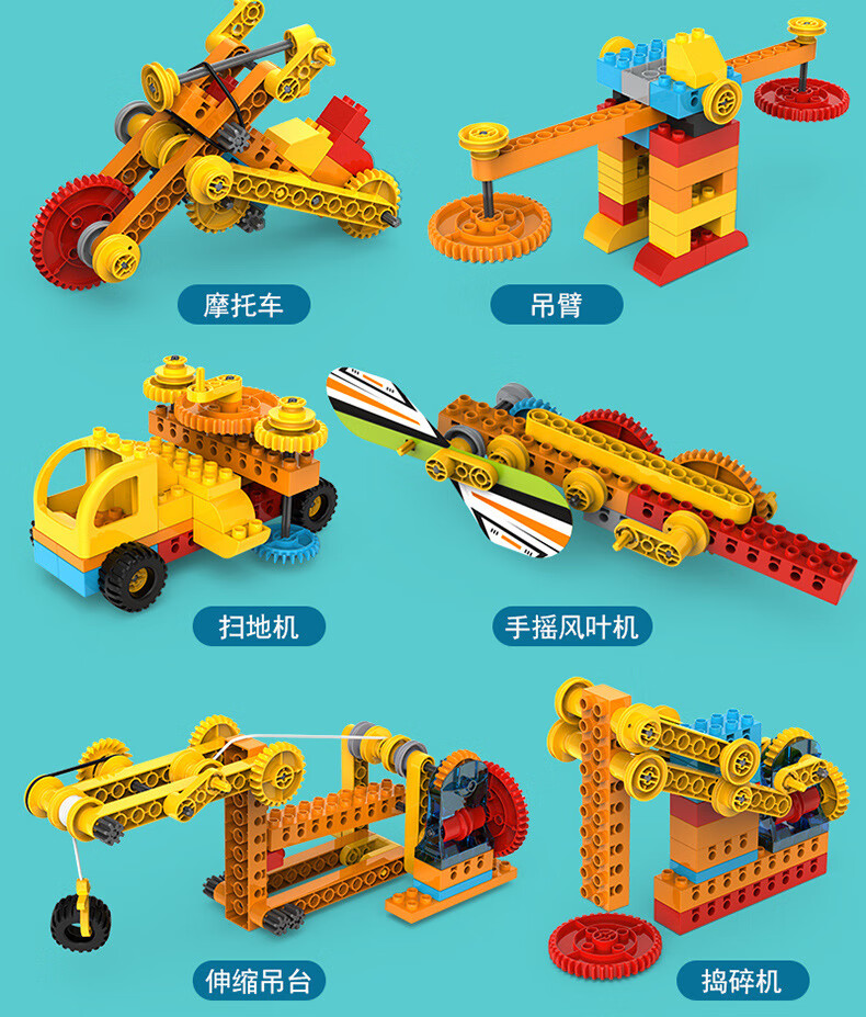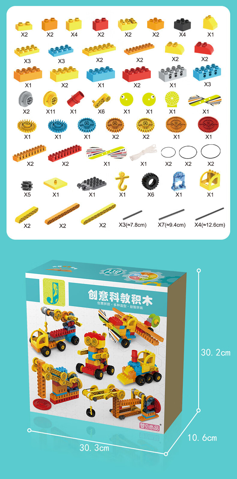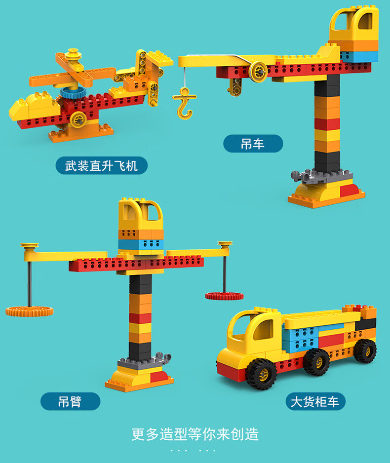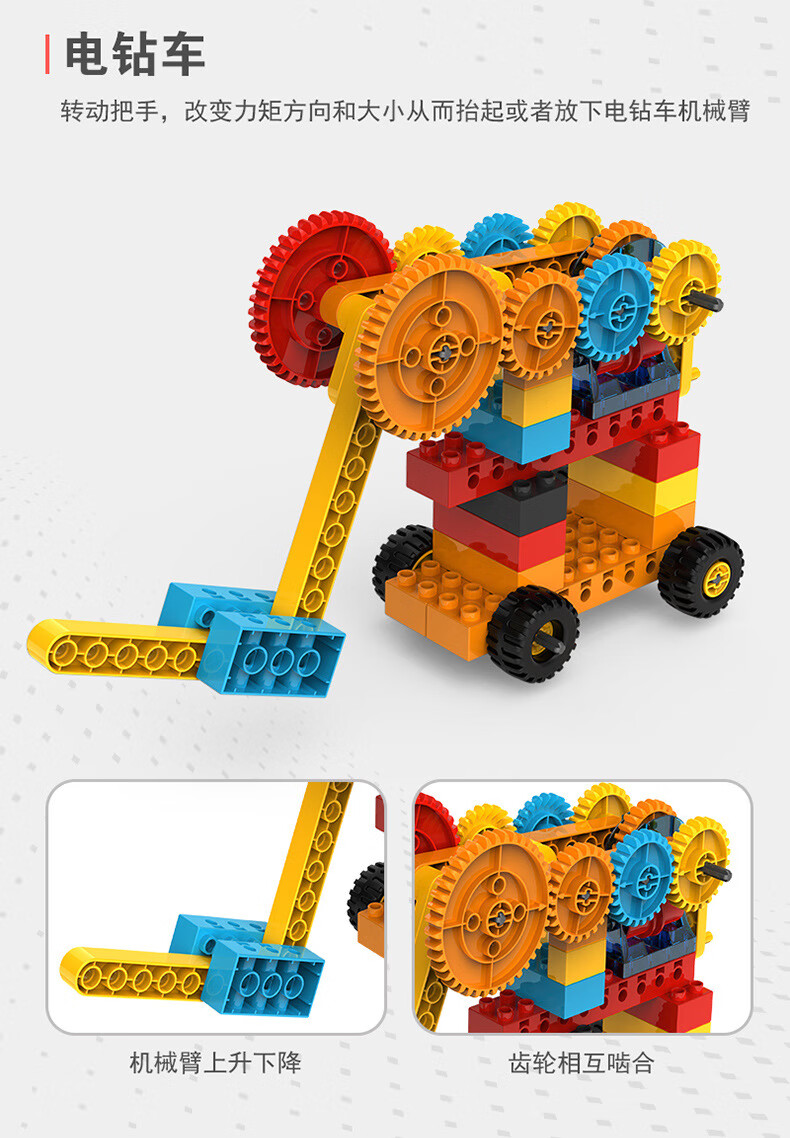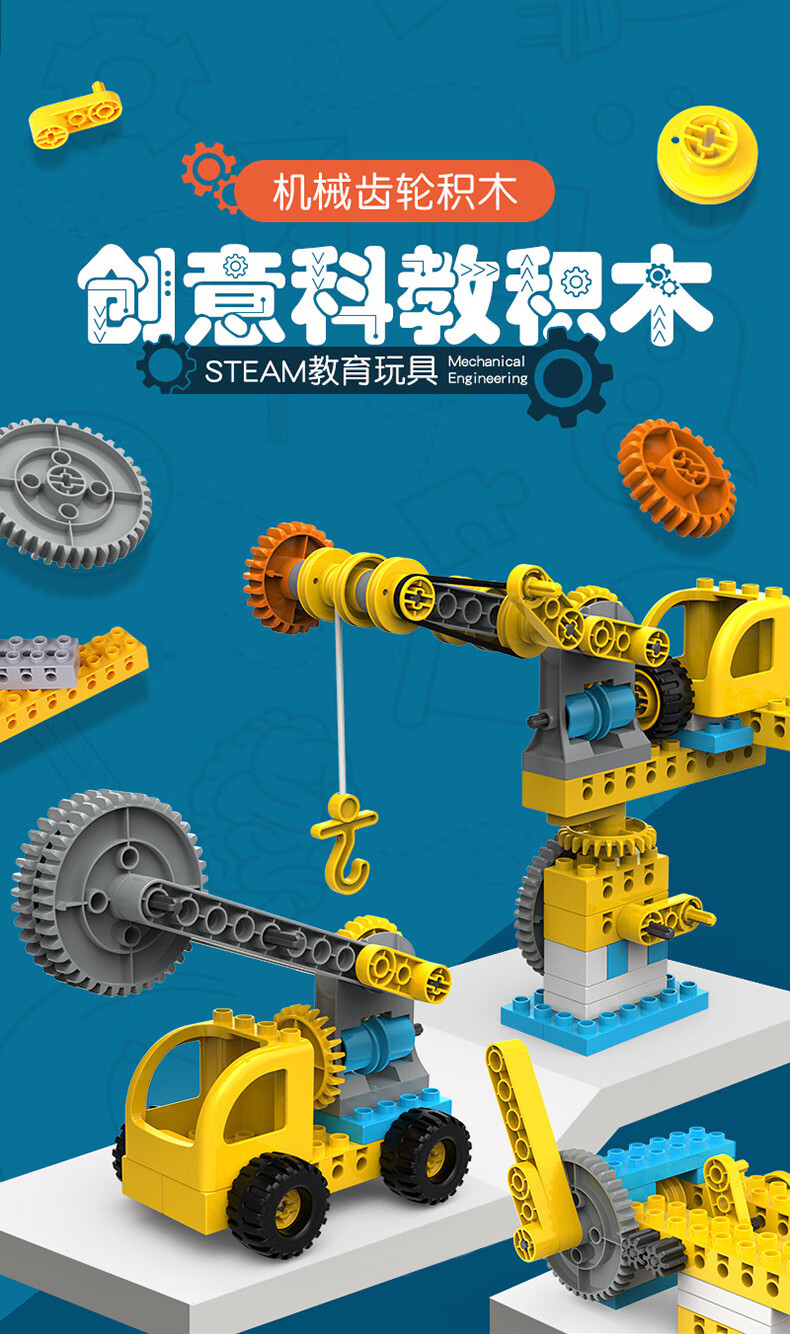 【优选直发】儿童百变积木车手工DIY拼装工程车大颗粒齿轮机械积 【37颗粒/拼5造型】机械工程积木