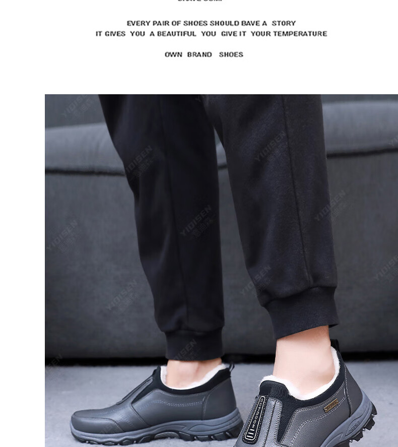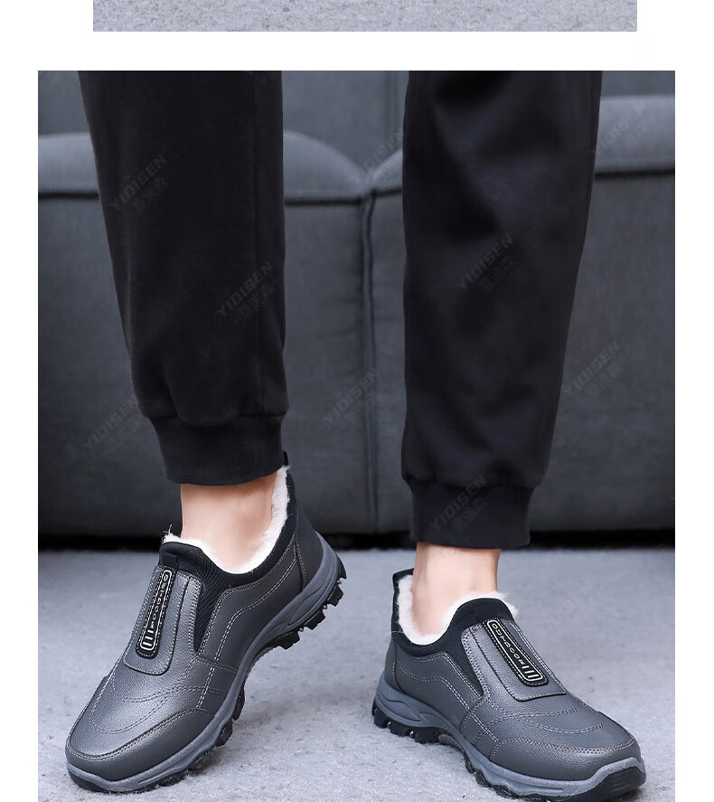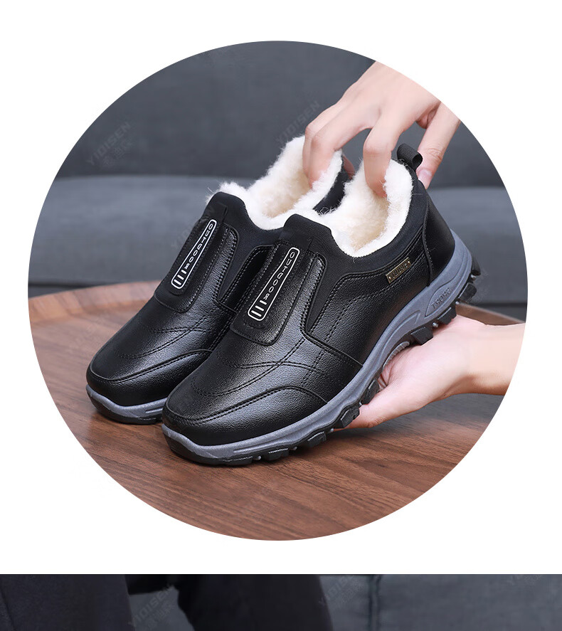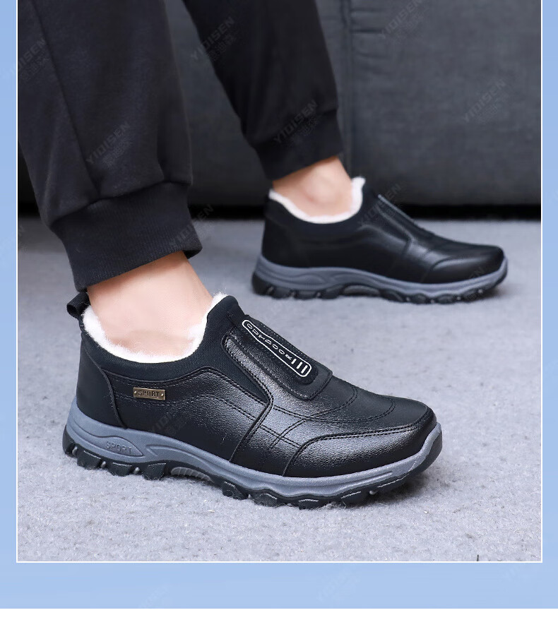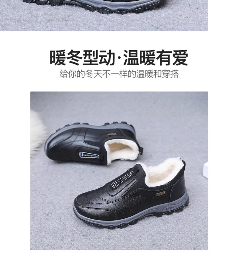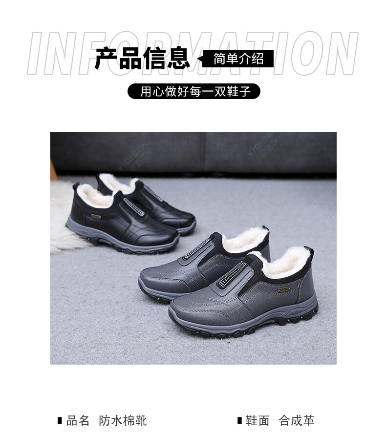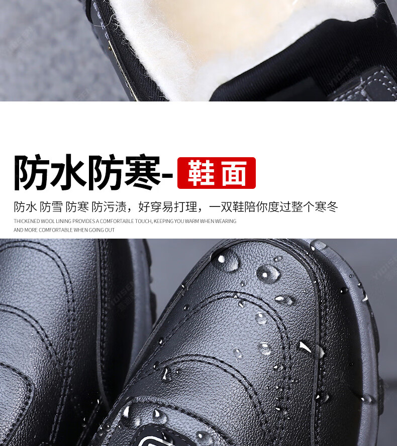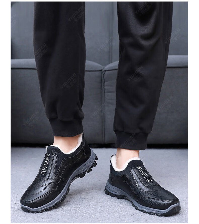 意迪森冬季男士棉鞋加绒保暖一脚蹬新中式加厚防水新款防寒软底防滑耐磨 黑色 加绒 39 (245mm)