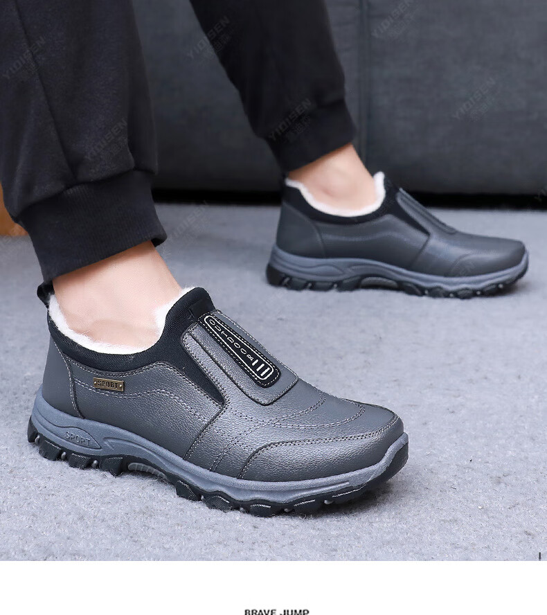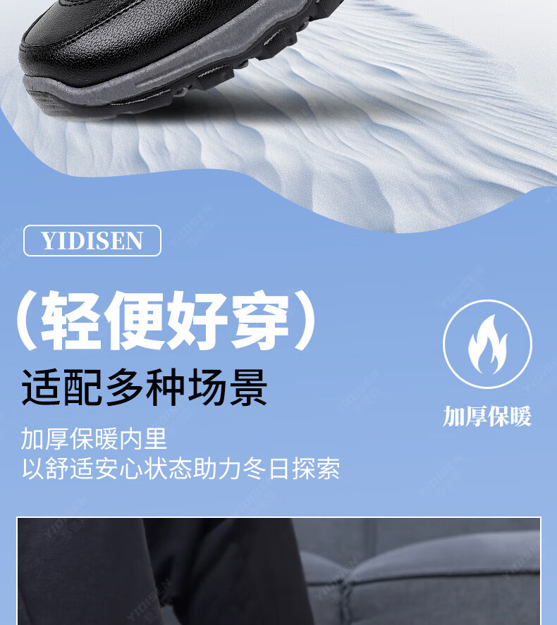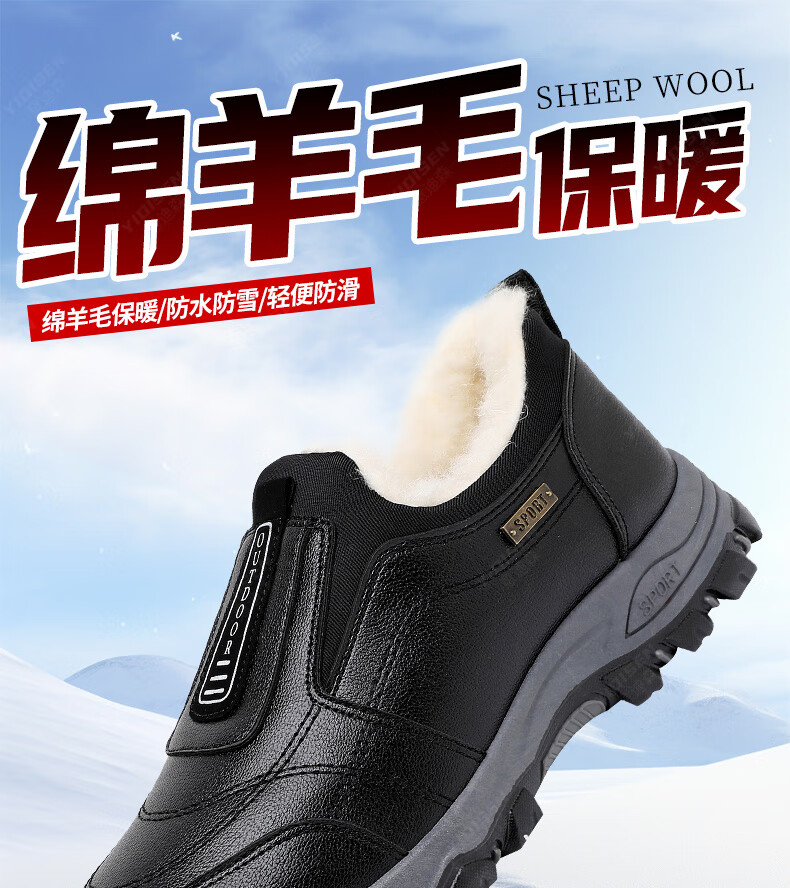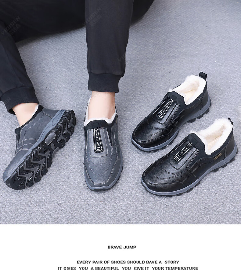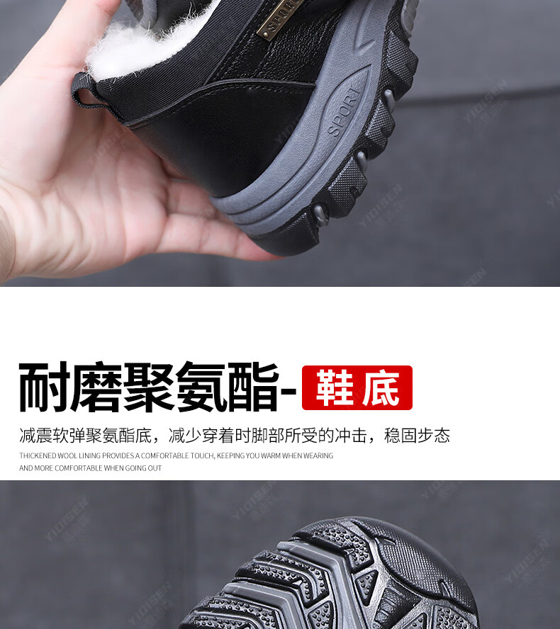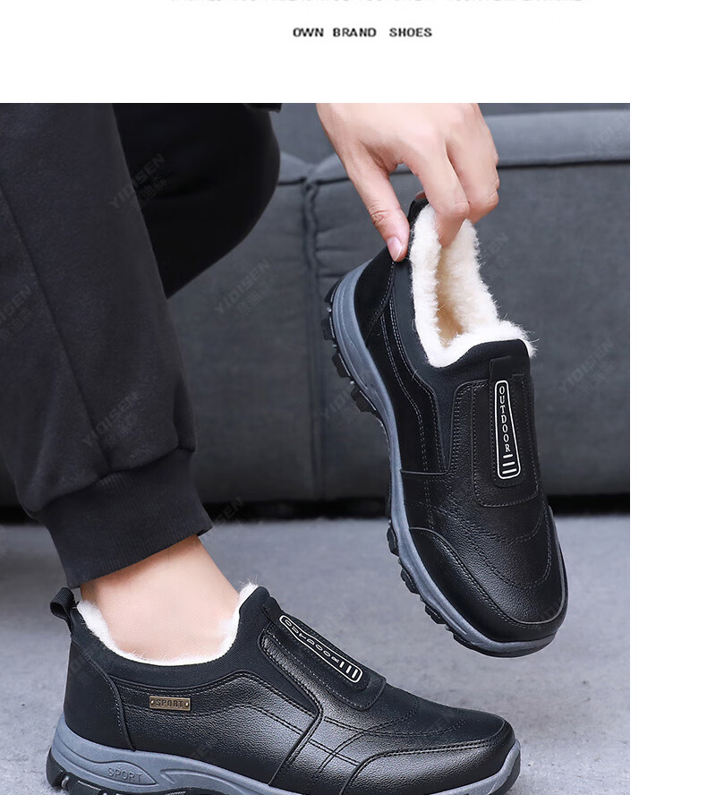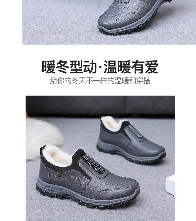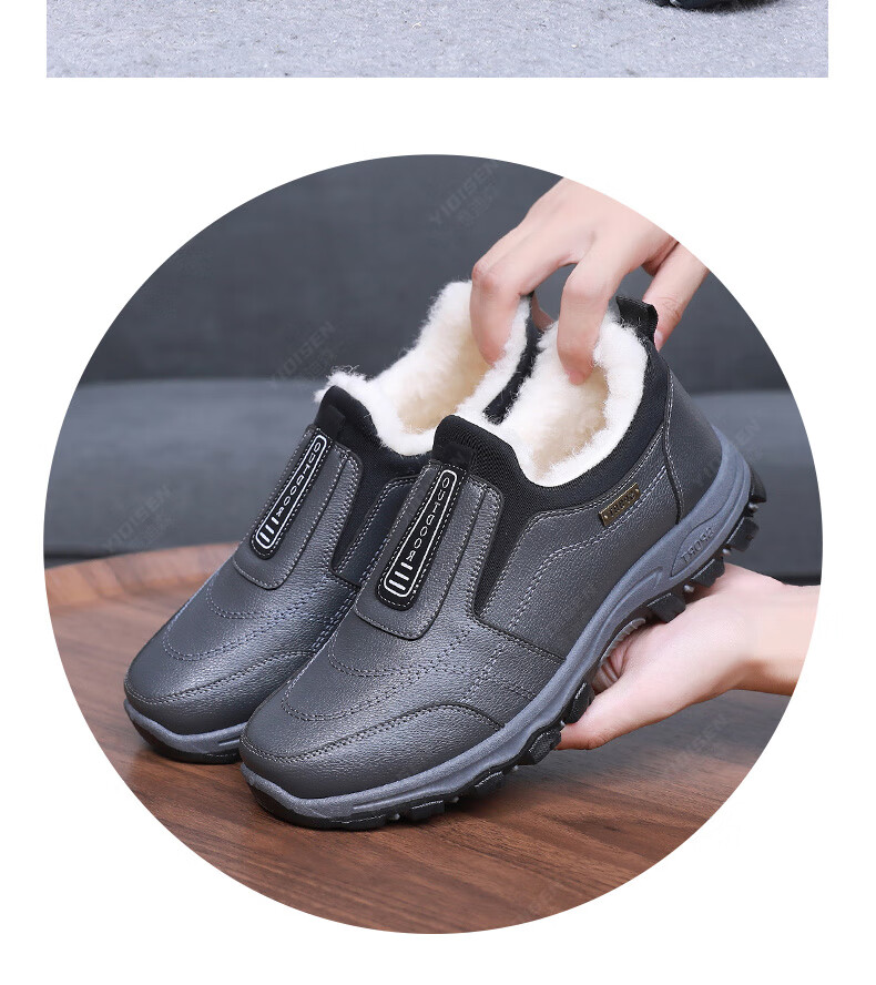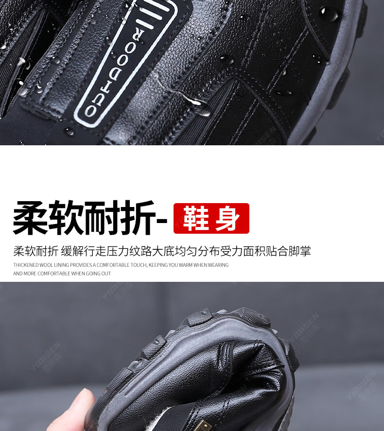 意迪森冬季男士棉鞋加绒保暖一脚蹬新中式加厚防水新款防寒软底防滑耐磨 黑色 加绒 39 (245mm)