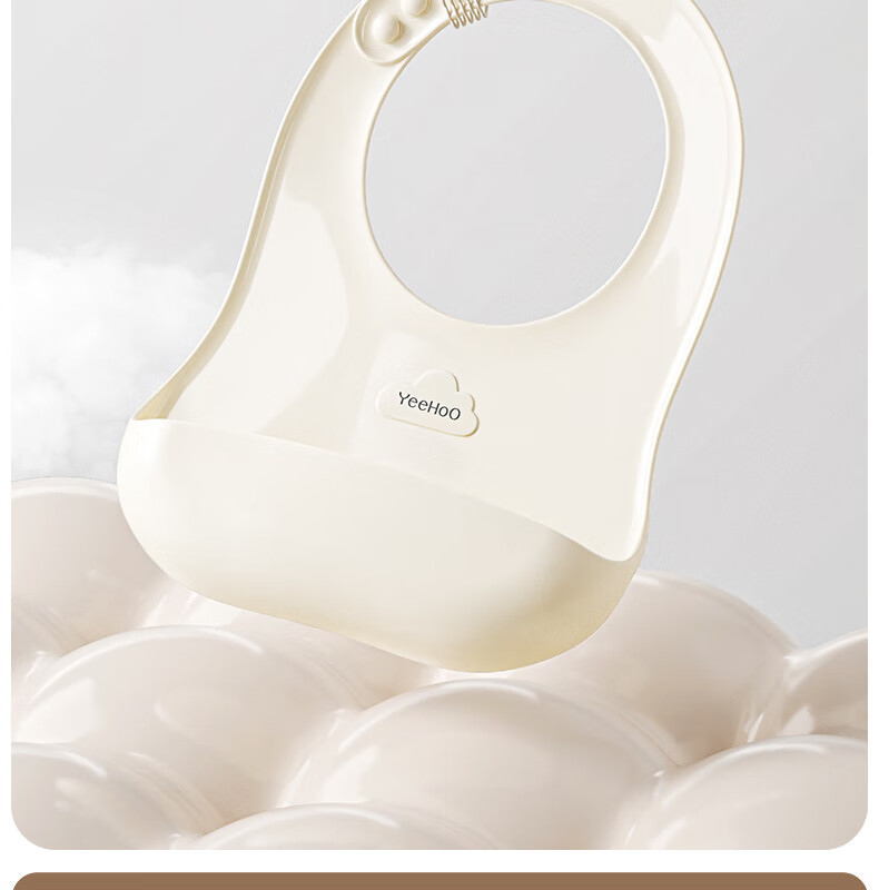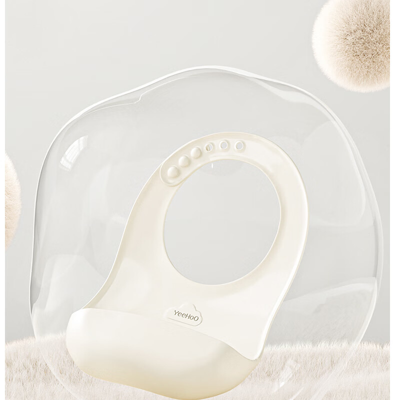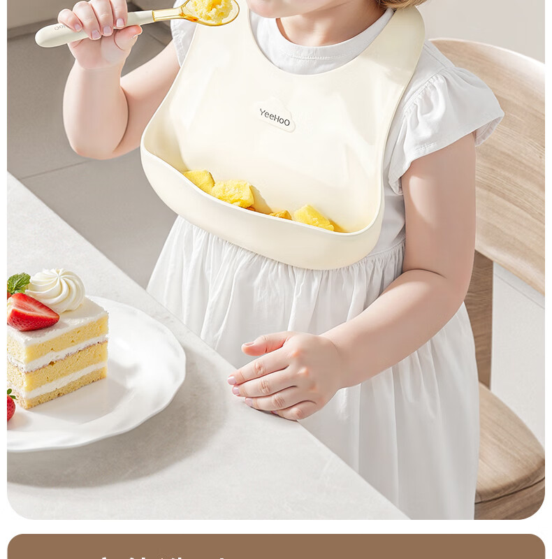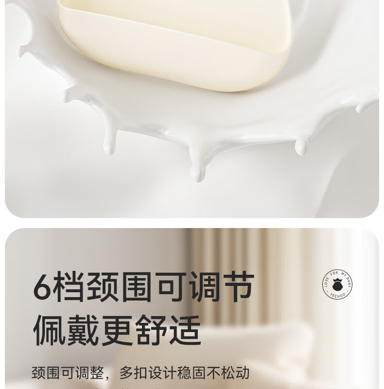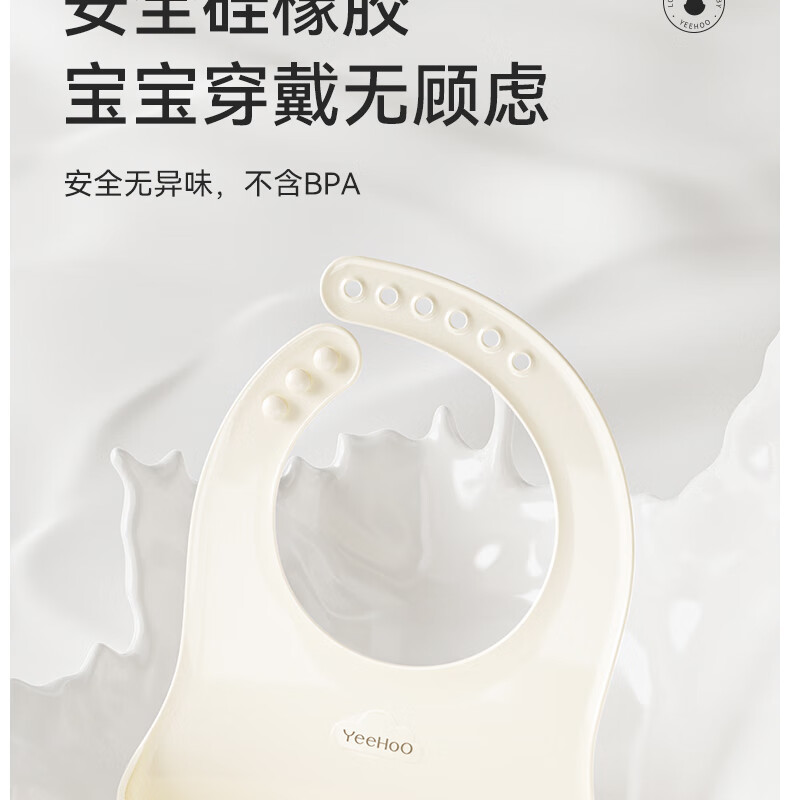 英氏(YEEHOO)宝宝吃饭围兜婴幼儿围嘴辅食饭兜超软硅胶儿童防水防油饭罩衣 奶白色