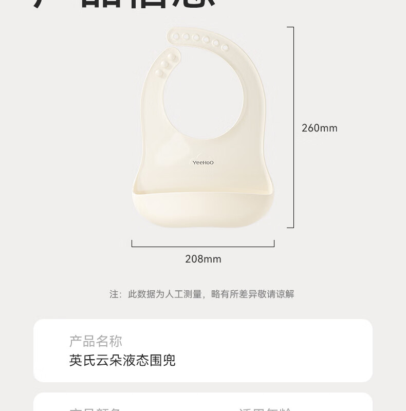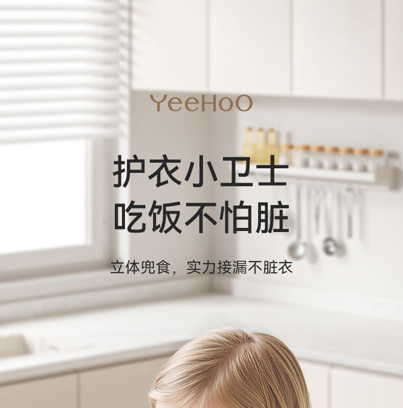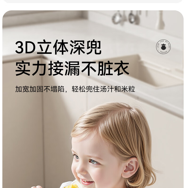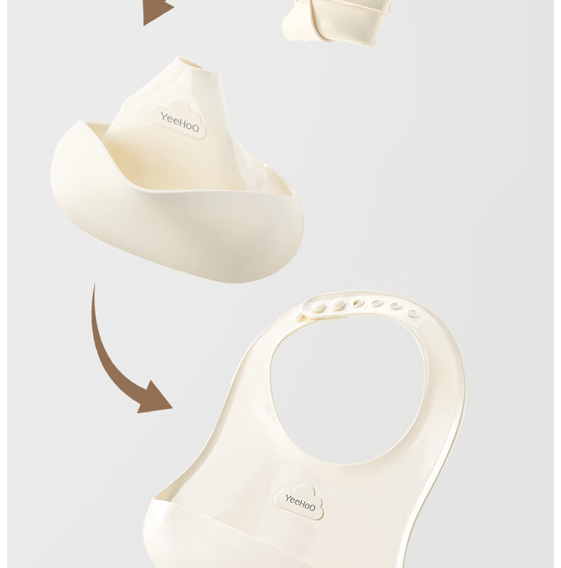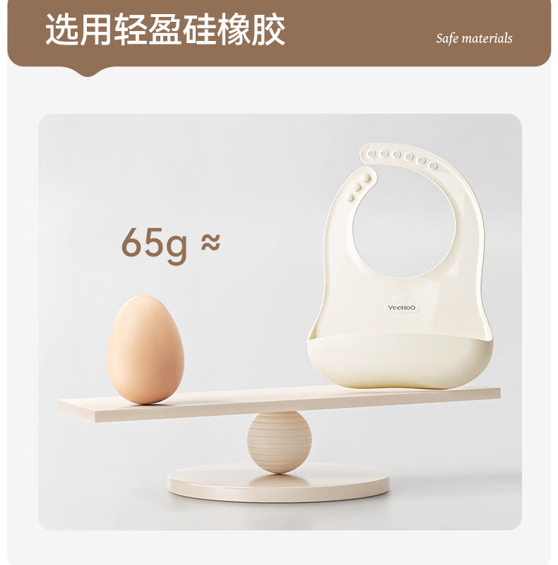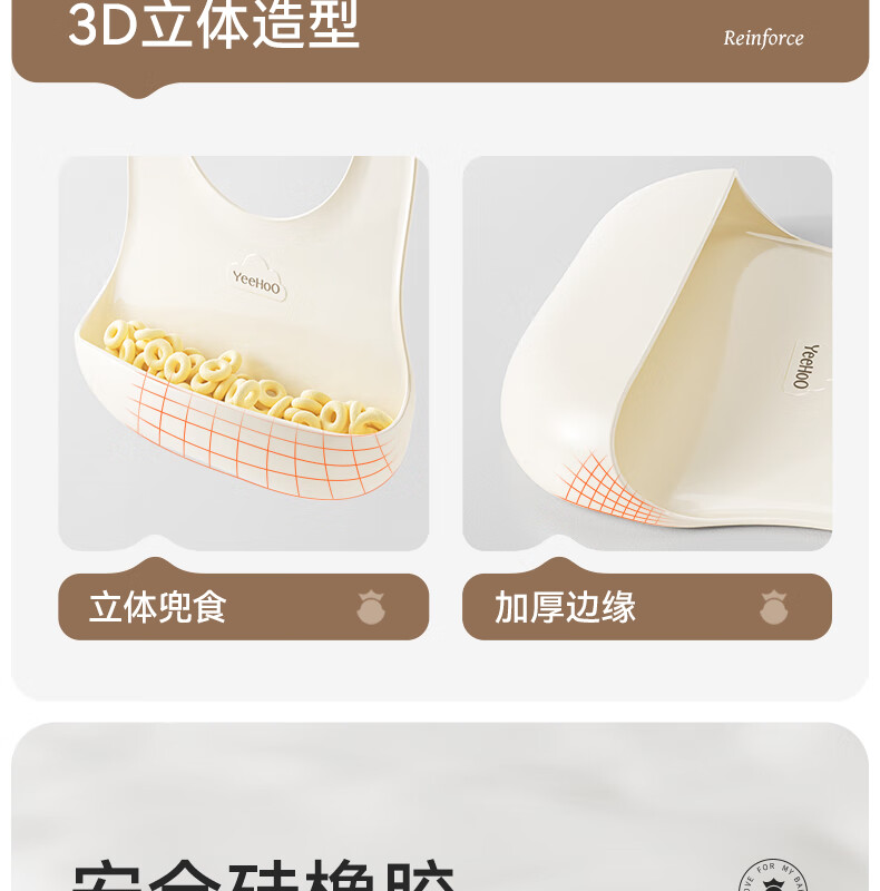 英氏(YEEHOO)宝宝吃饭围兜婴幼儿围嘴辅食饭兜超软硅胶儿童防水防油饭罩衣 奶白色