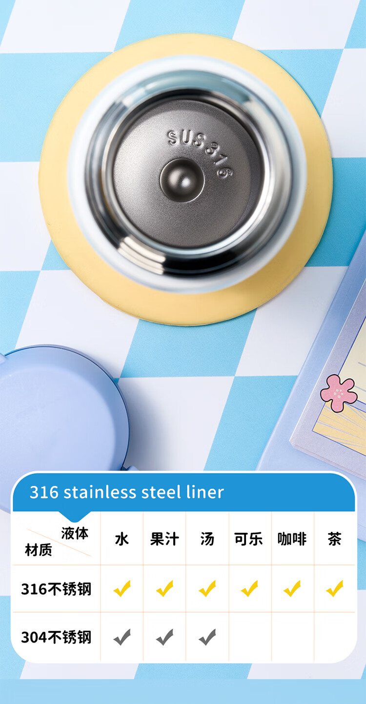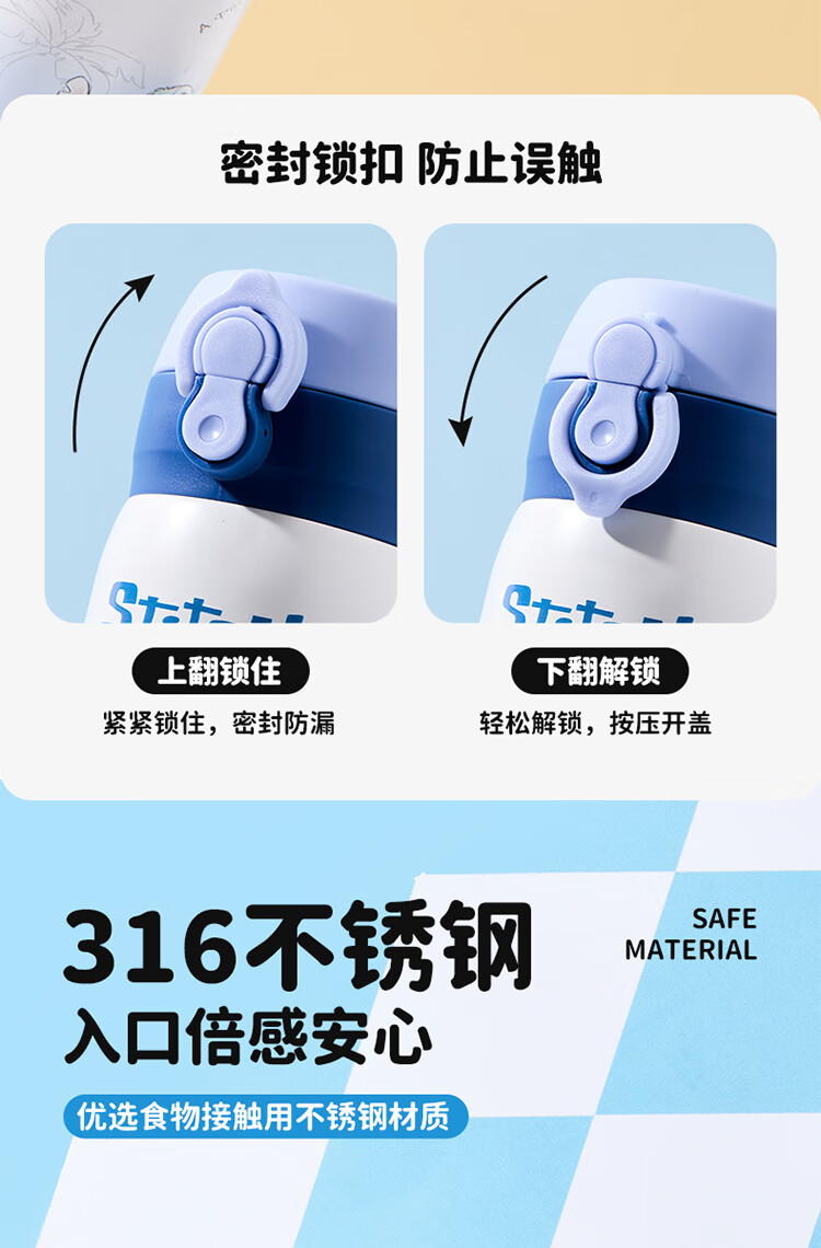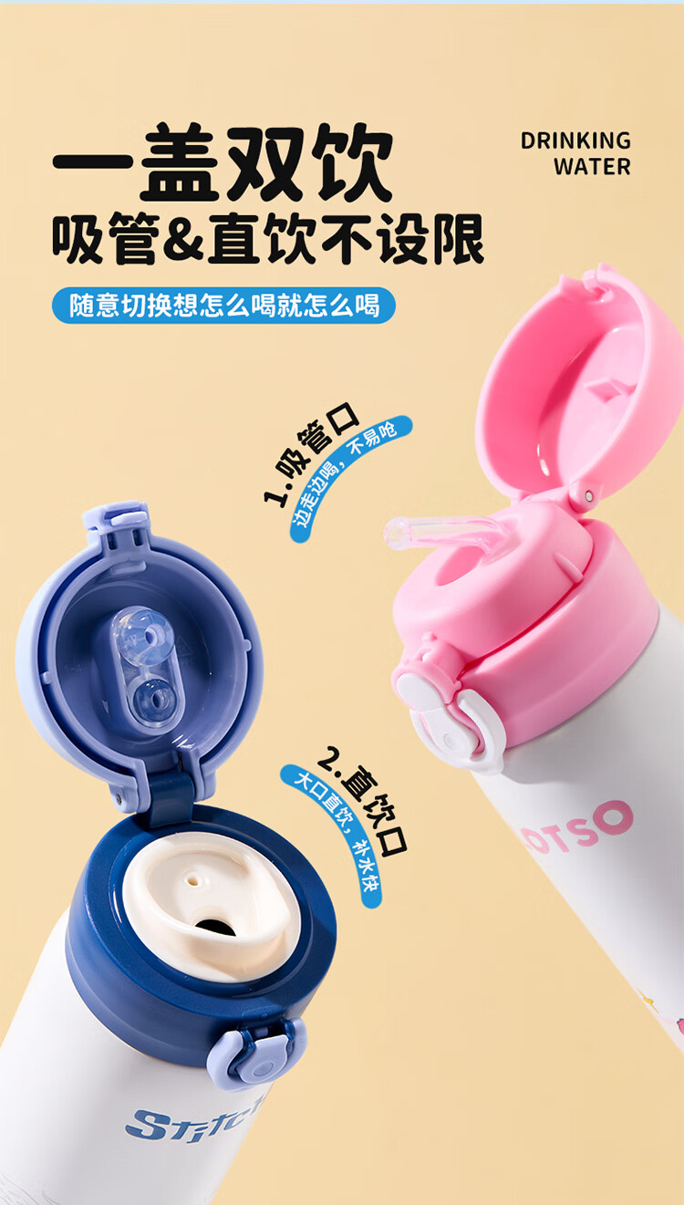 富光儿童保温杯双饮大容量316L不锈钢吸管水杯子上学男女生高颜值礼物 小蒂蓝(一杯双饮)500ml