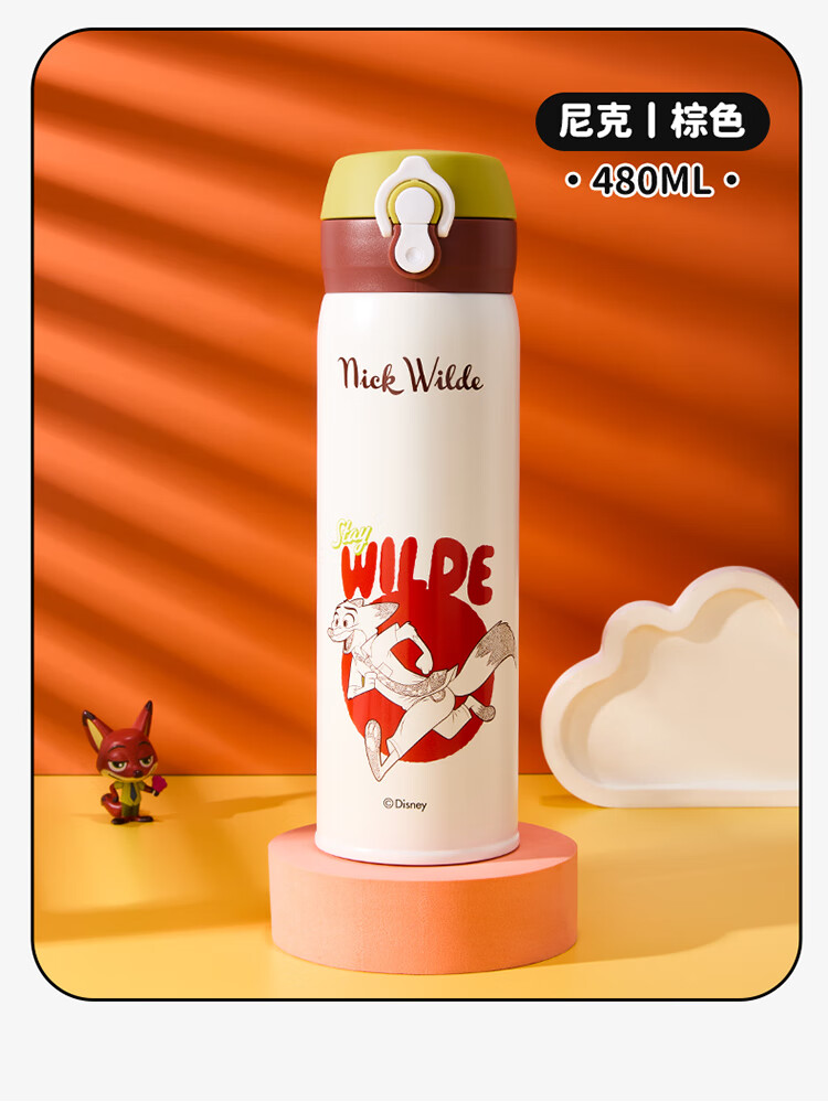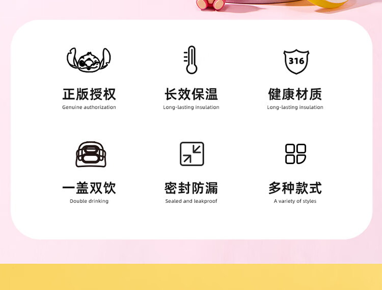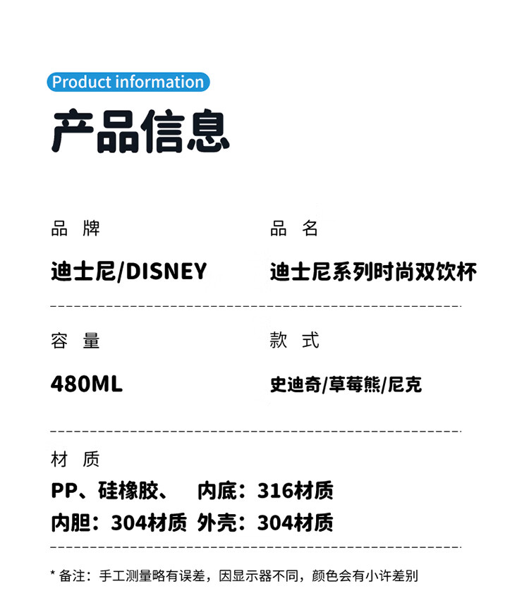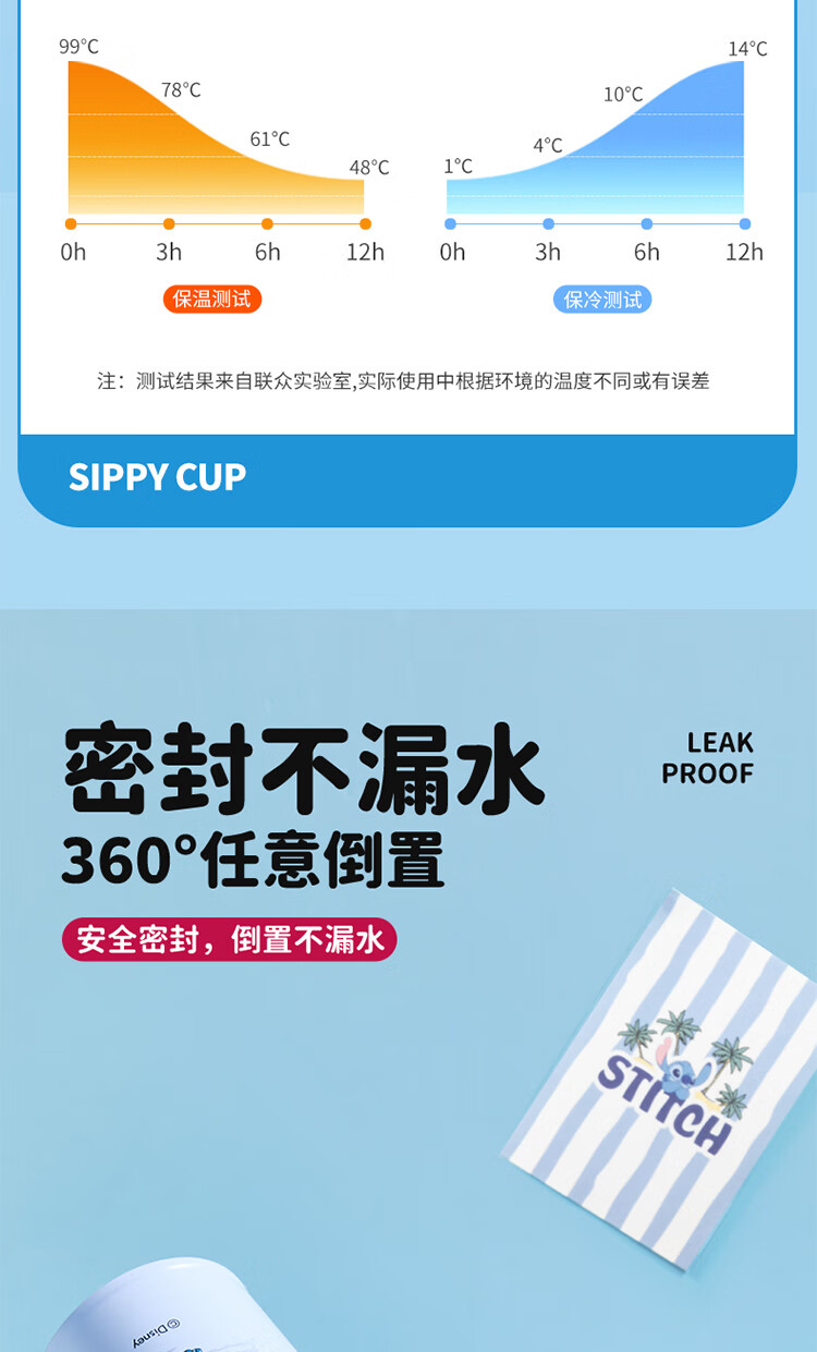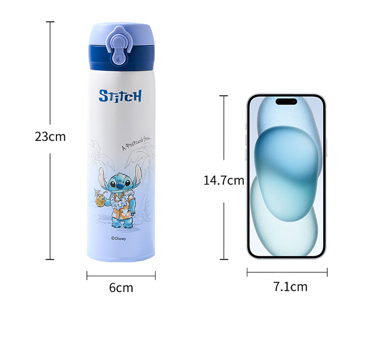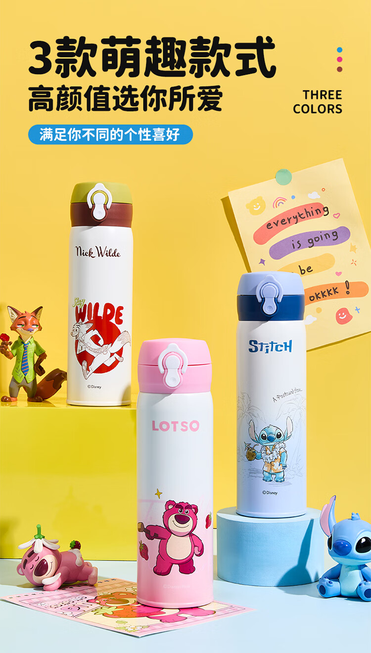 迪士尼(Disney)儿童保温杯可爱高颜值不锈钢双饮杯直饮杯男女小学生上学用水杯 史迪奇双饮杯 480ml