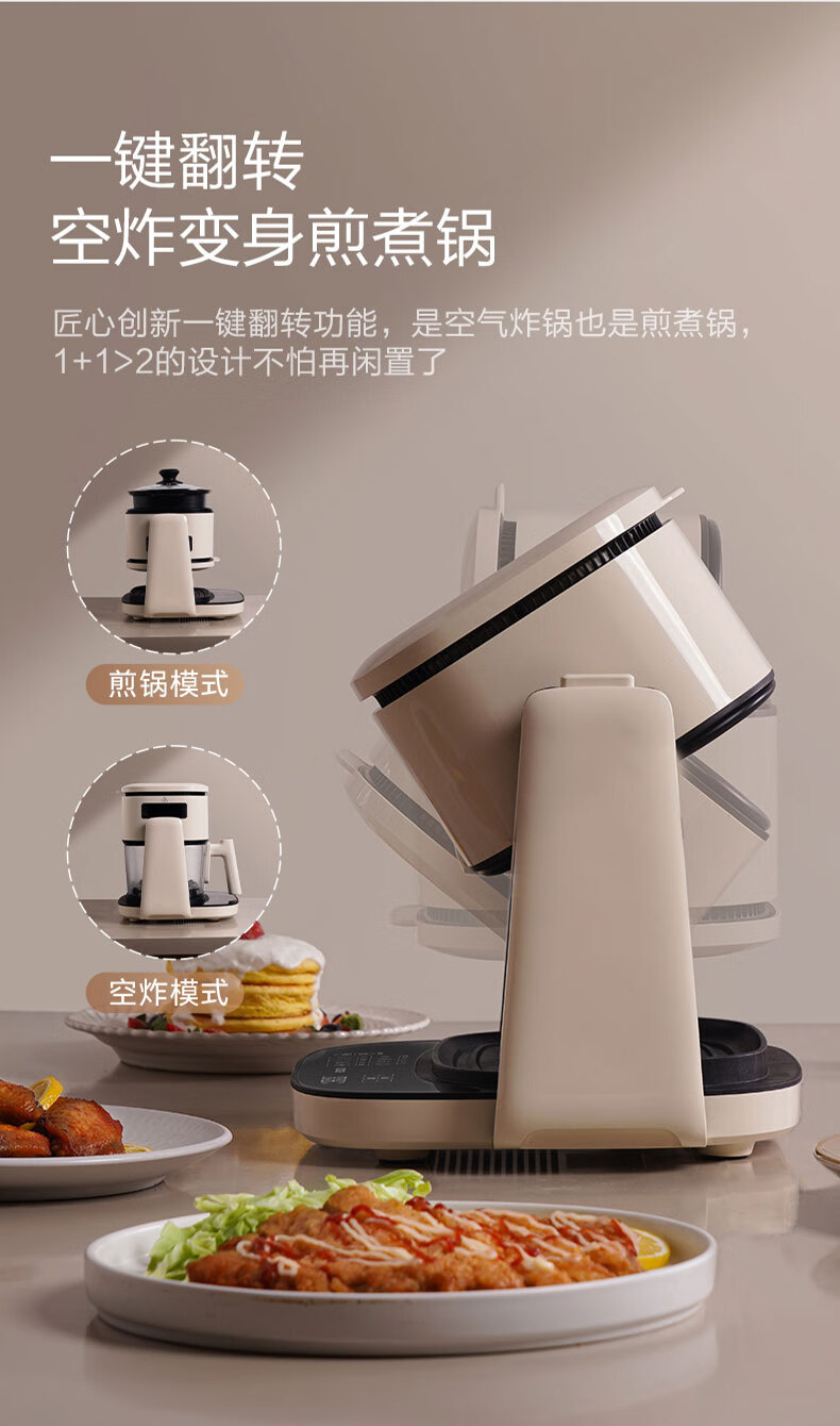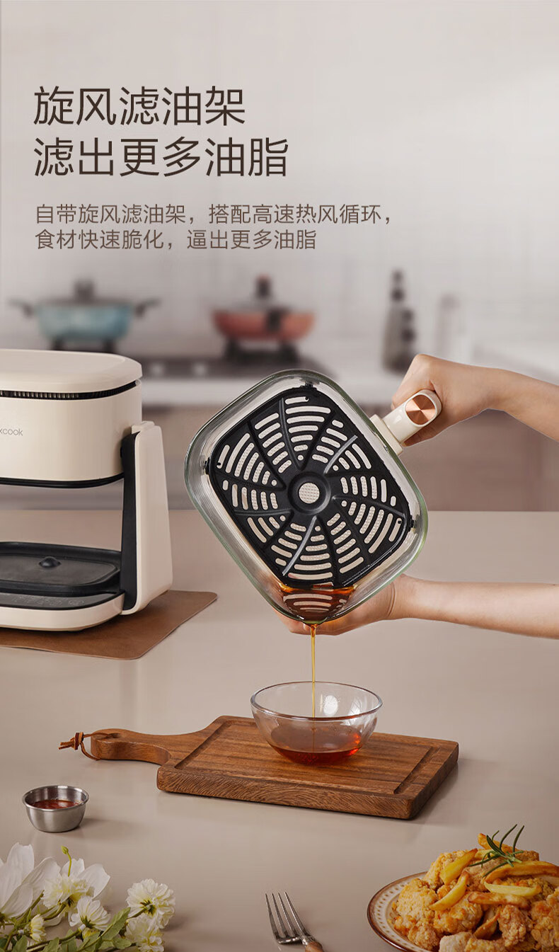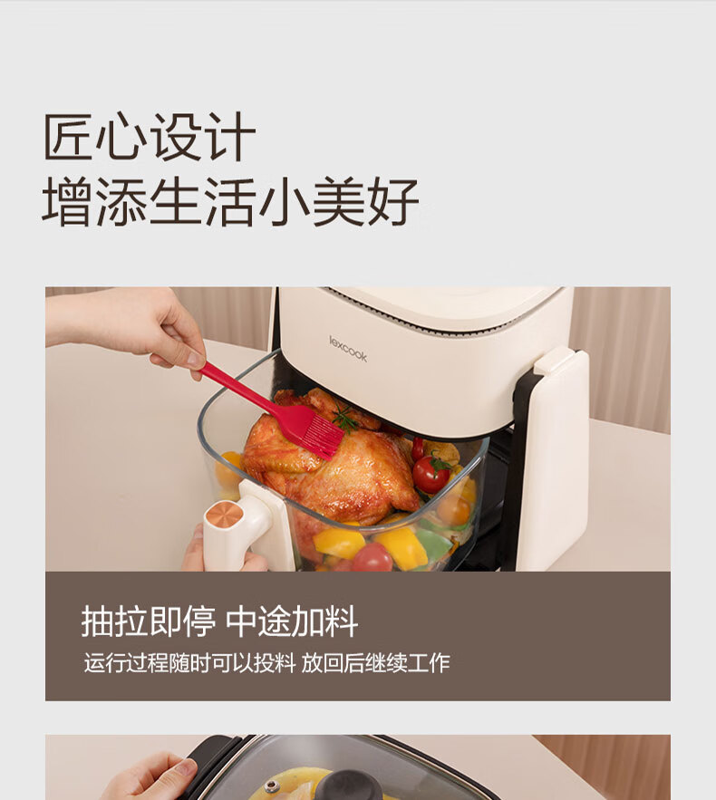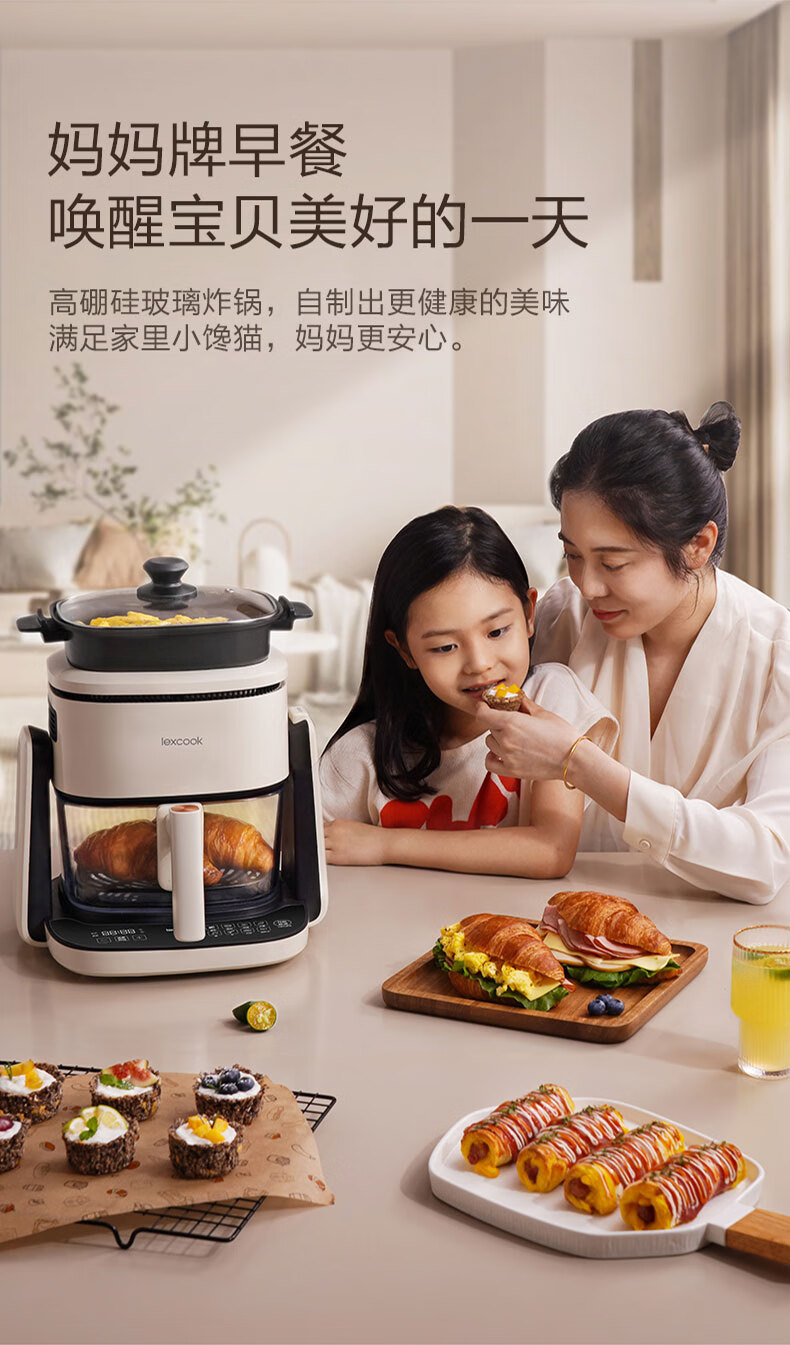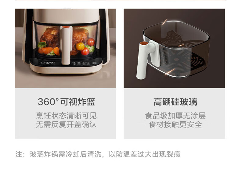 Lexcook空气炸锅家用全自动4L大容量无油低脂电炸锅煎烤一体可翻转透明可视玻璃大功率炸锅 奶白色 4L