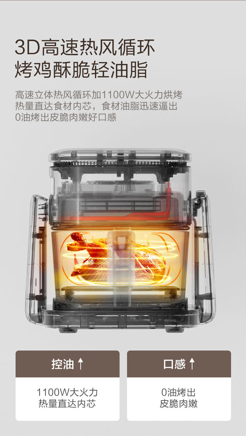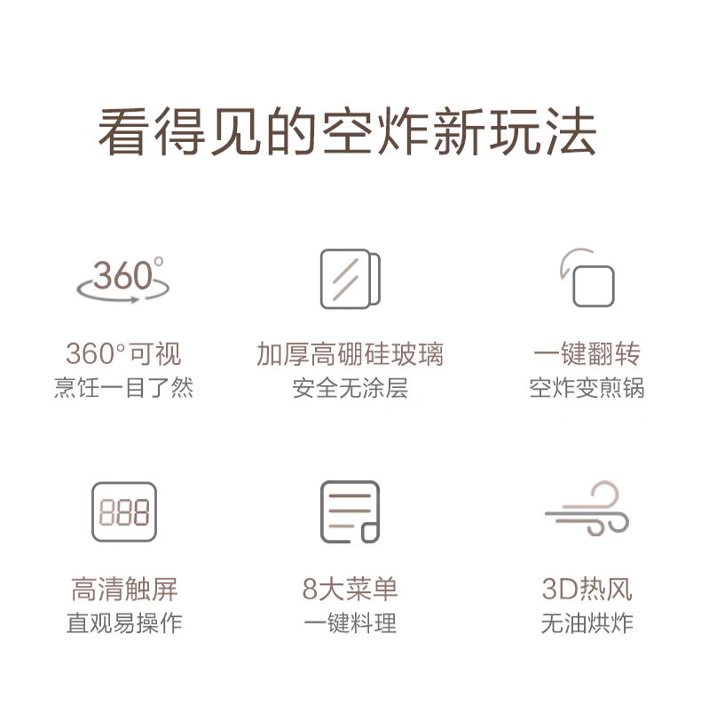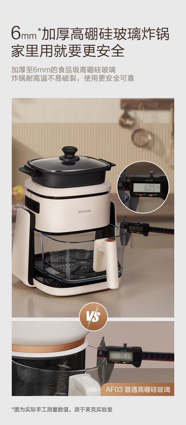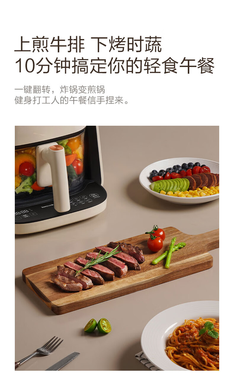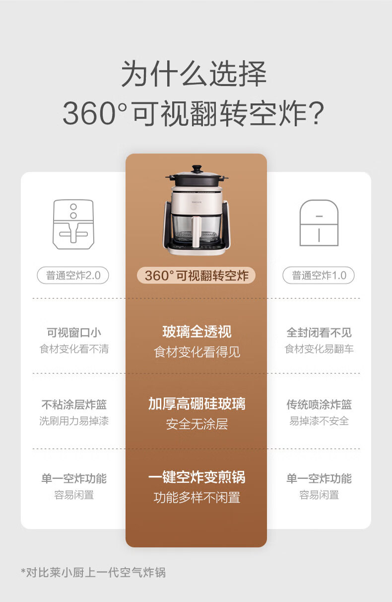 Lexcook空气炸锅家用全自动4L大容量无油低脂电炸锅煎烤一体可翻转透明可视玻璃大功率炸锅 奶白色 4L