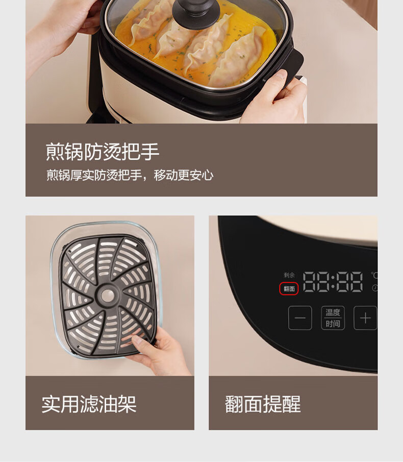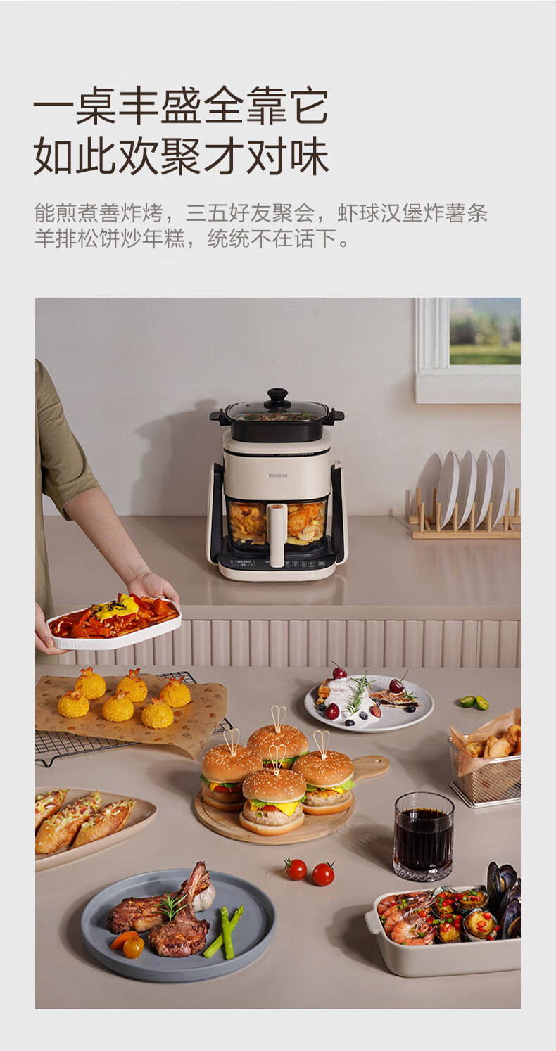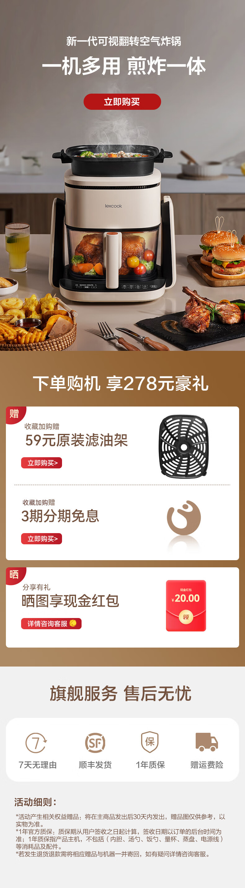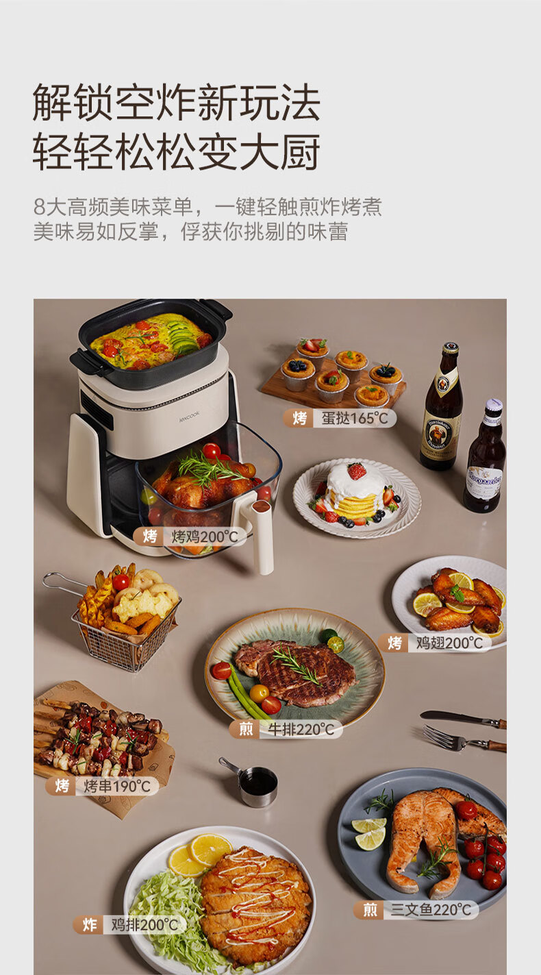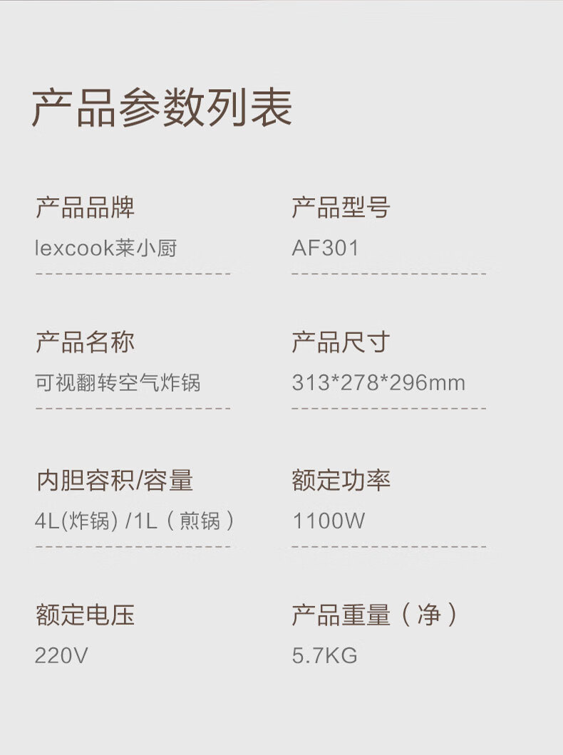 Lexcook空气炸锅家用全自动4L大容量无油低脂电炸锅煎烤一体可翻转透明可视玻璃大功率炸锅 奶白色 4L