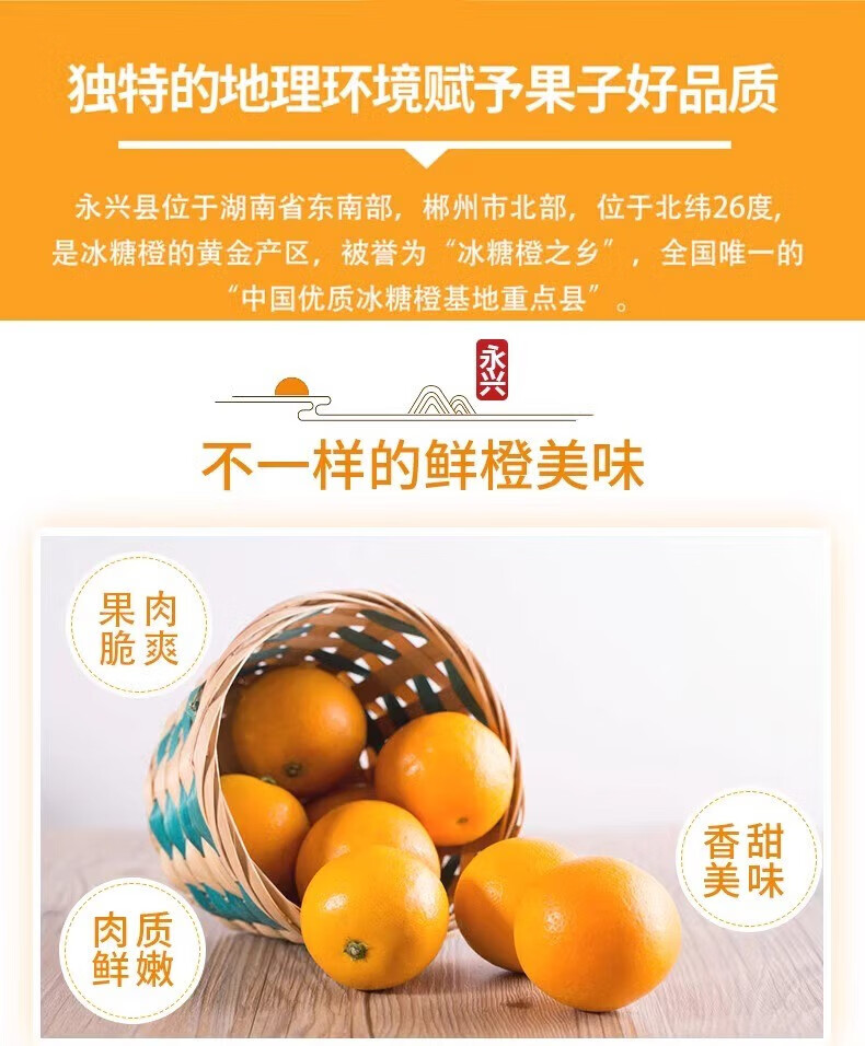 正宗湖南永兴冰糖橙 现摘新鲜橙子当季水果手剥甜橙应季脐橙大果 10斤带箱中果(60mm-65mm) | 礼盒装