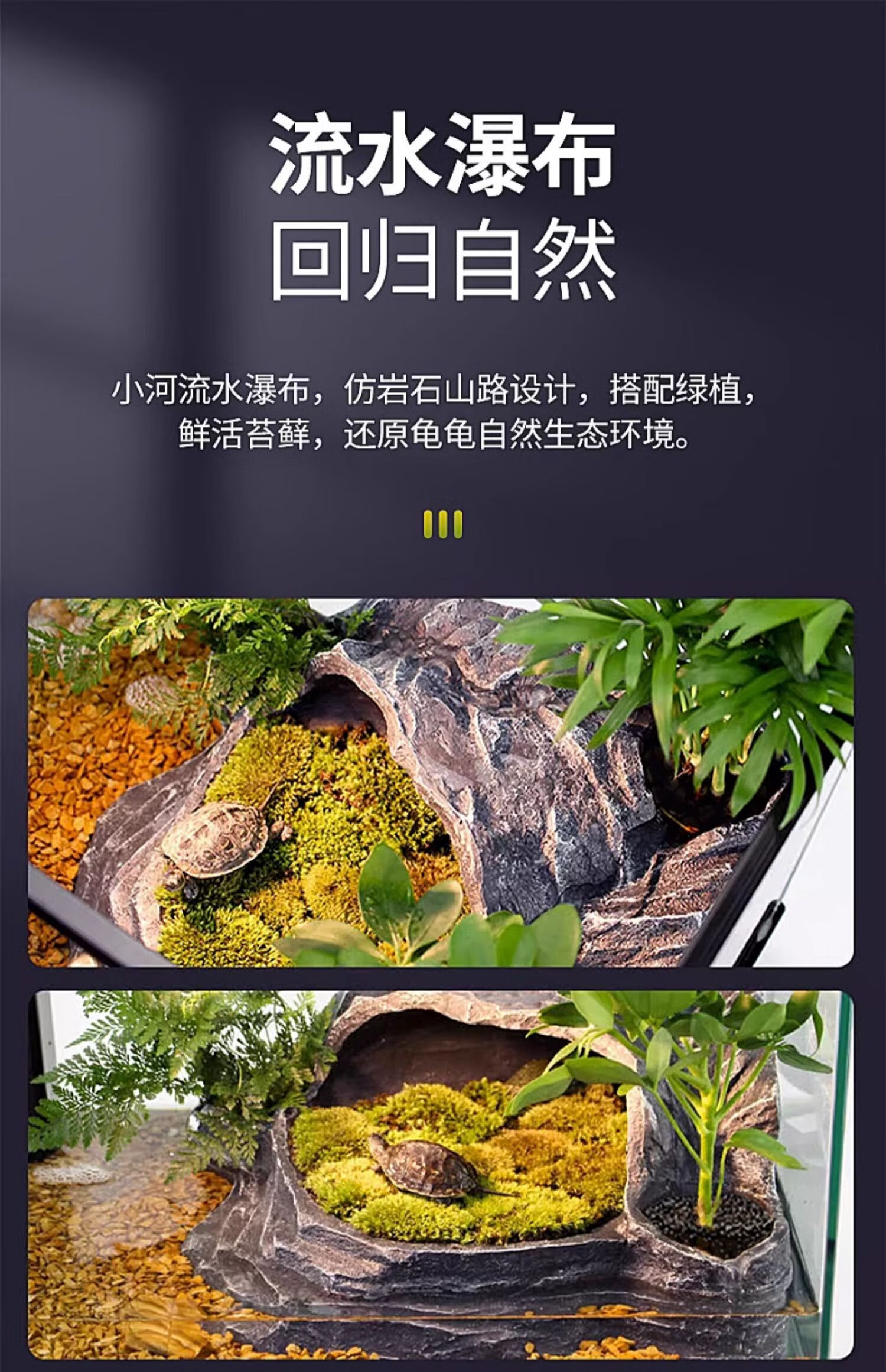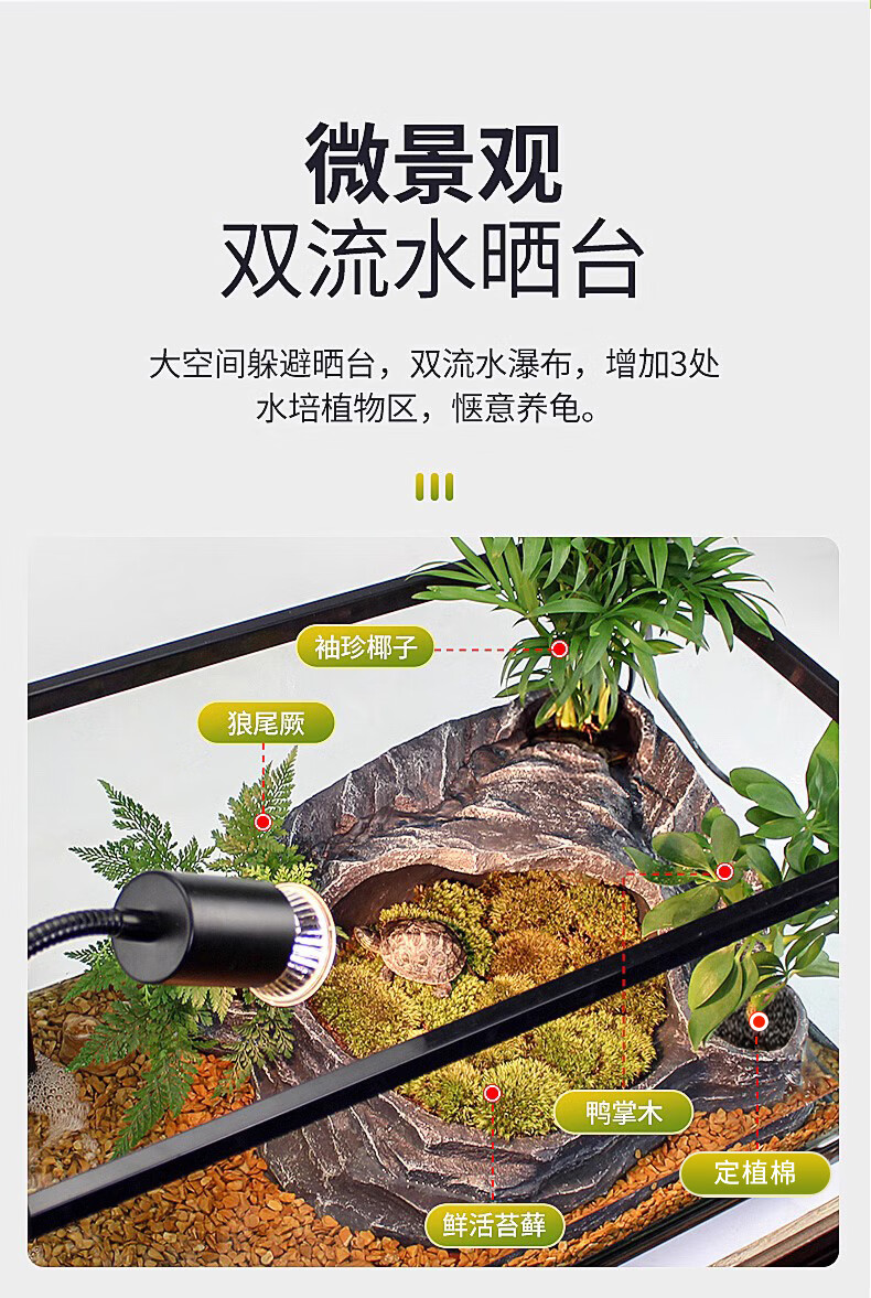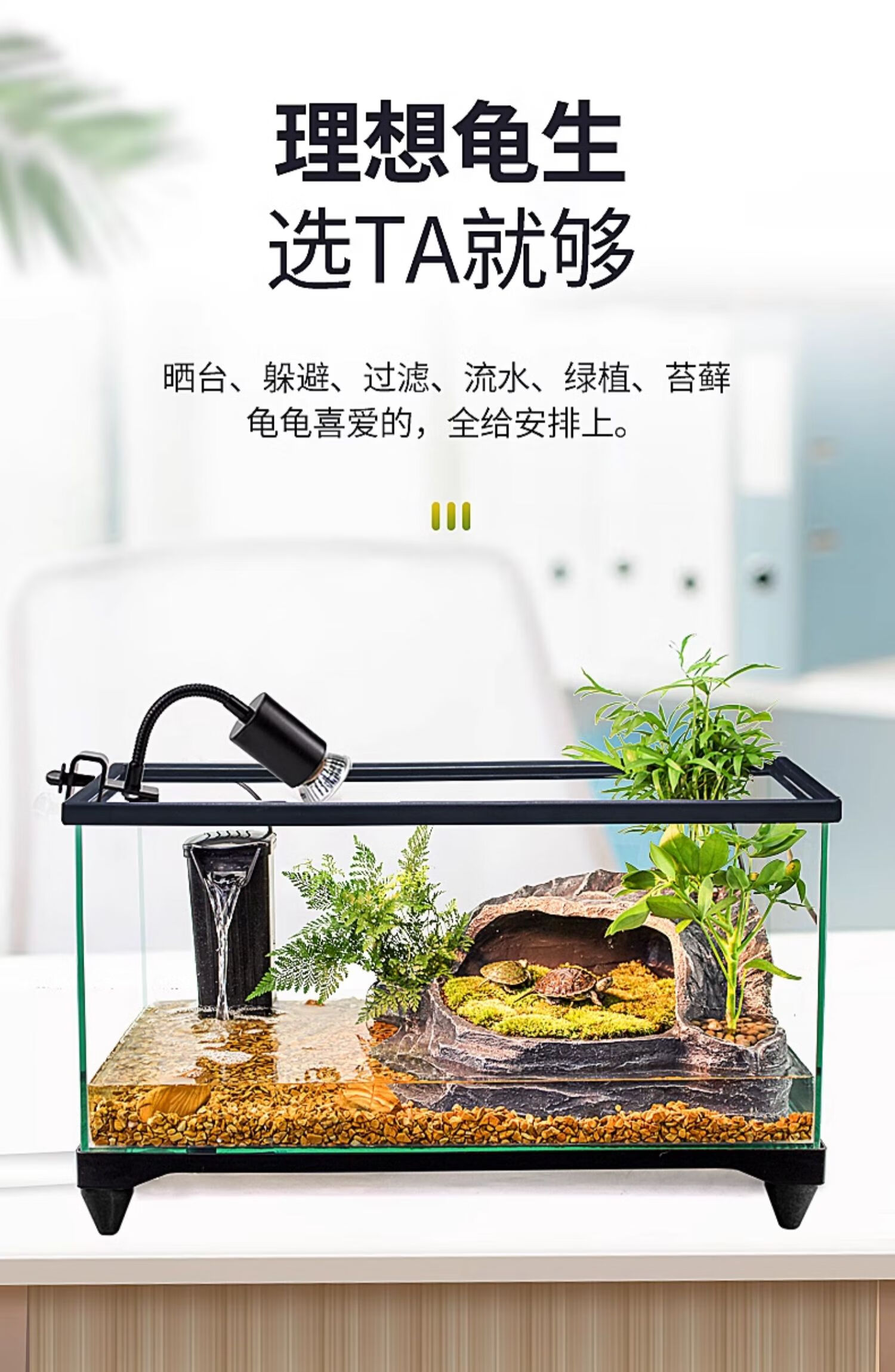 爬将军 乌龟缸特大号 玻璃造景晒台草龟大型养龟箱盆别墅家用生态龟缸 30cm缸【餐三】双流水晒台13件套