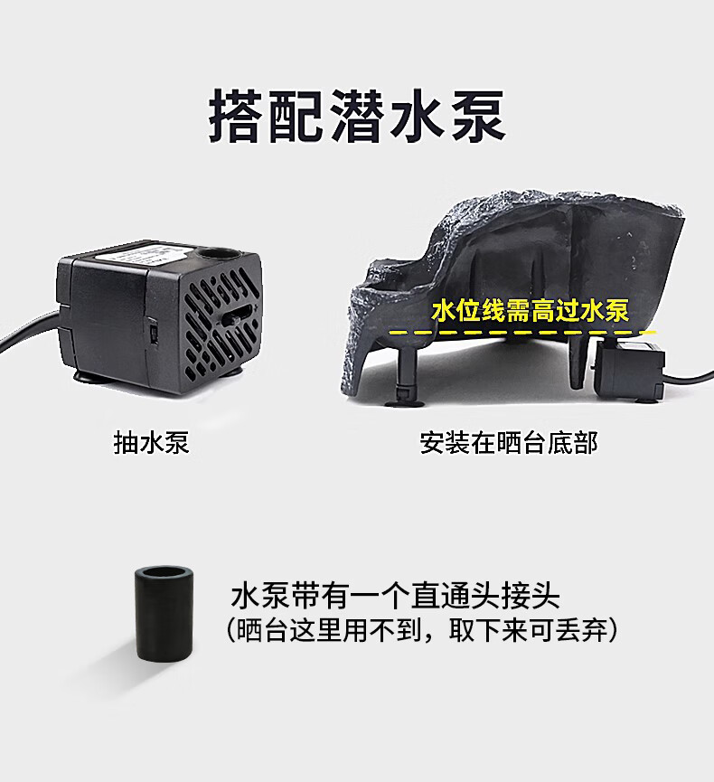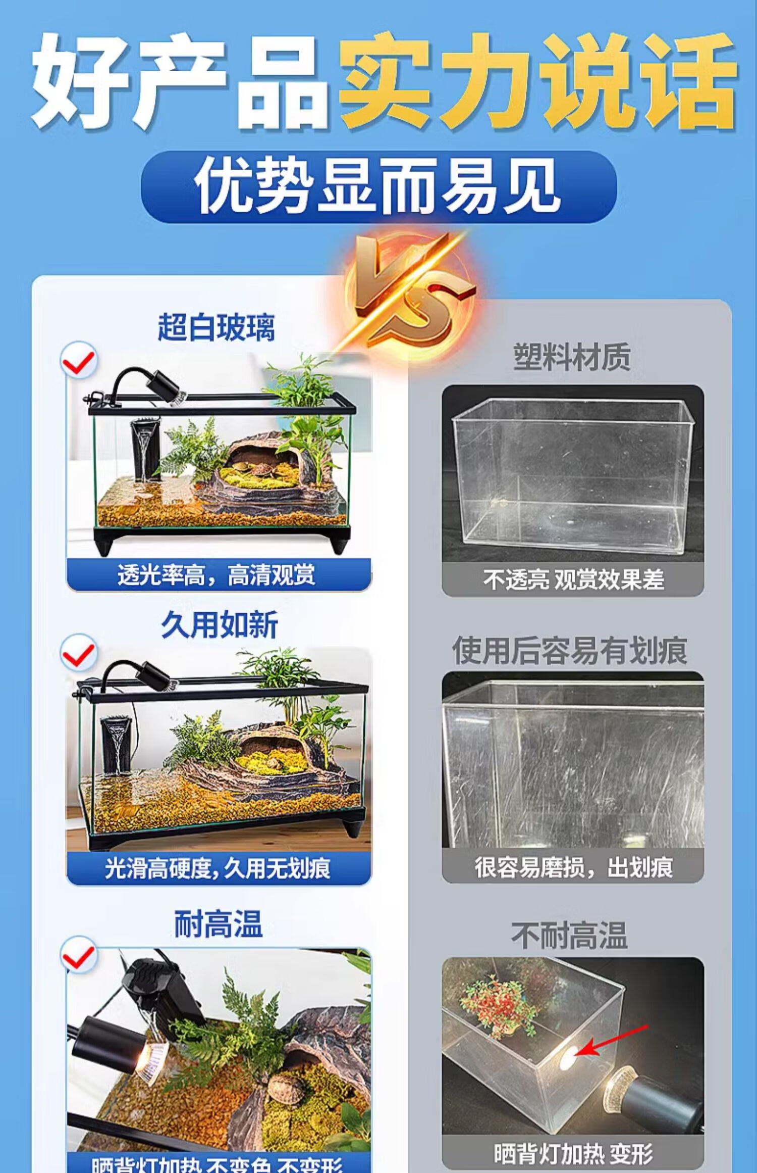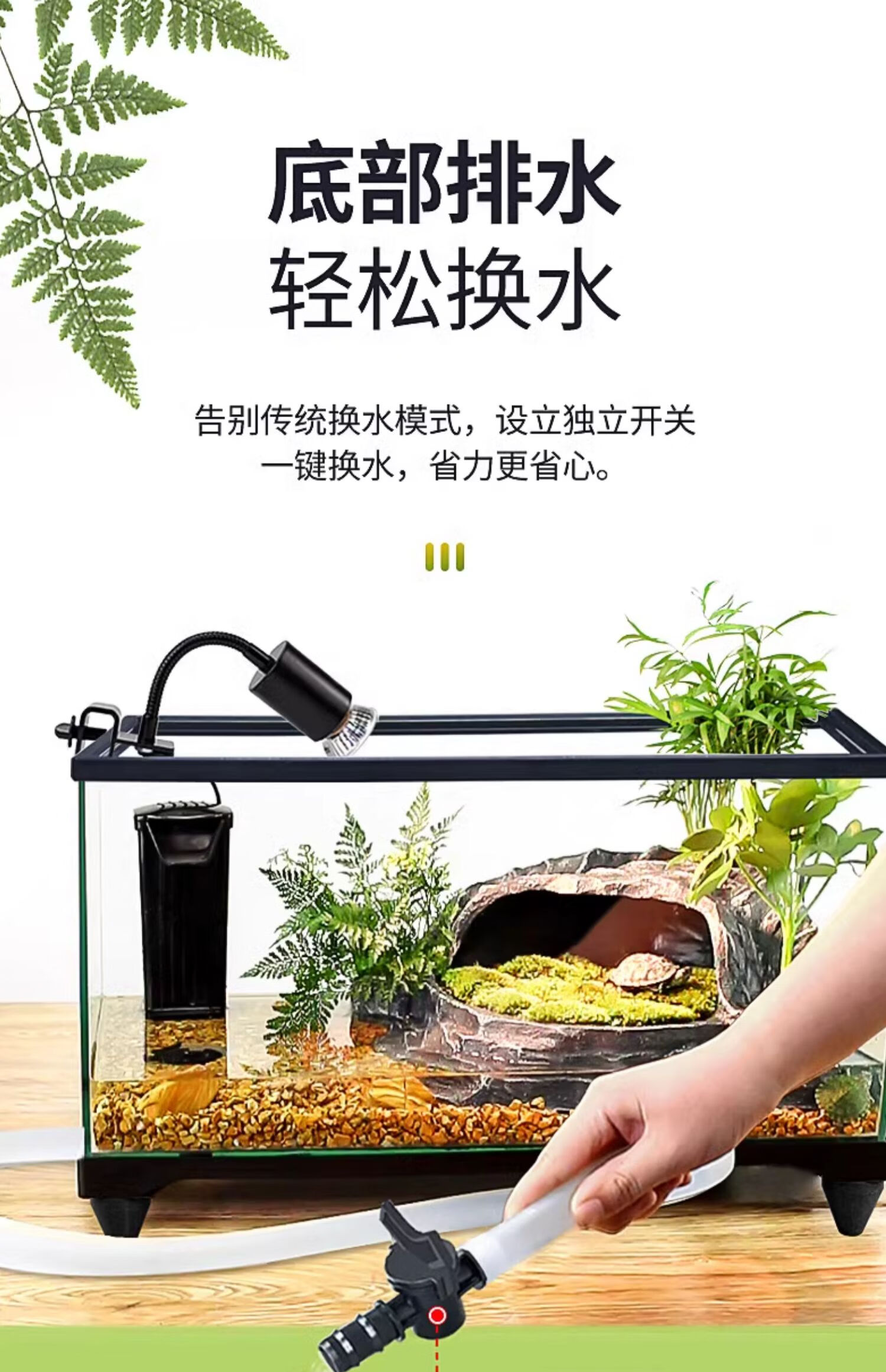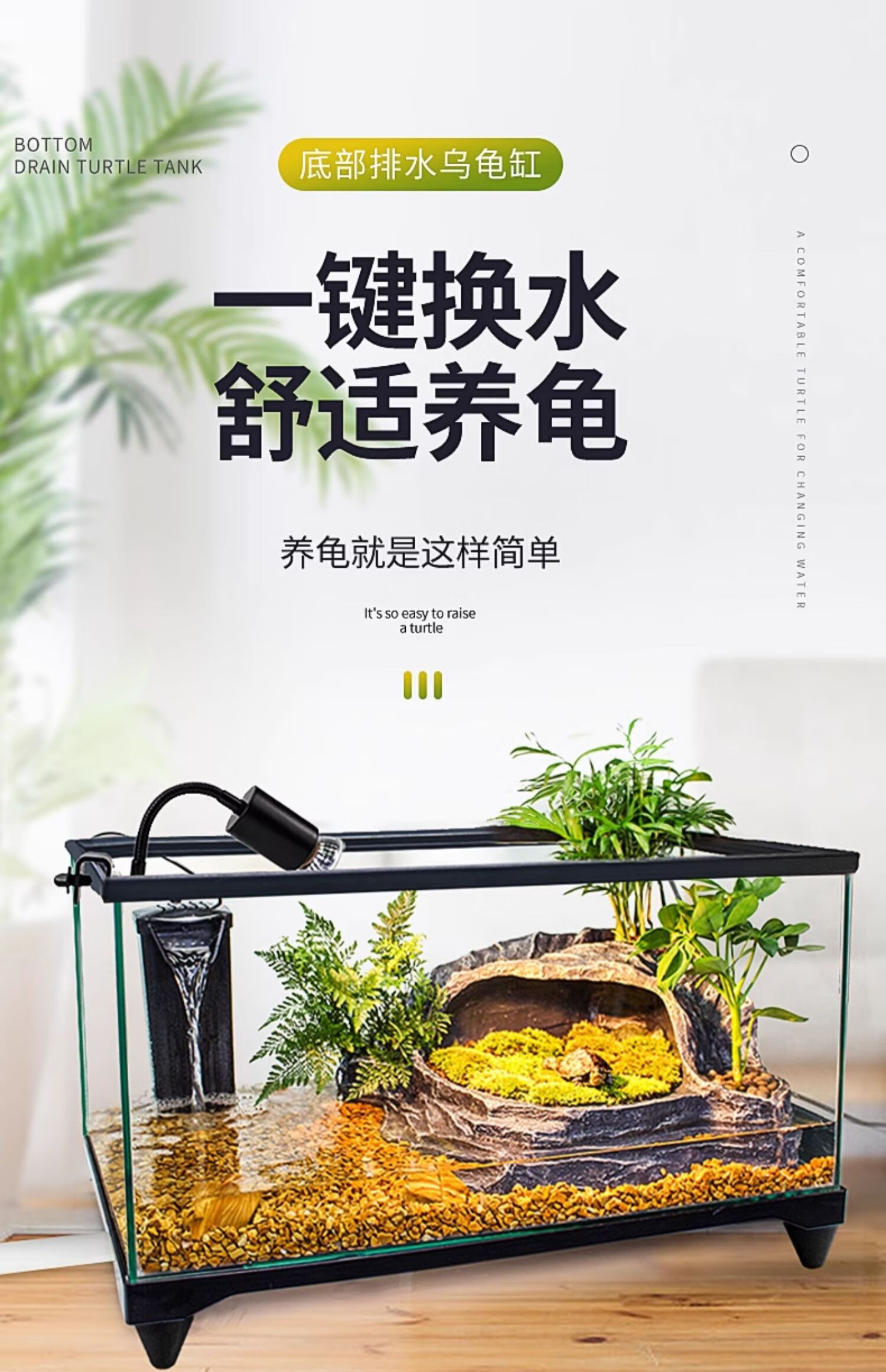 爬将军 乌龟缸特大号 玻璃造景晒台草龟大型养龟箱盆别墅家用生态龟缸 30cm缸【餐三】双流水晒台13件套