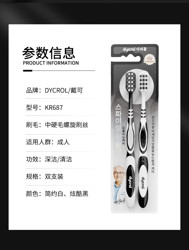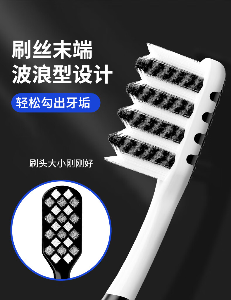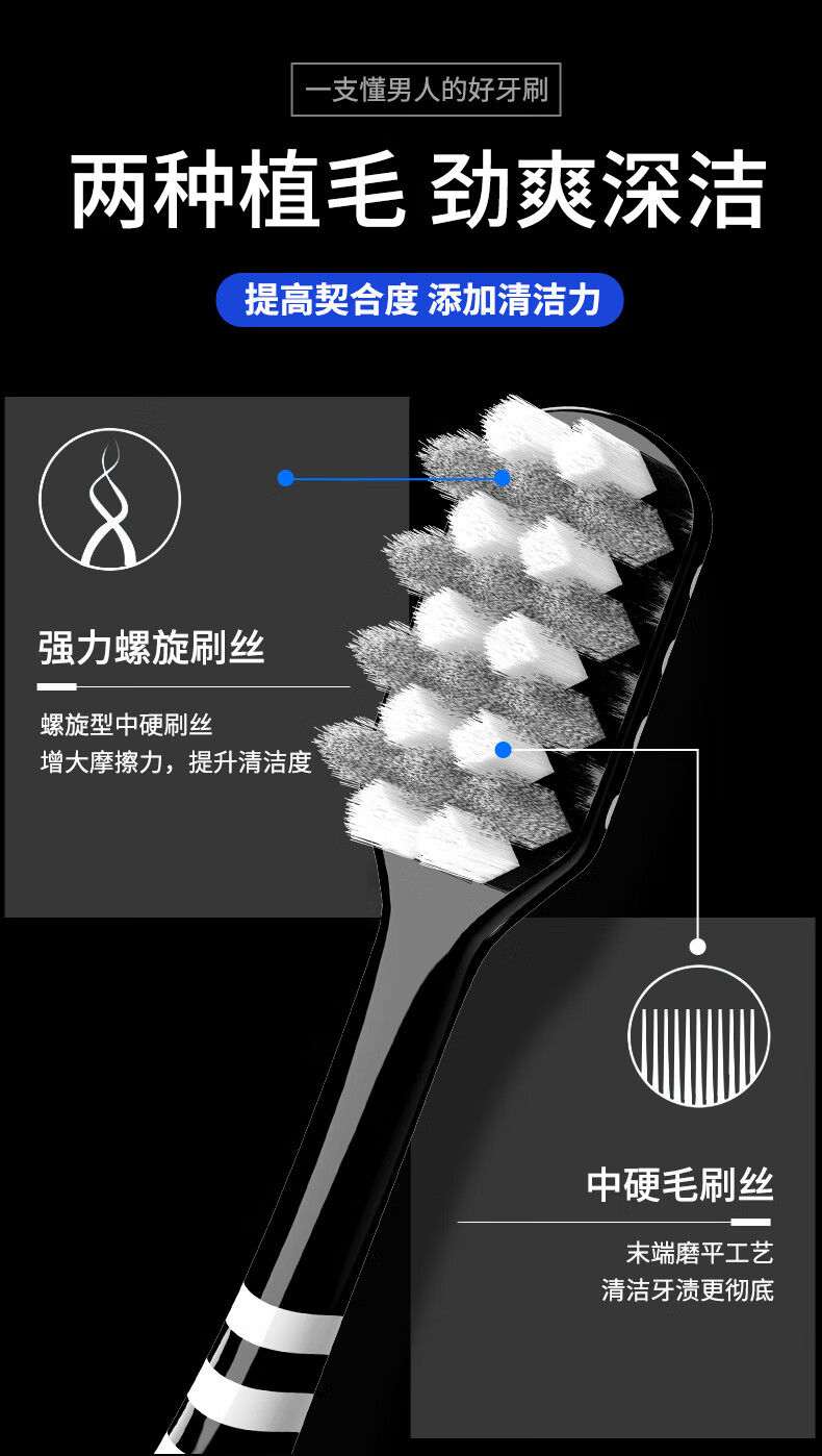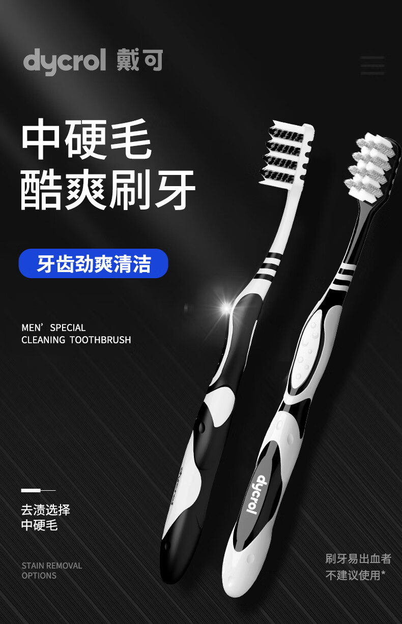 戴可男士中硬毛牙刷黑科技去烟渍去牙垢成人清洁口腔家庭装硬毛牙刷 男士牙刷强力去渍3卡 6支