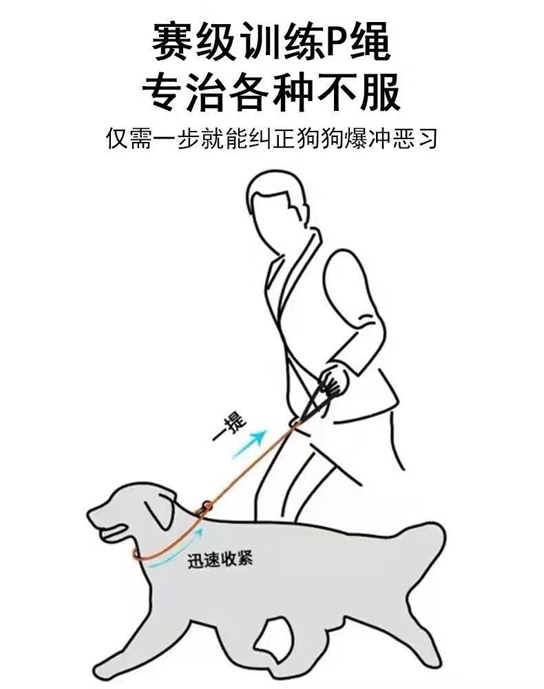 牵引赛级P绳一体式训犬遛狗通用纠正不良行为解决防爆冲防打结 黑色标准1.8米