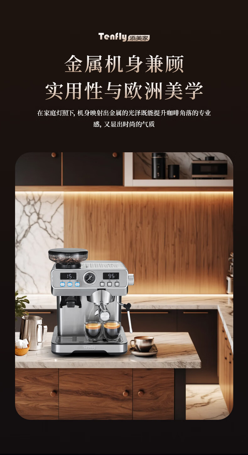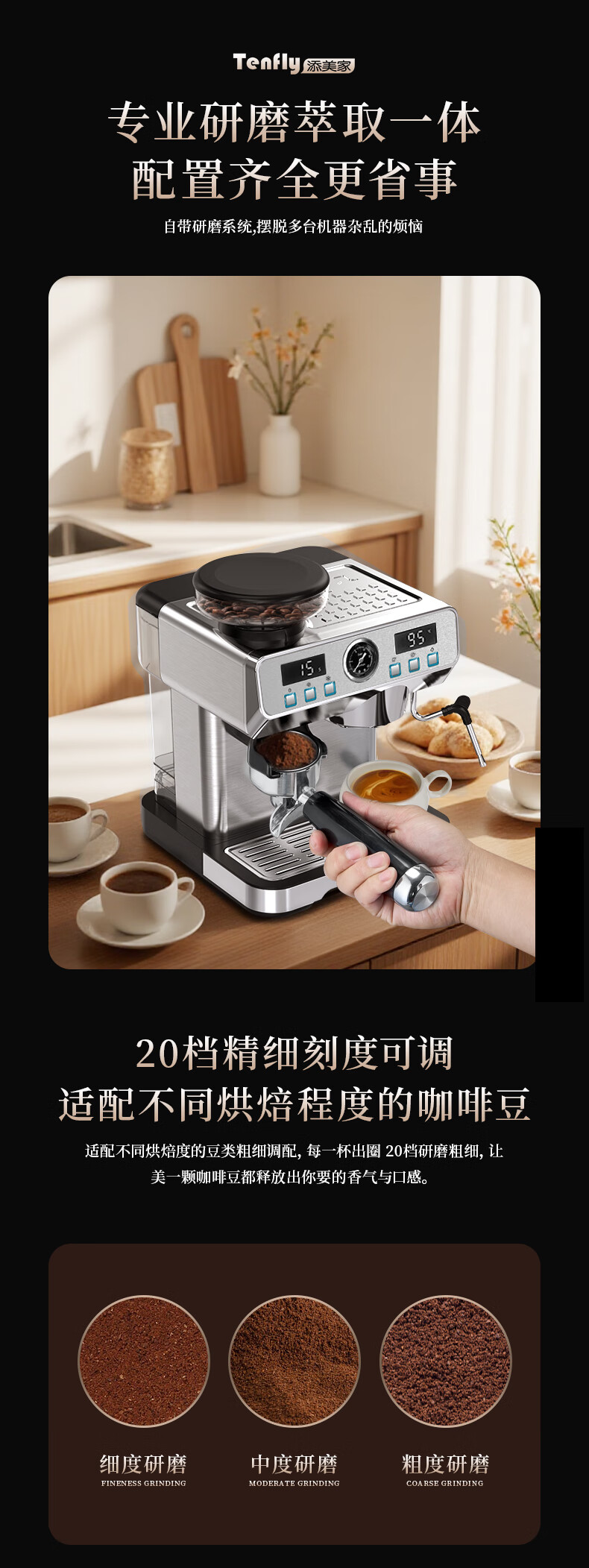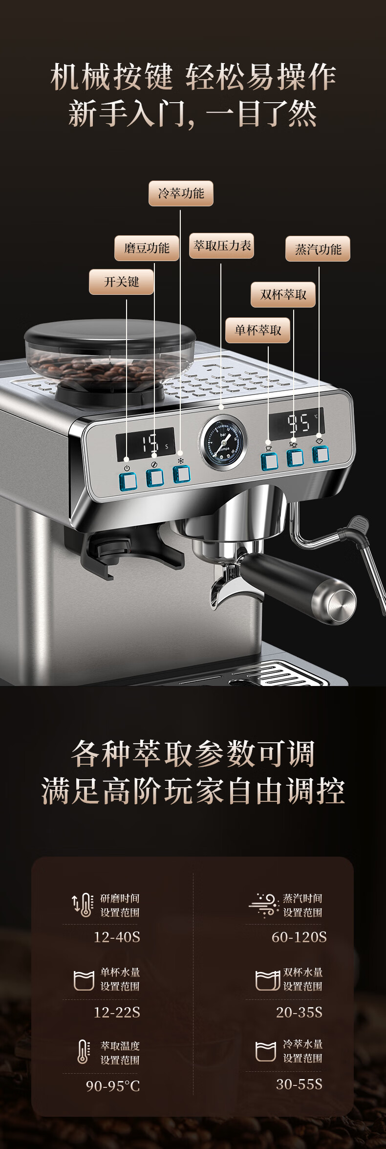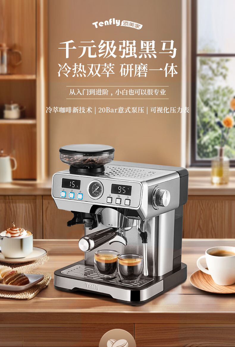 Tenfly添美家冷萃咖啡机冷热双萃研磨一体机意式家用小型半自动泄压蒸汽 黑马冷热双萃研磨一体
