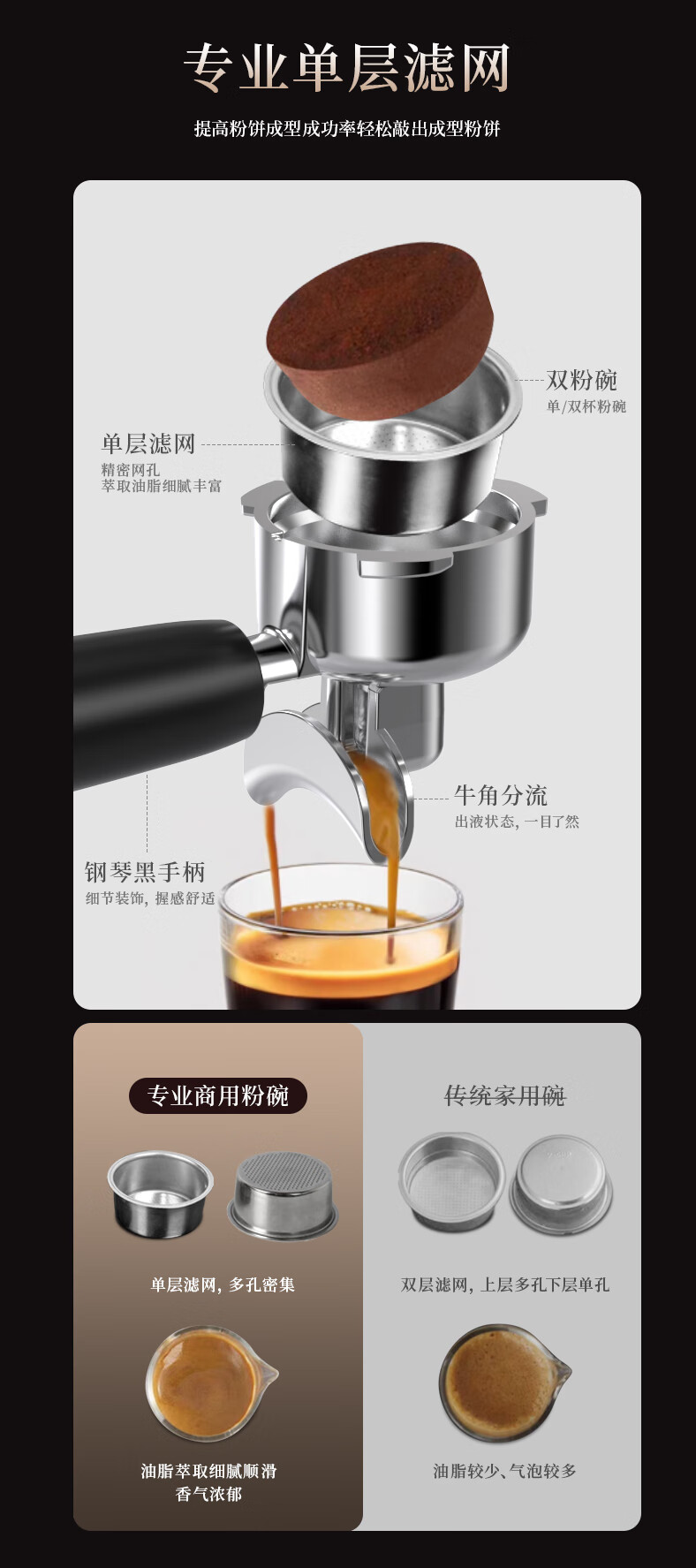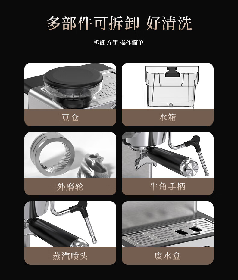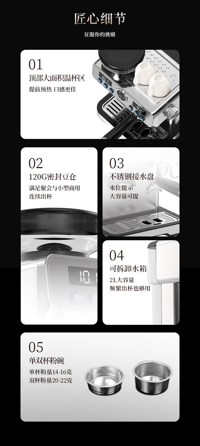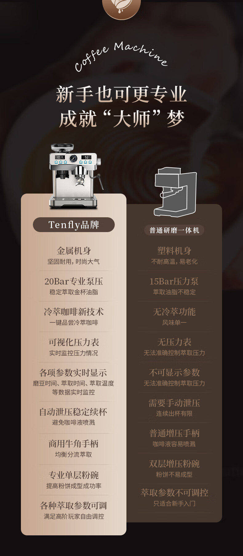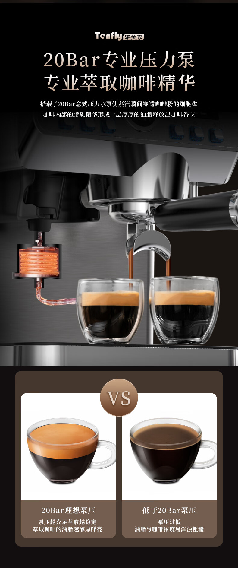Tenfly添美家冷萃咖啡机冷热双萃研磨一体机意式家用小型半自动泄压蒸汽 黑马冷热双萃研磨一体
