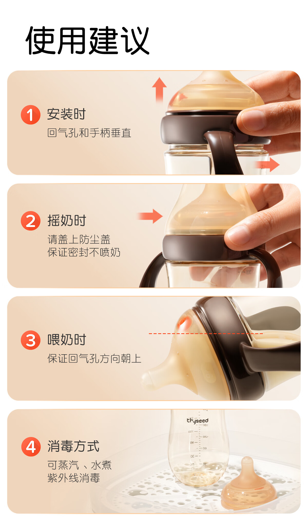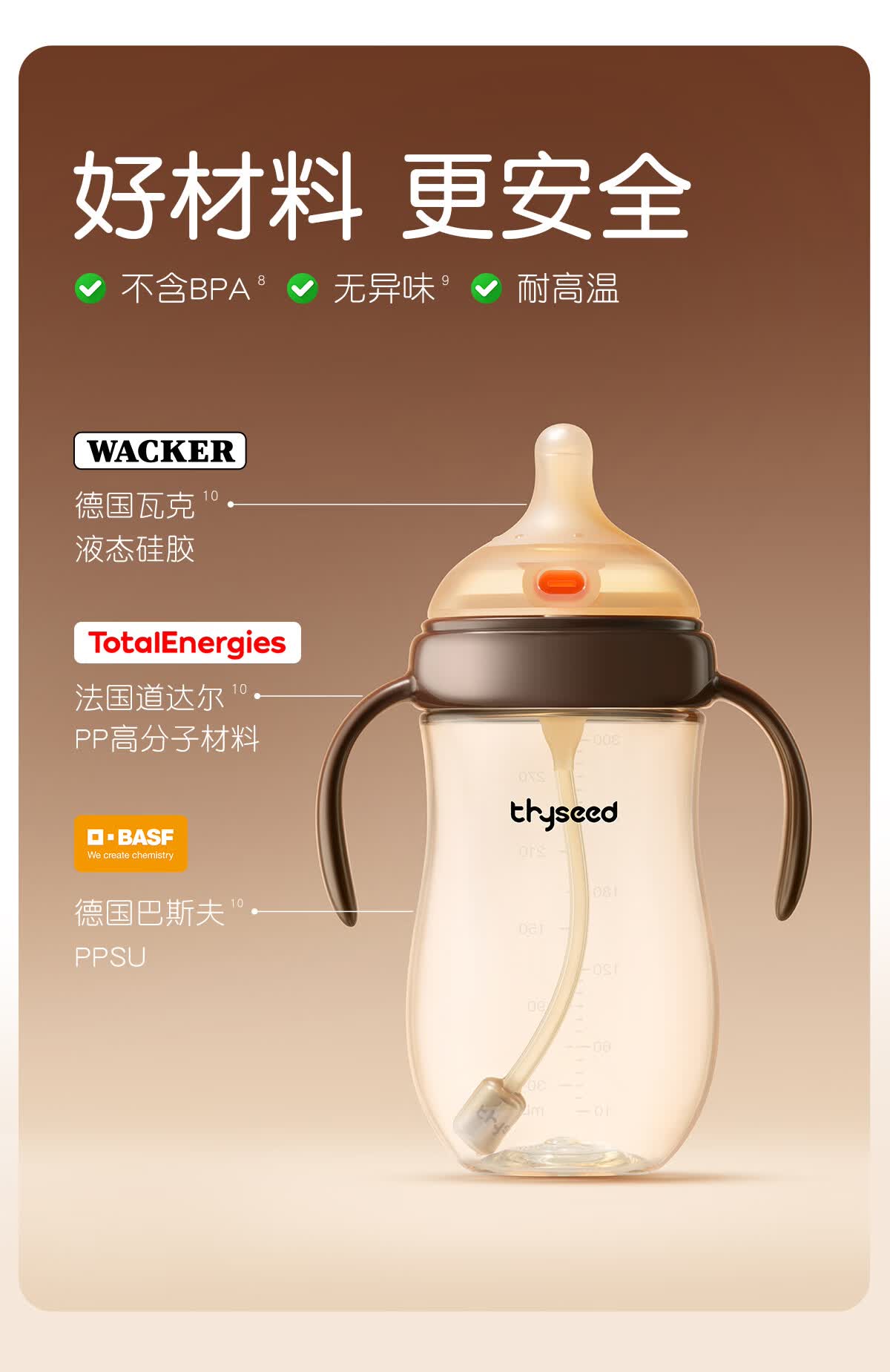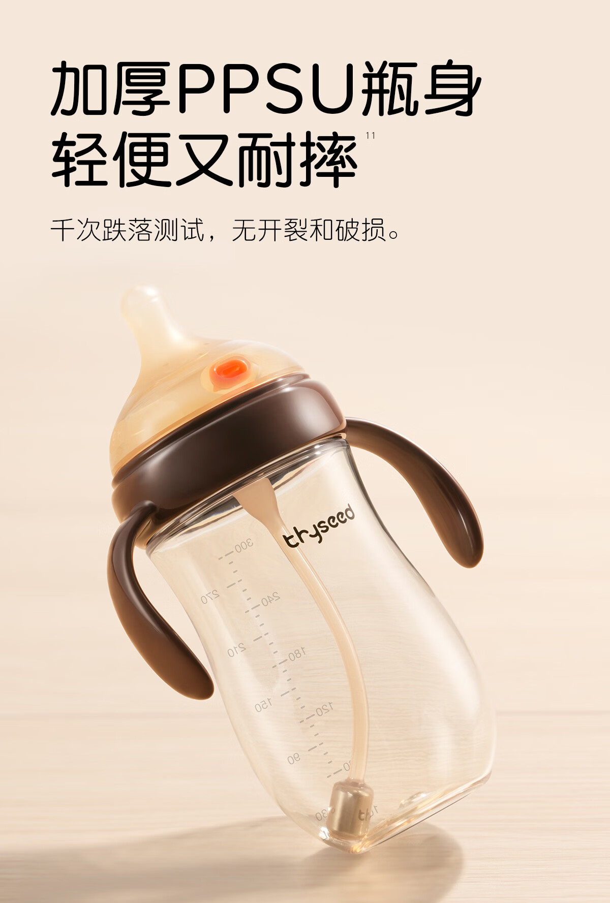 世喜奶瓶9个月以上大宝宝ppsu仿母乳奶嘴300ml带重力球手柄