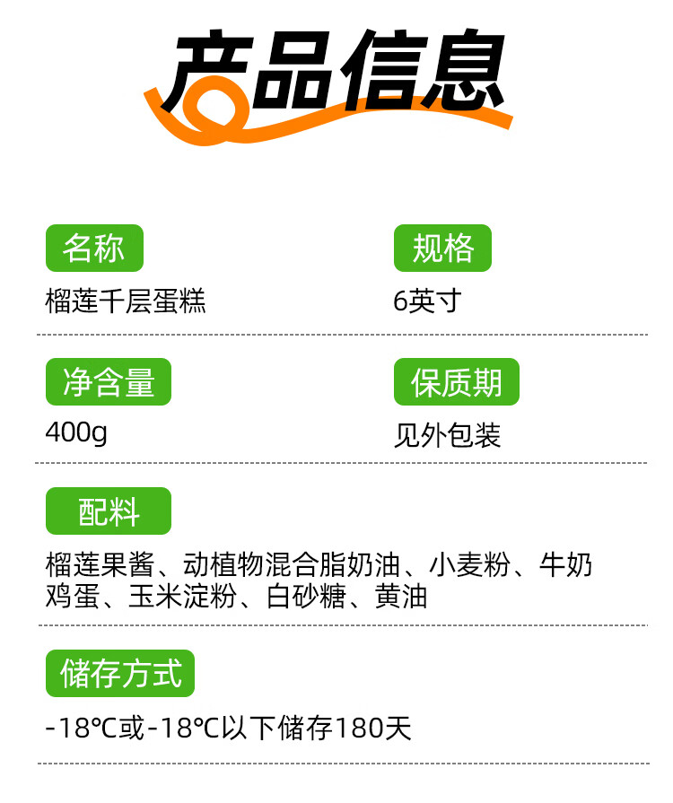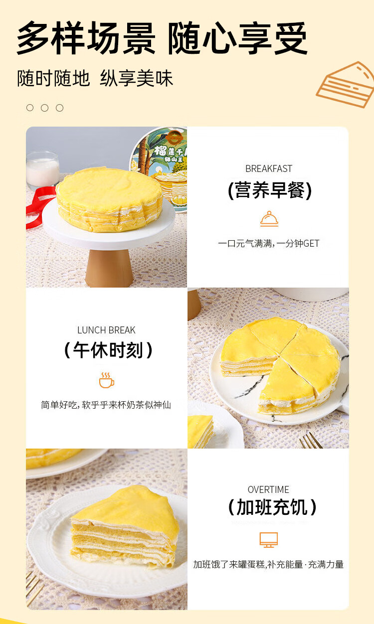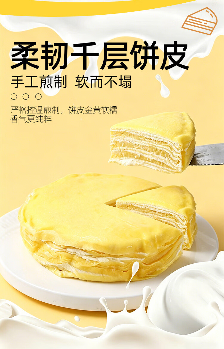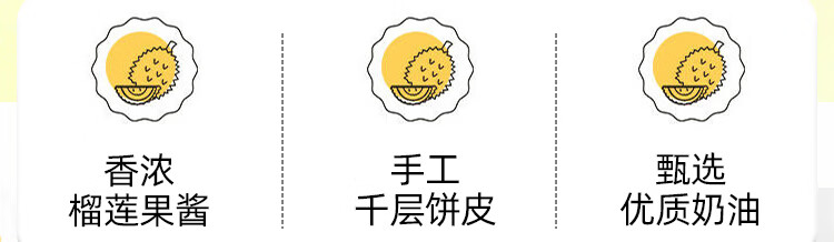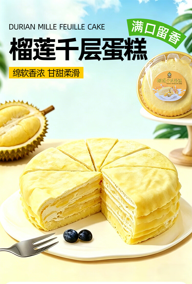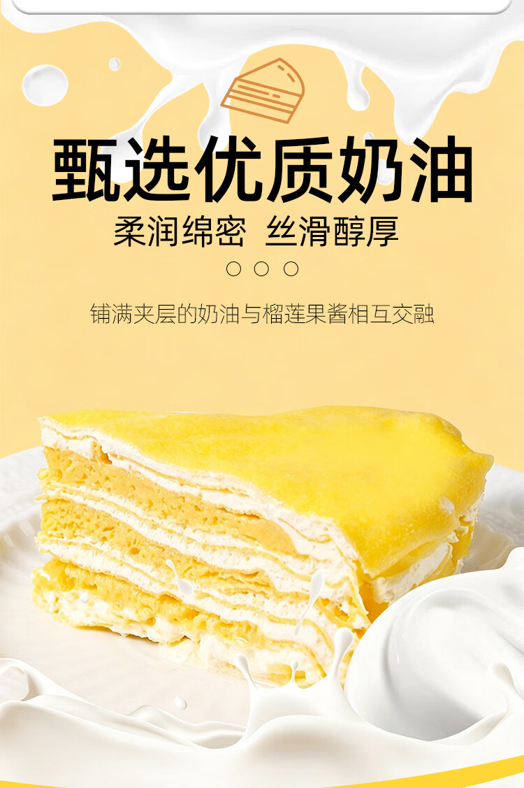 新鲜榴莲千层榴莲果肉泰国金枕榴莲千层蛋糕甜品下午茶休闲零食 新鲜金枕6寸榴莲千层400/盒*3