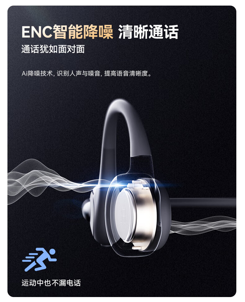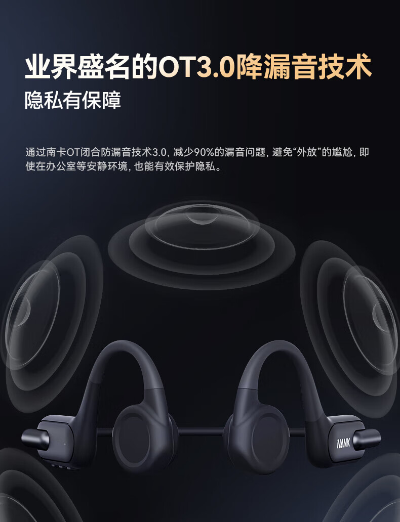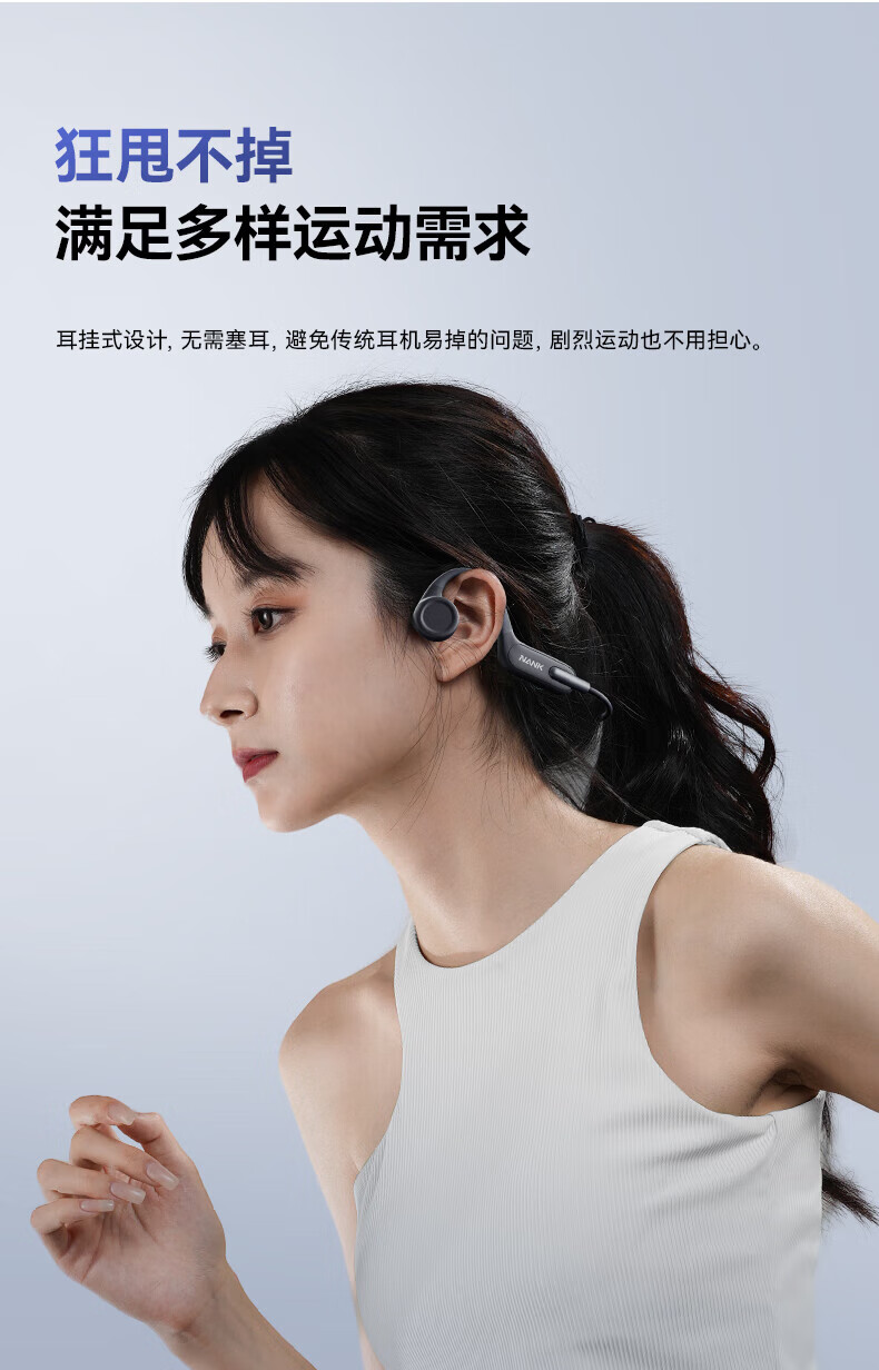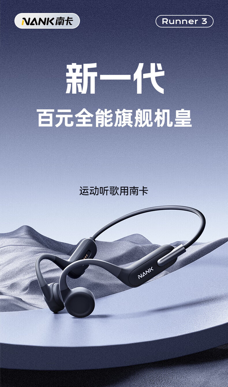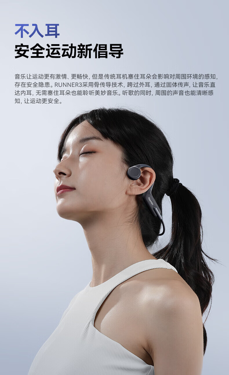 南卡(NANK)Runner3骨传导蓝牙耳机无线开放挂耳式不入耳防水运动双耳降噪运动耳机适配苹果华为小米 深灰色【运动游泳防水 自带16G】