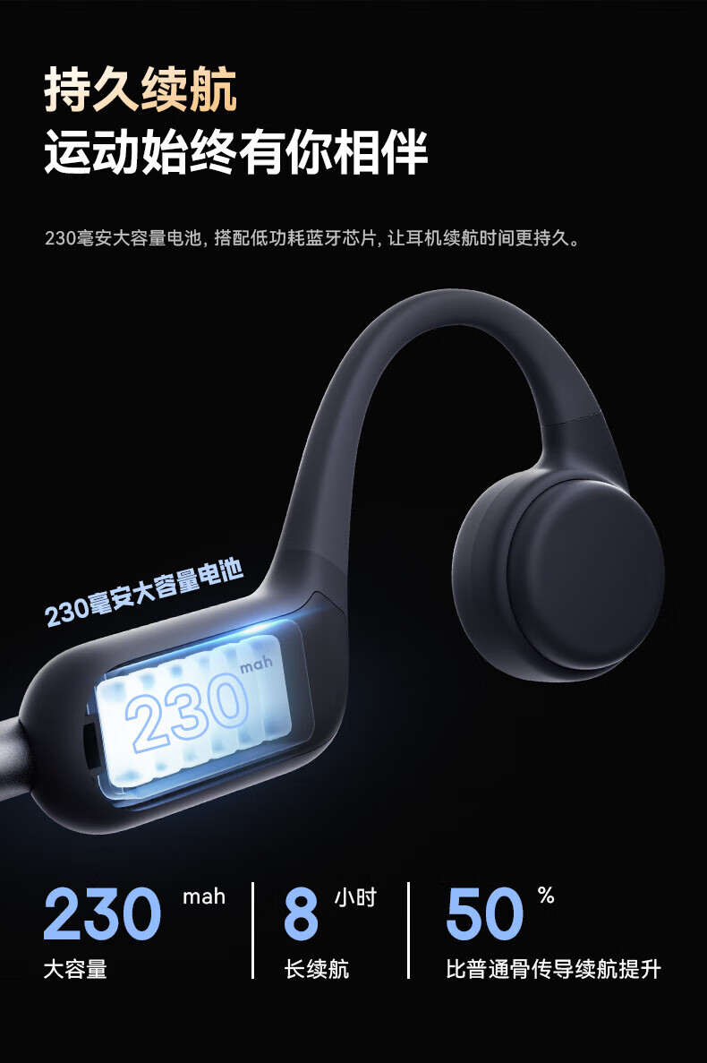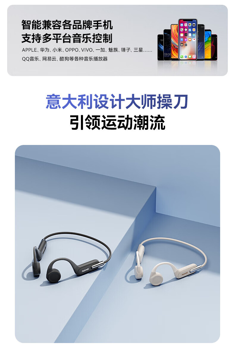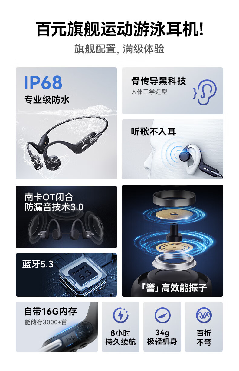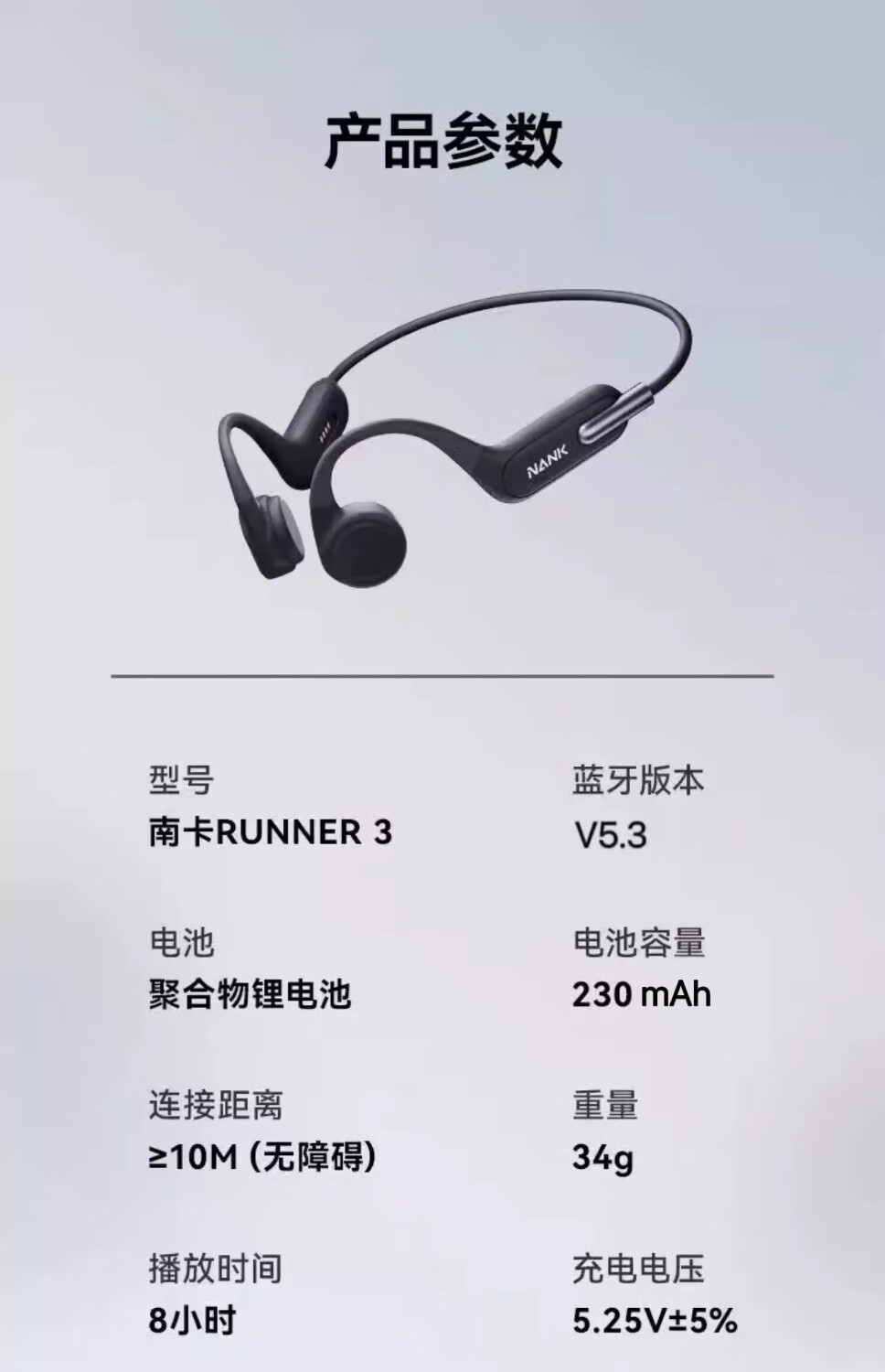 南卡(NANK)Runner3骨传导蓝牙耳机无线开放挂耳式不入耳防水运动双耳降噪运动耳机适配苹果华为小米 深灰色【运动游泳防水 自带16G】