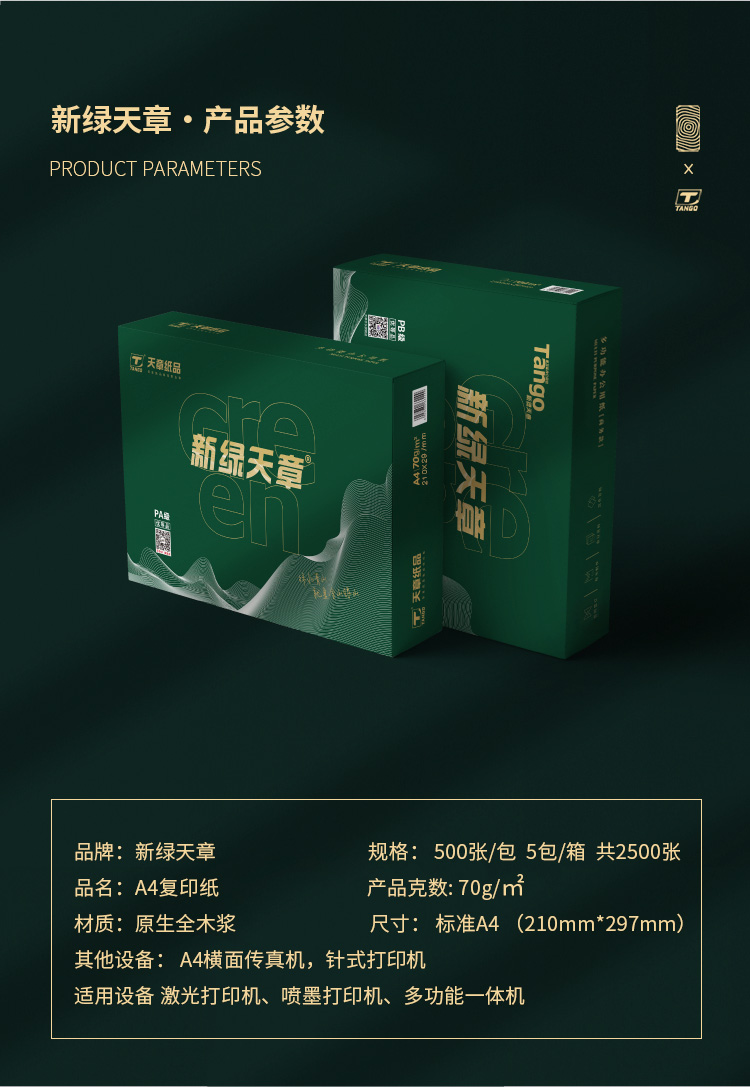 天章 (TANGO)新绿商务A4打印纸 70g 500张*5包 双面打印复印纸 纸张洁白顺滑畅打 整箱2500张【合同标书款】