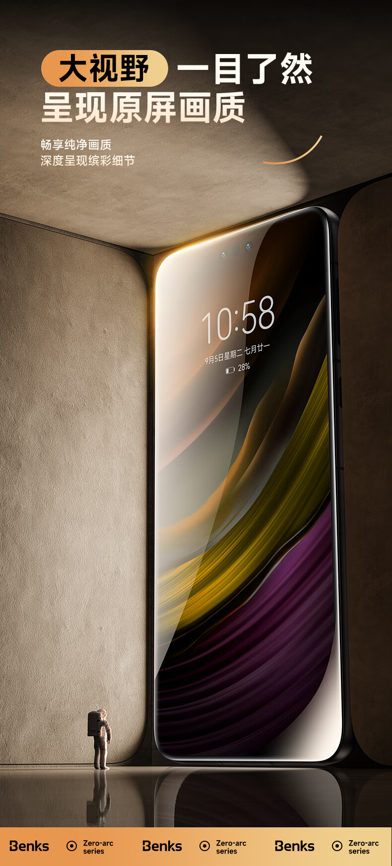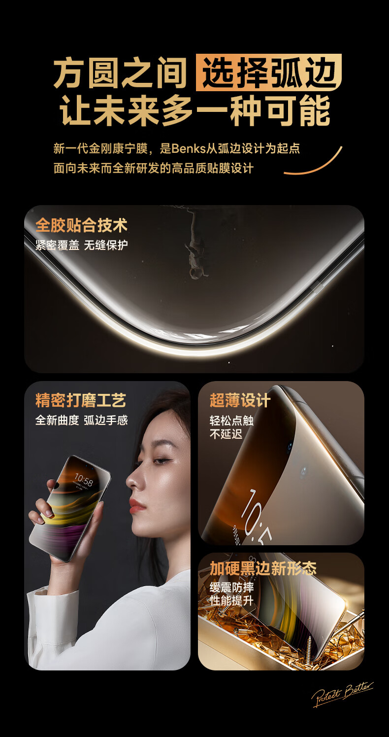 邦克仕(Benks)适用于华为mate60pro钢化膜Mate60Pro/Pro+/RS手机膜非凡大师高清曲面全屏覆盖防指纹全胶贴膜