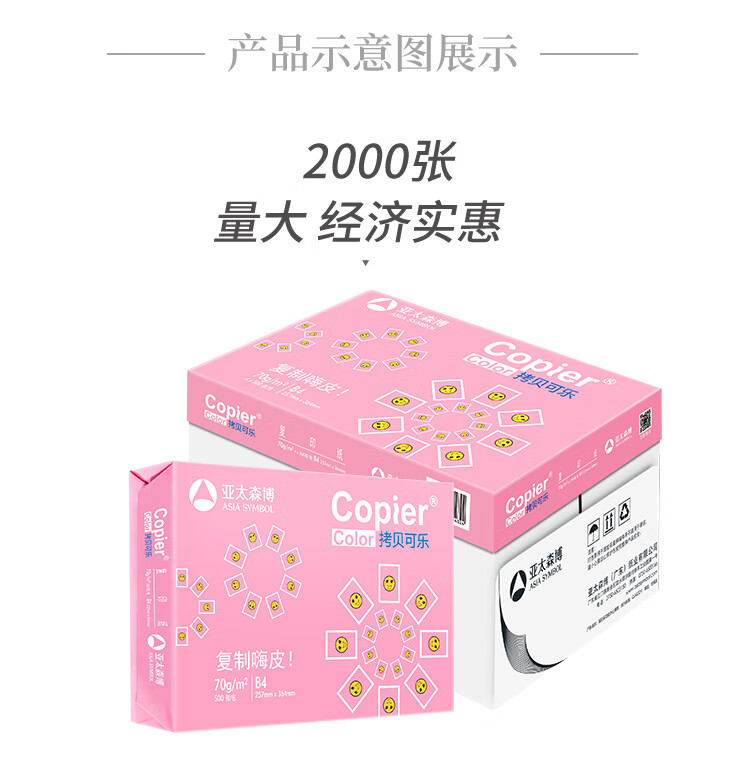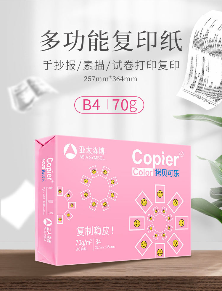 亚太森博 拷贝可乐 粉可乐 B4/B5/16K/8K打印复印纸 试卷纸多功能双面打印纸白纸素描绘画手抄设计草稿纸包 B5-70g 4000张