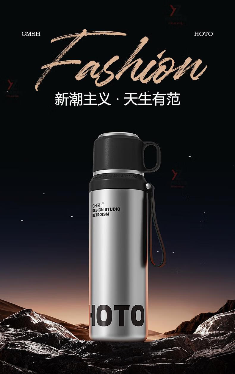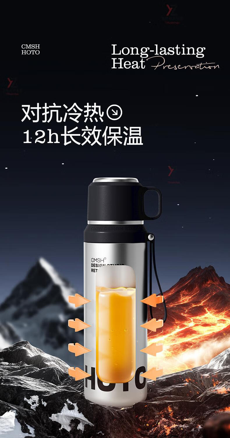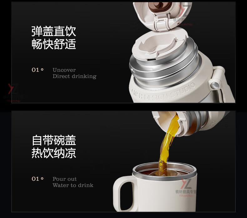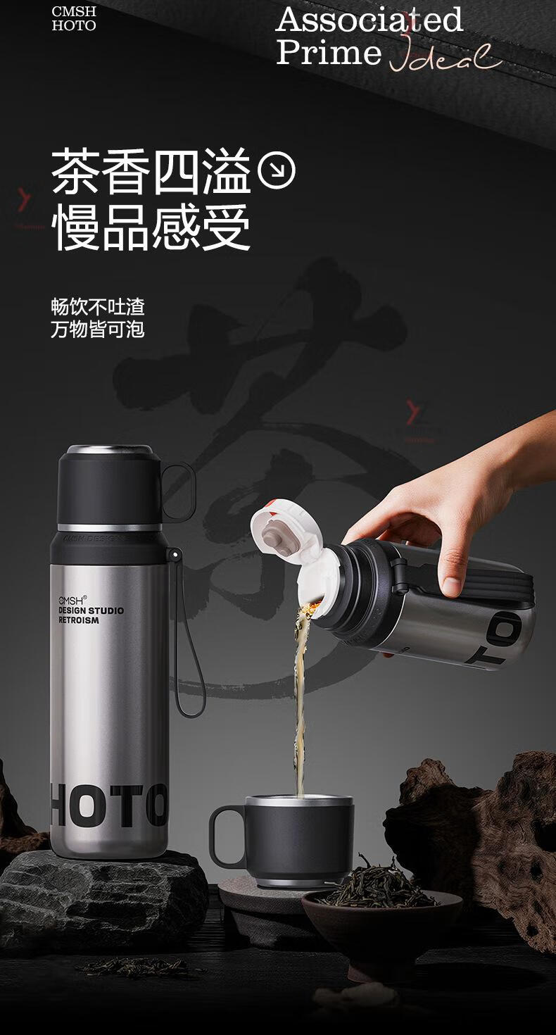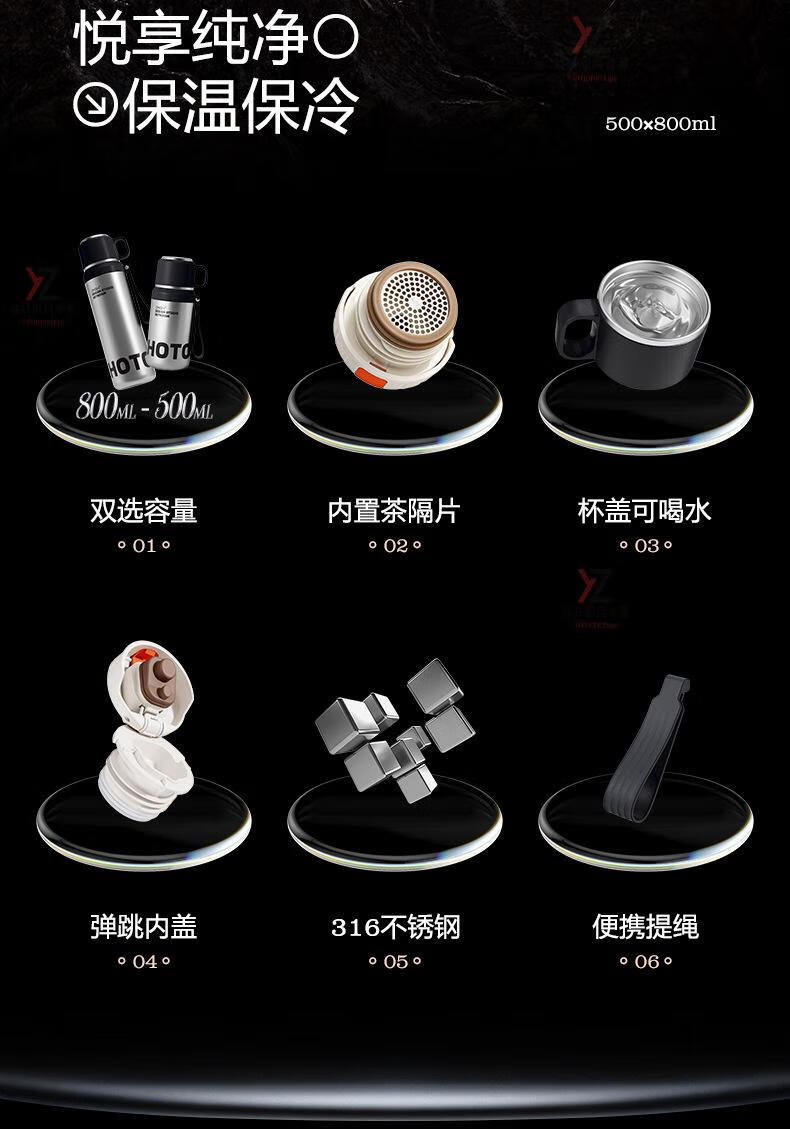 AILUKI日本316保温保冷杯男轻奢高级感茶水分离便携焖茶杯带盖可喝水 大气黑色_ 800ml