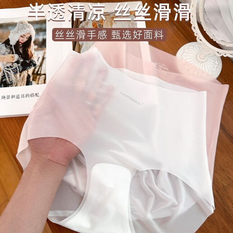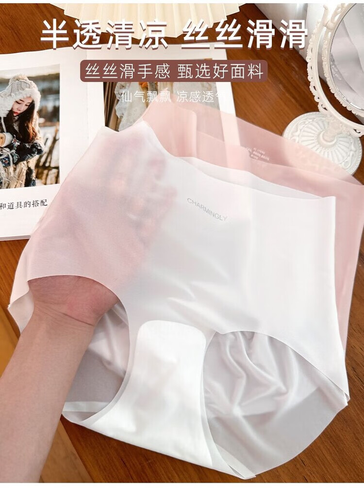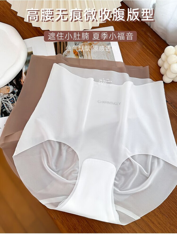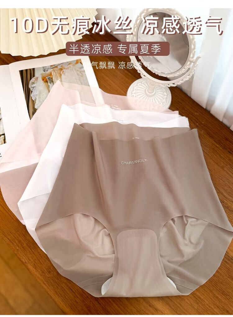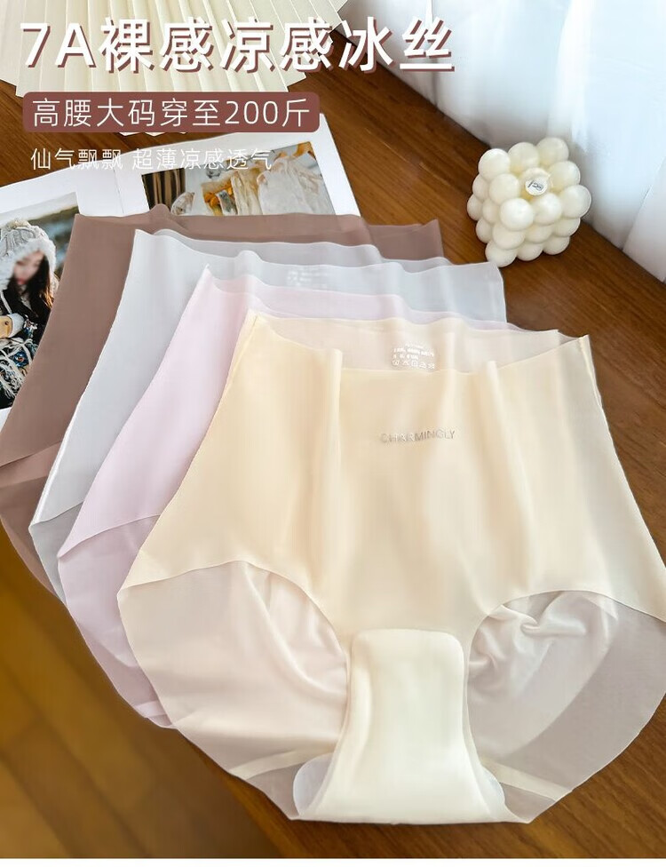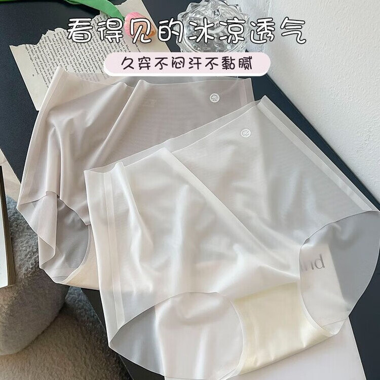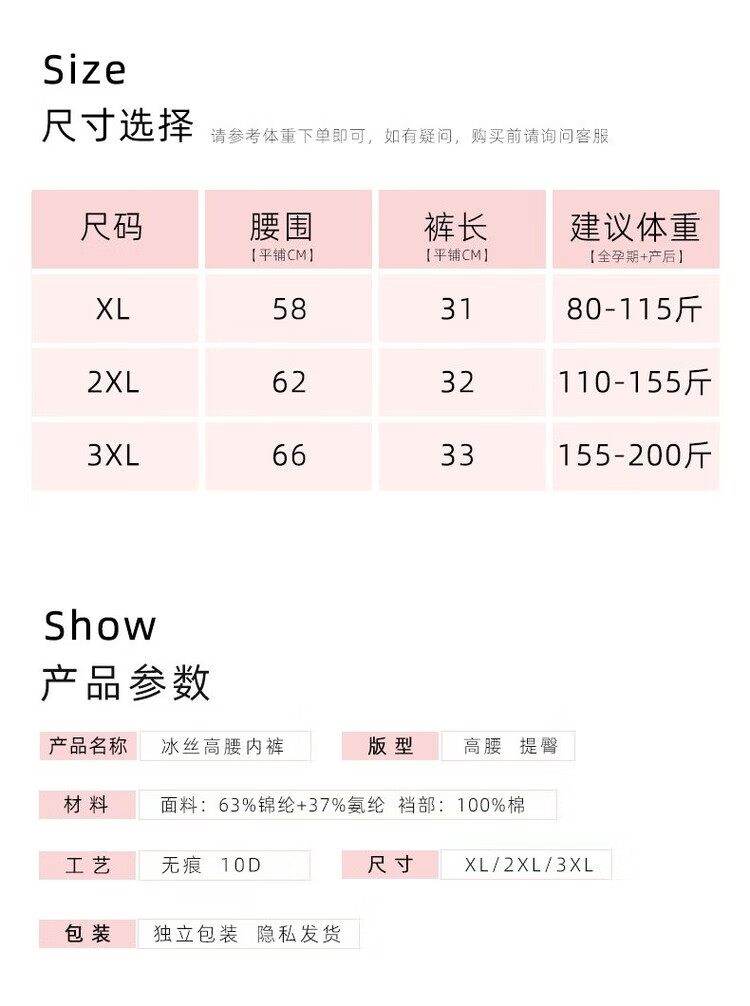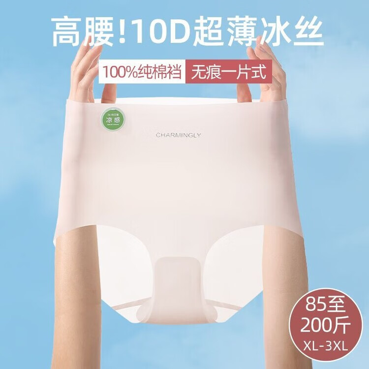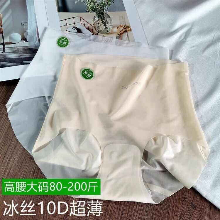 AILUKI夏天孕妇内裤女胖mm大码高腰托腹孕晚期冰丝无痕速干透气薄款孕期 4条组合【白色+淡粉+香槟+卡其】 XL-建议-80-120斤