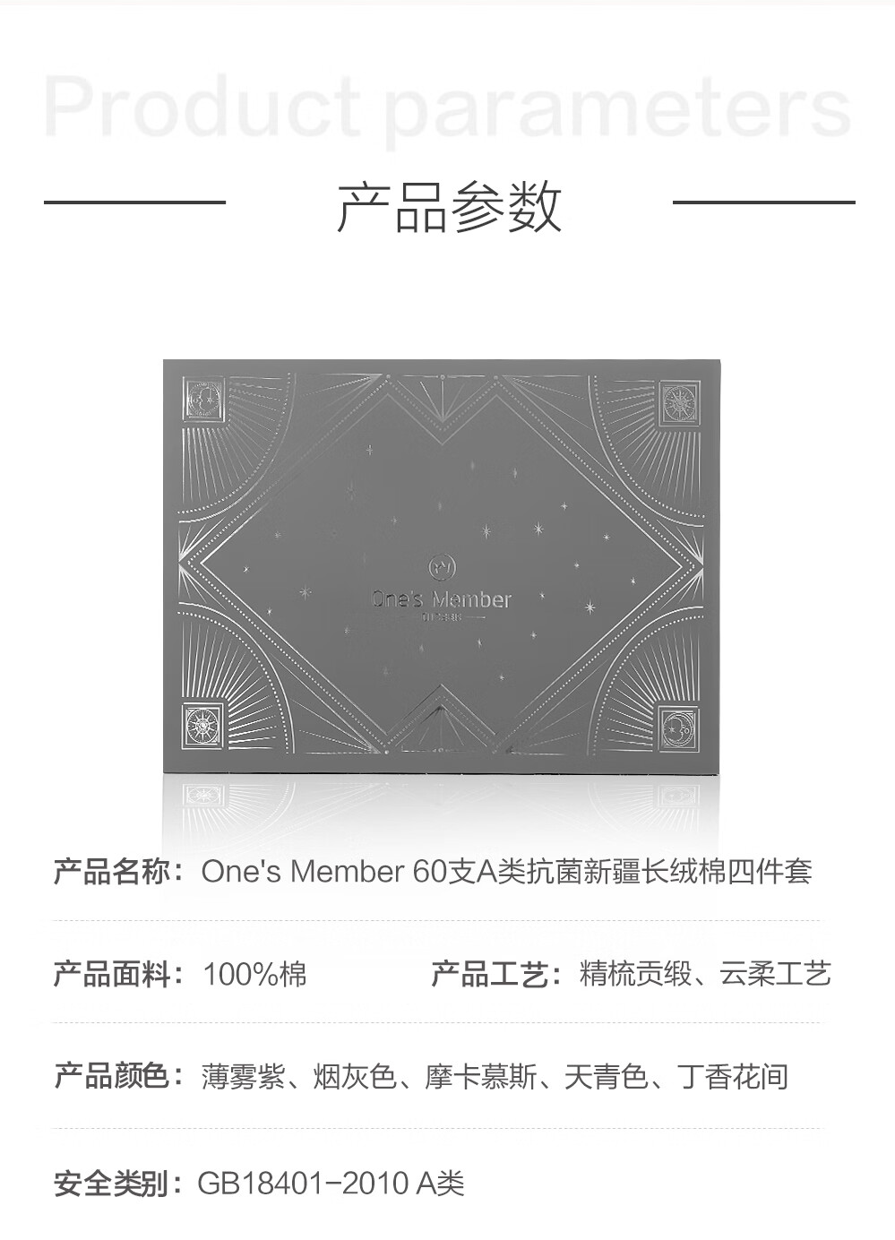 1号会员店(One's Member)60支A类抗菌新疆长绒棉纯棉家用床单床上四件套 高级感1.8米床笠款