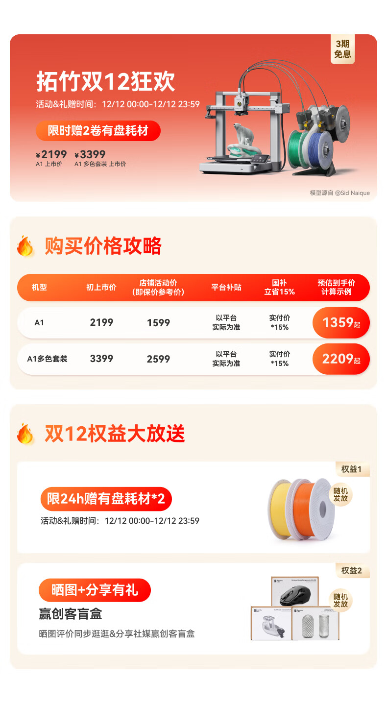 bambulabA1 3D打印机桌面家用FDM全自动调平高速3d打印机器【大陆版】