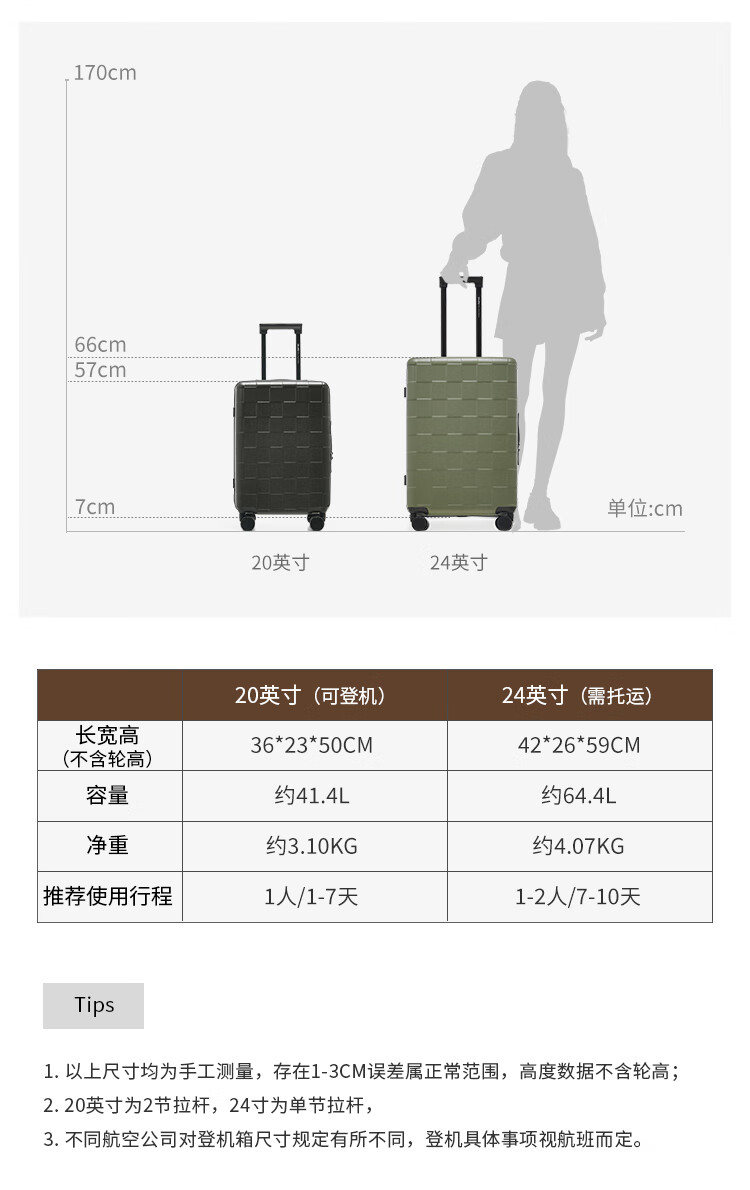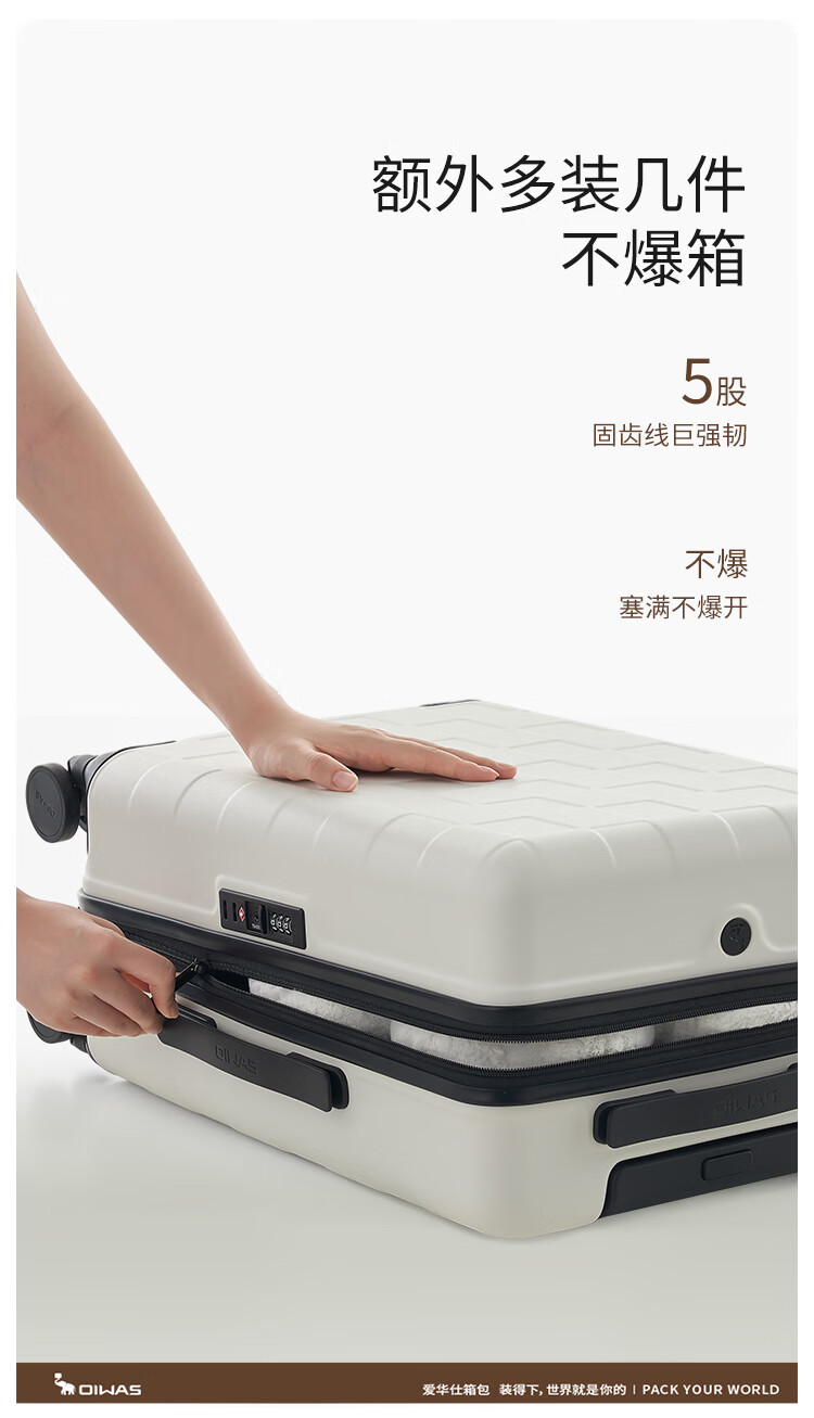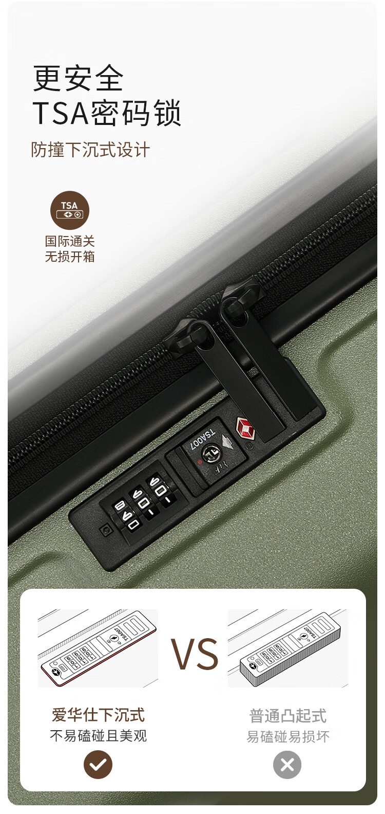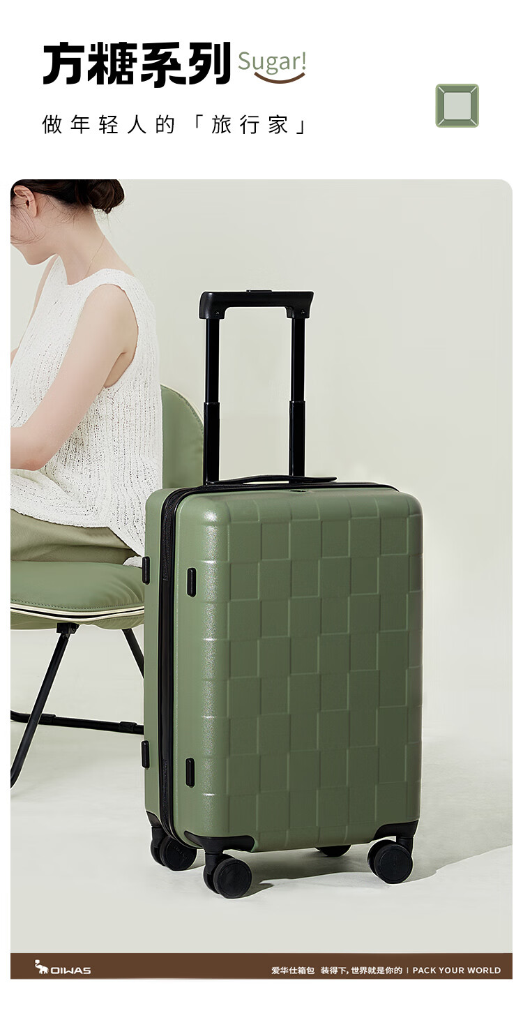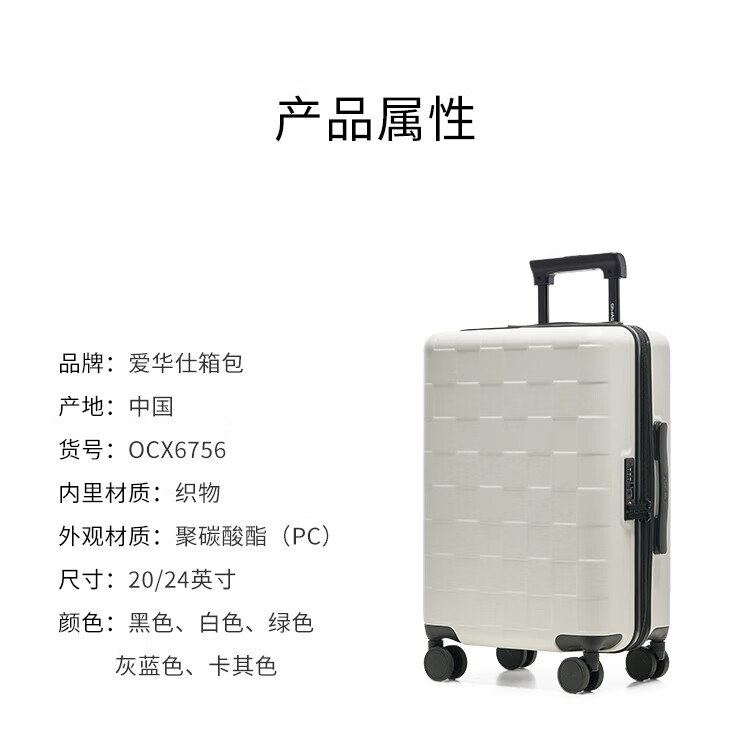 爱华仕方糖箱大容量行李箱结实耐用轻便密码登机箱旅行拉杆箱皮箱子 黑色 【加厚PC】 【耐磨抗摔】 24英寸 【3-5天中途行】