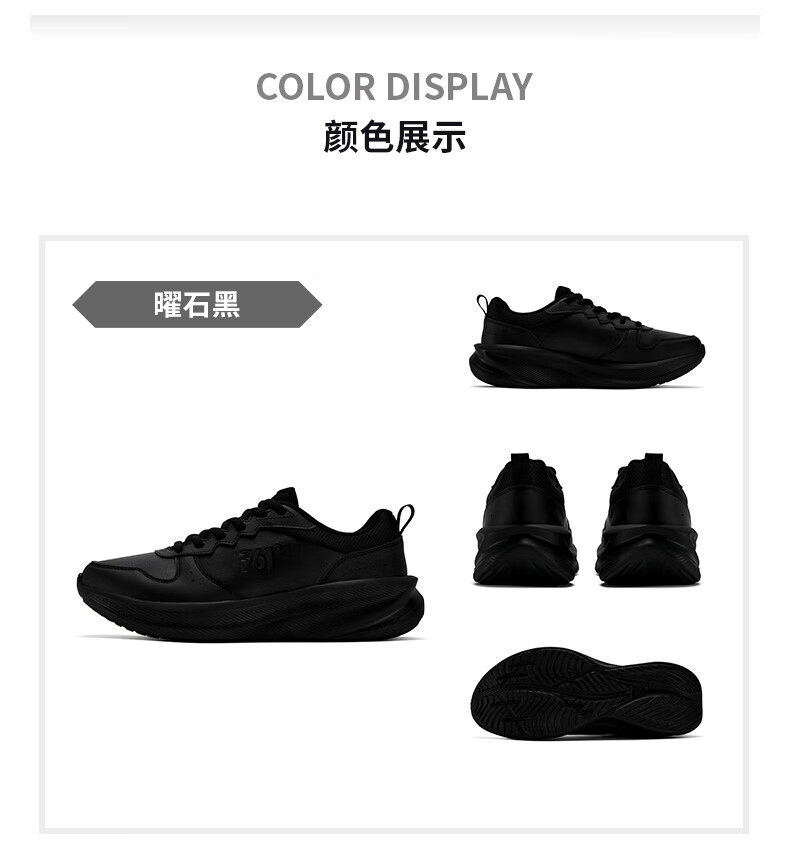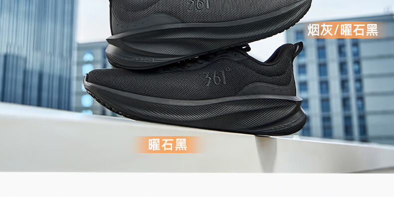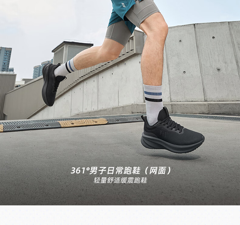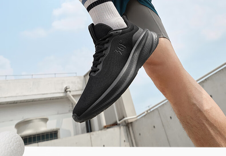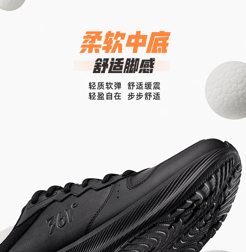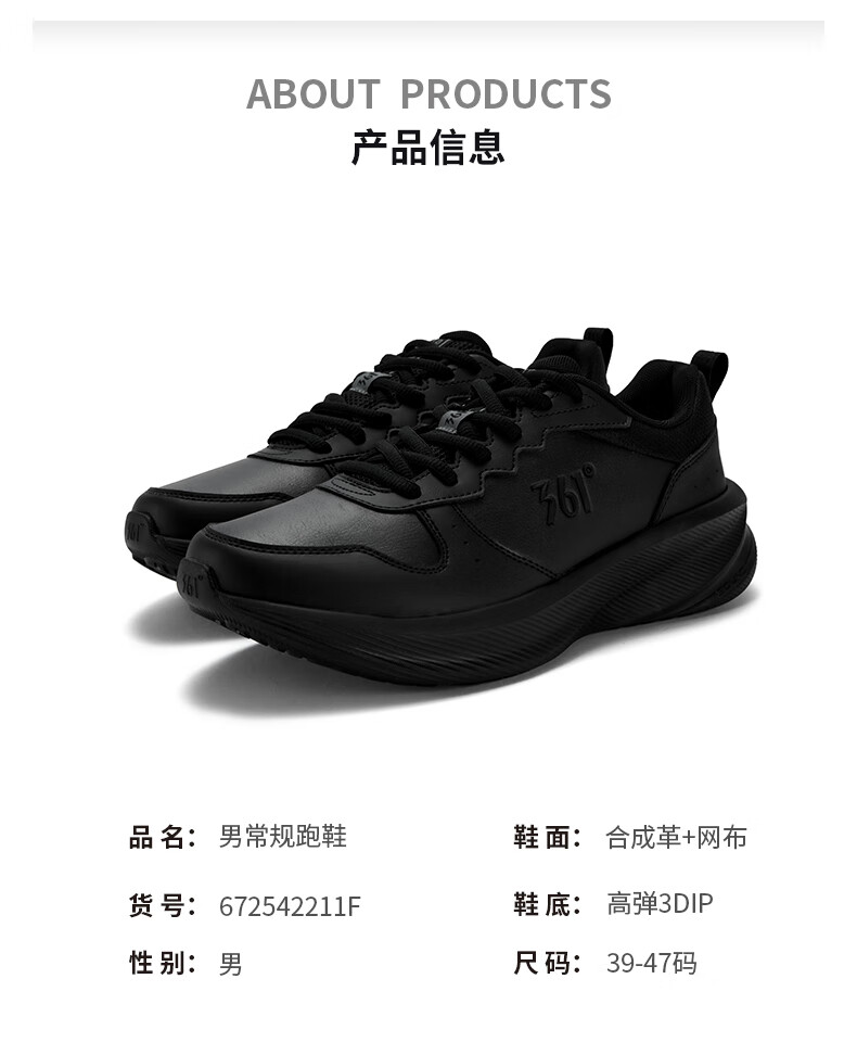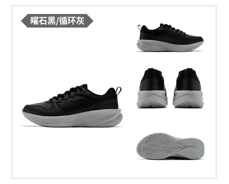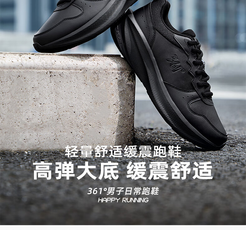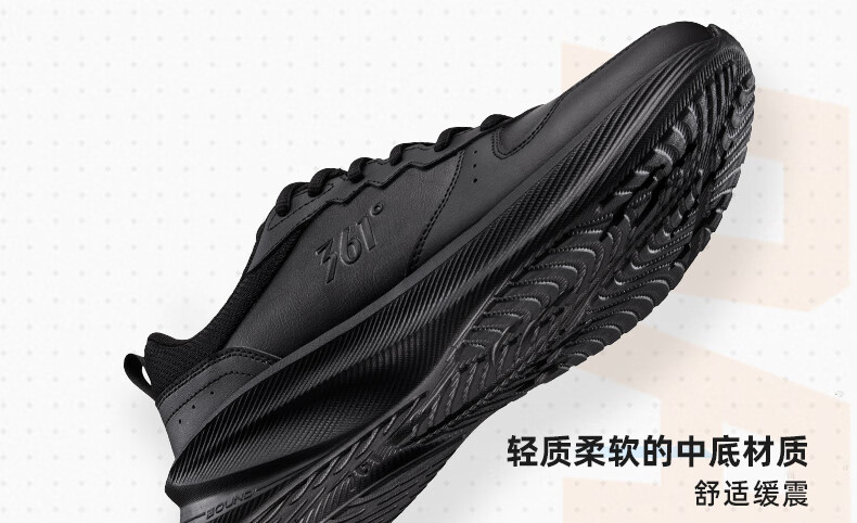 361°运动鞋男鞋秋冬季皮革网面黑色通勤鞋轻便软弹健身跑步鞋男休闲鞋 曜石黑【网布】评价有礼 42