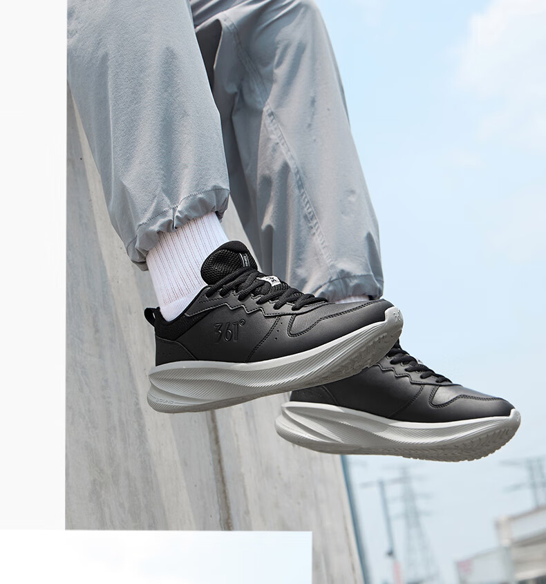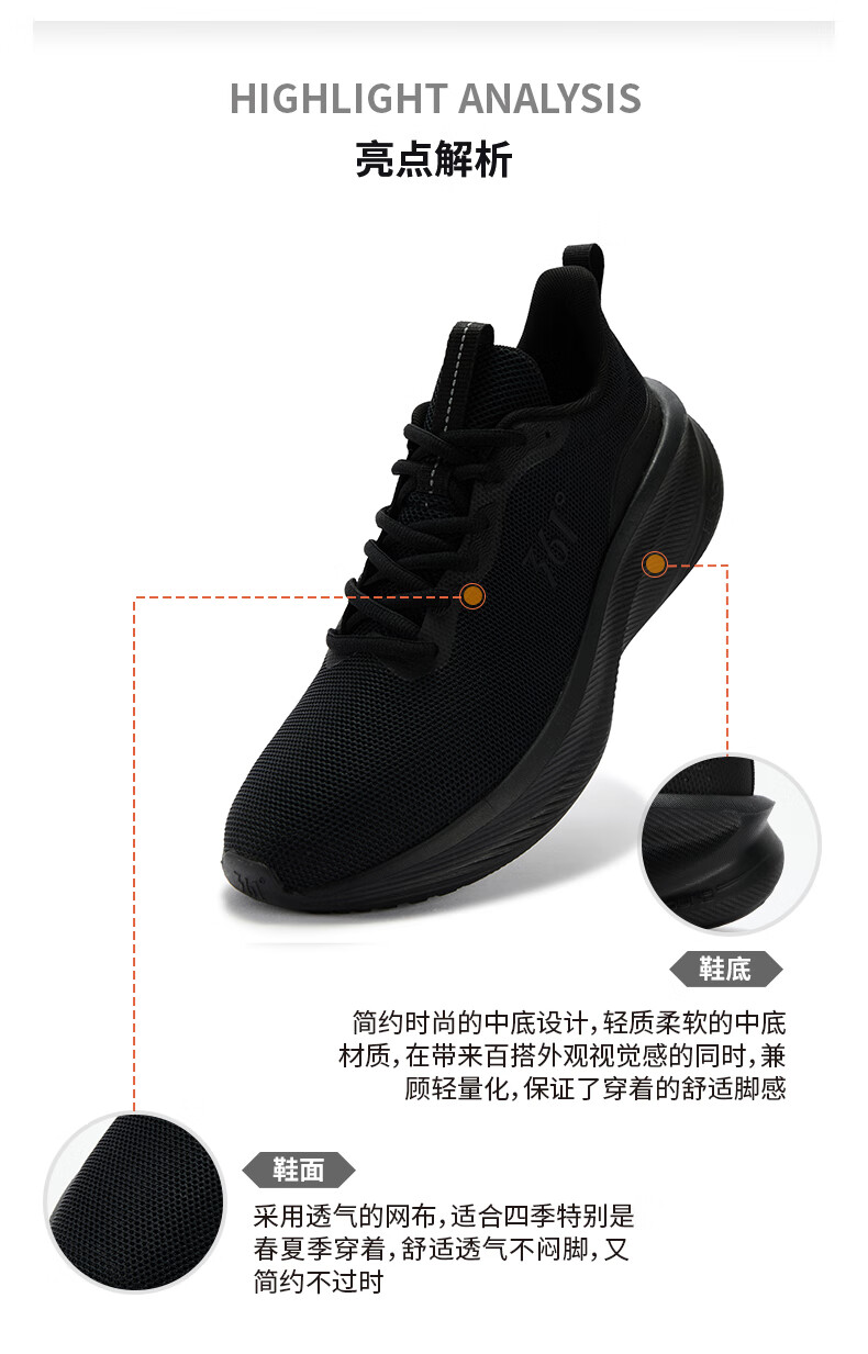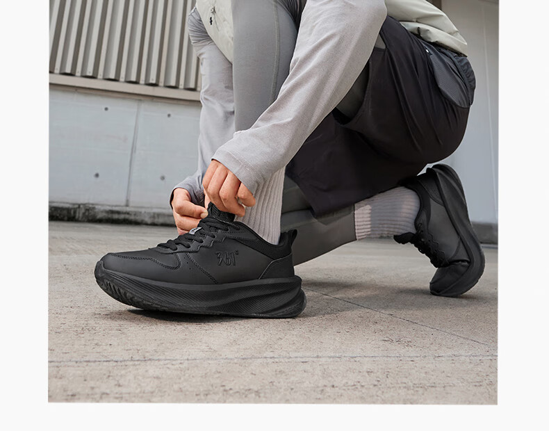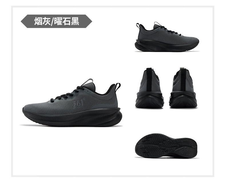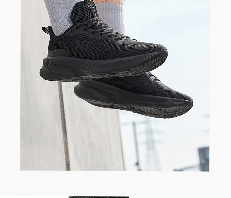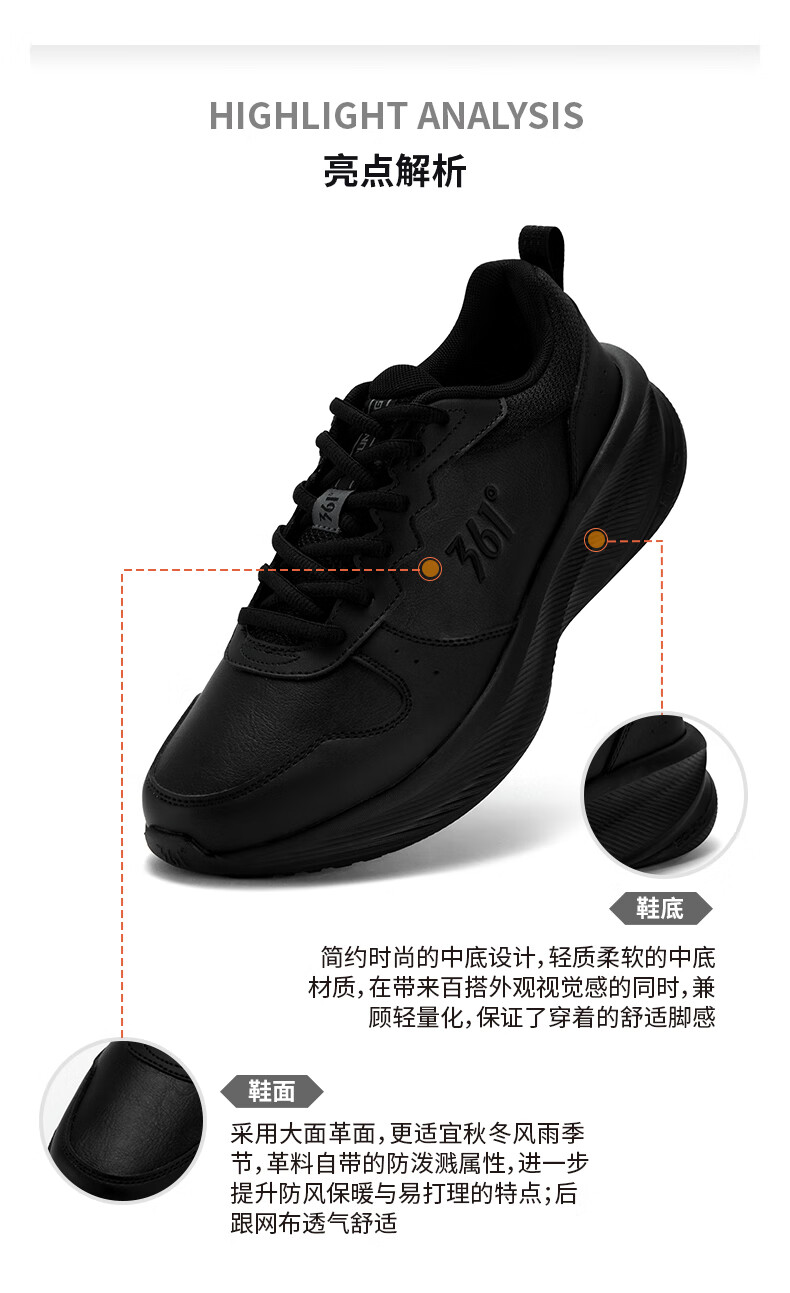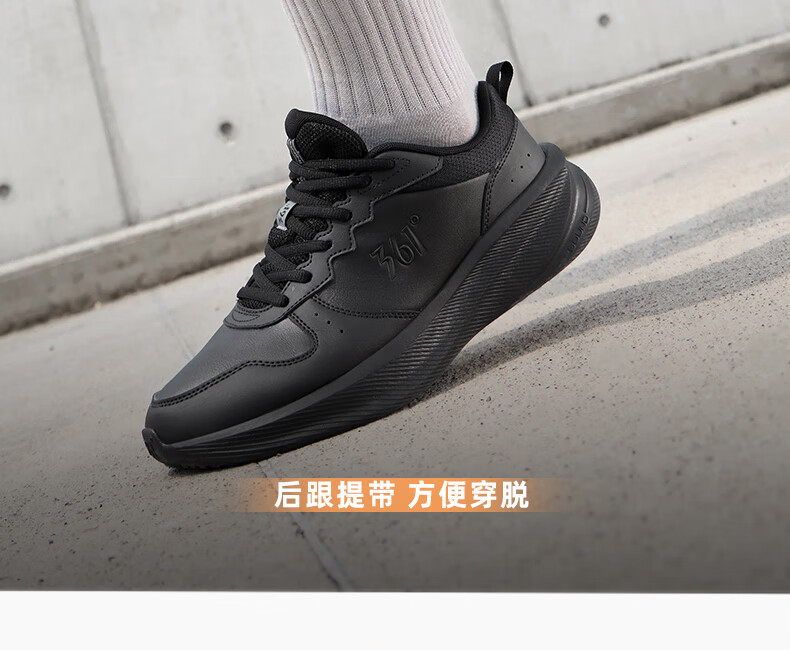 361°运动鞋男鞋秋冬季皮革网面黑色通勤鞋轻便软弹健身跑步鞋男休闲鞋 曜石黑【网布】评价有礼 42