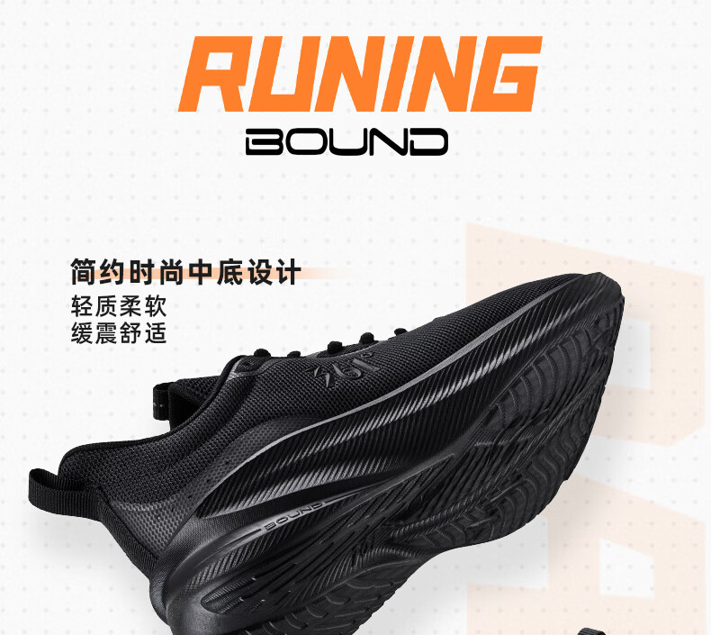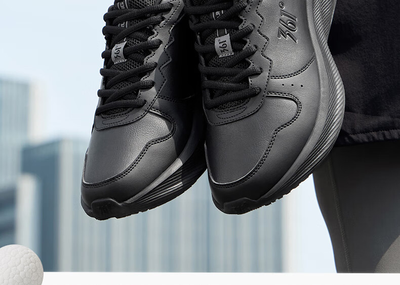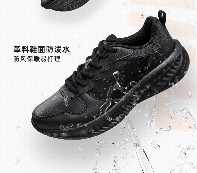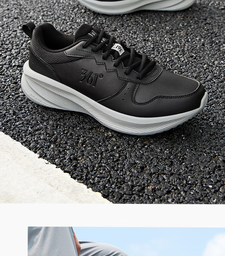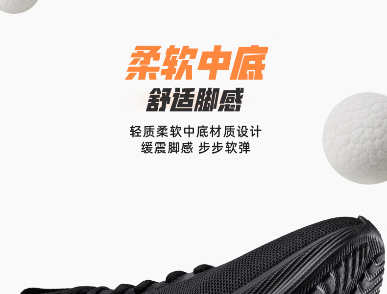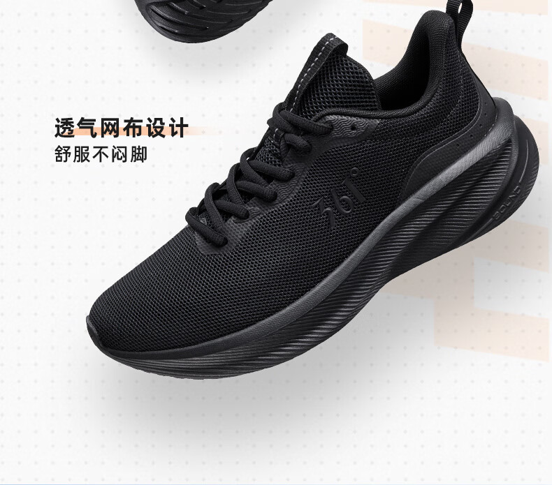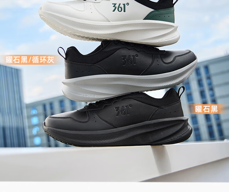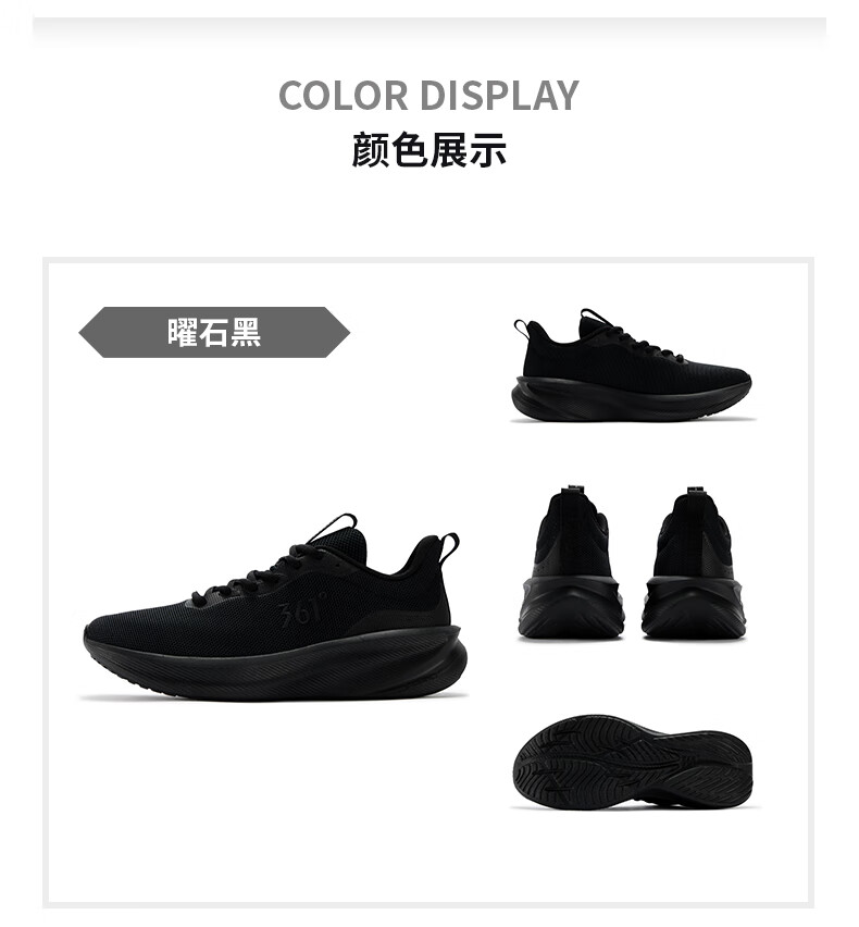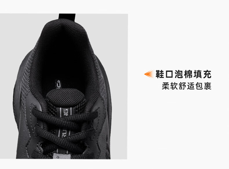 361°运动鞋男鞋秋冬季皮革网面黑色通勤鞋轻便软弹健身跑步鞋男休闲鞋 曜石黑【网布】评价有礼 42