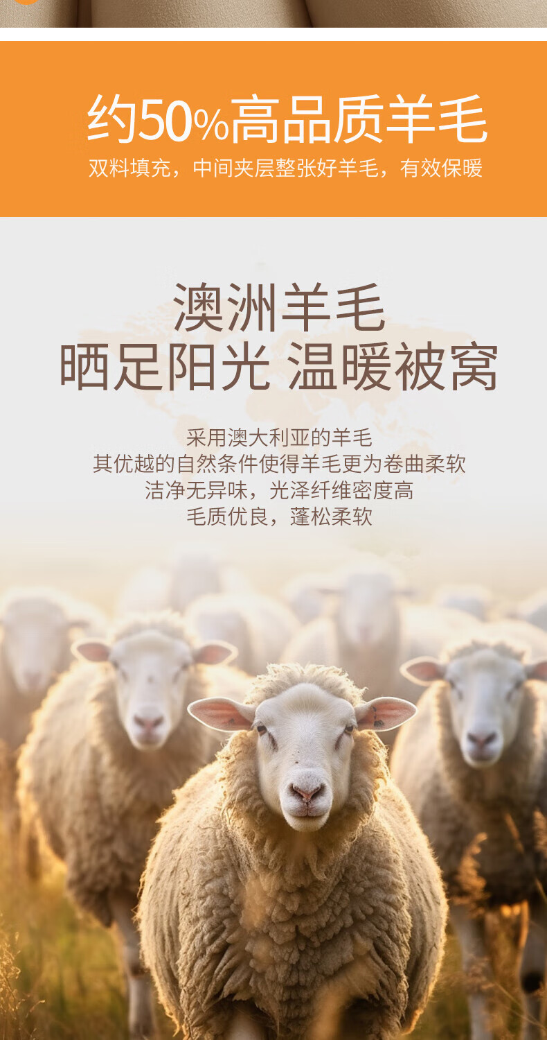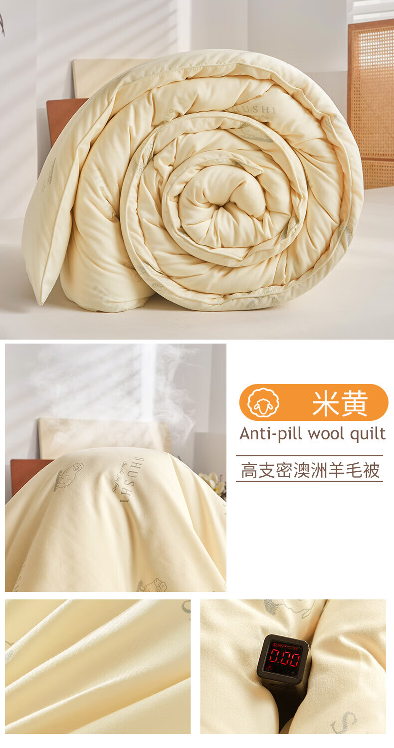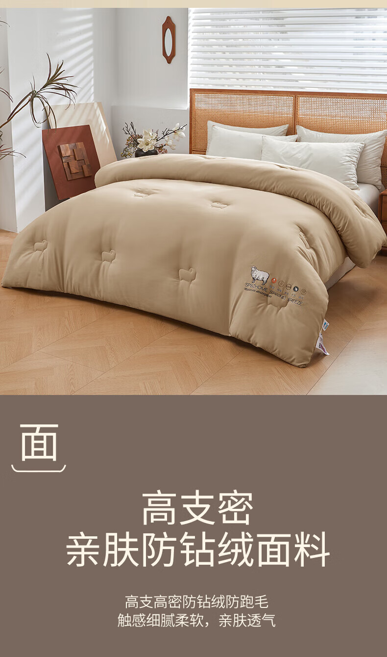 恒源祥羊毛被子冬被澳洲羊毛加厚超柔春秋被芯8-10斤厚冬被单人学生宿舍 纯色-卡其 1.5*2.0米【4斤夏被】