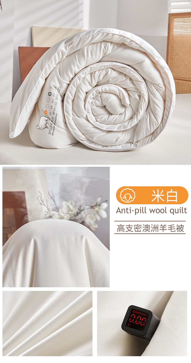 恒源祥澳洲羊毛被春秋被冬被芯加厚保暖羊毛单人被子10斤厚棉被褥 白色 150x200cm【4斤夏被】