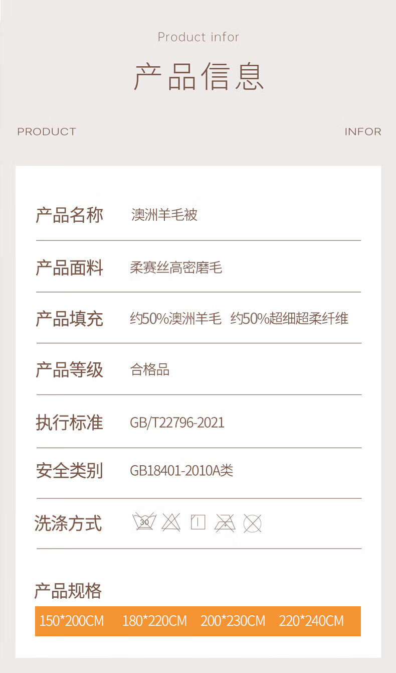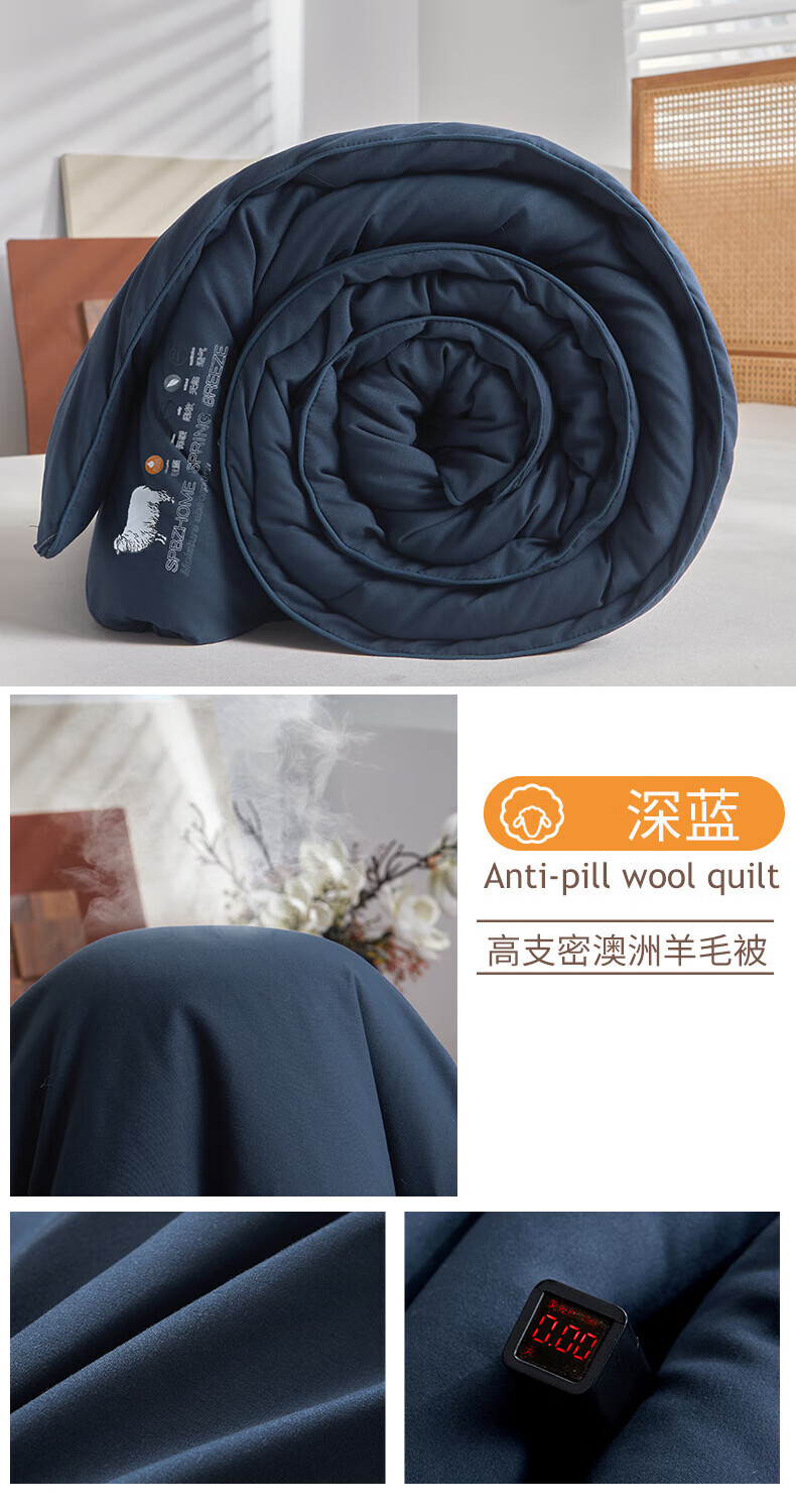 恒源祥高端A类进口澳洲绵羊毛被子10斤厚冬被冬被8斤加厚被芯春秋被保暖 白色 150*200cm【3.6斤春秋被】